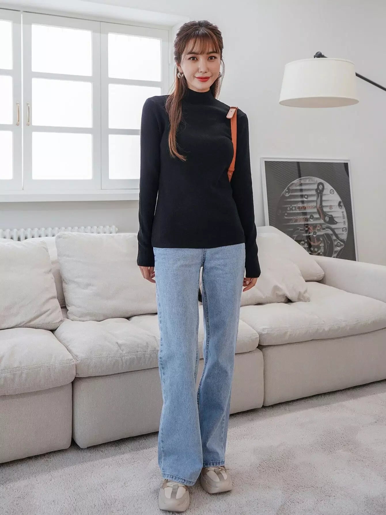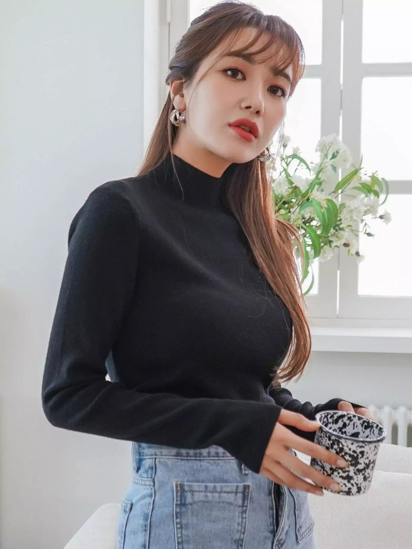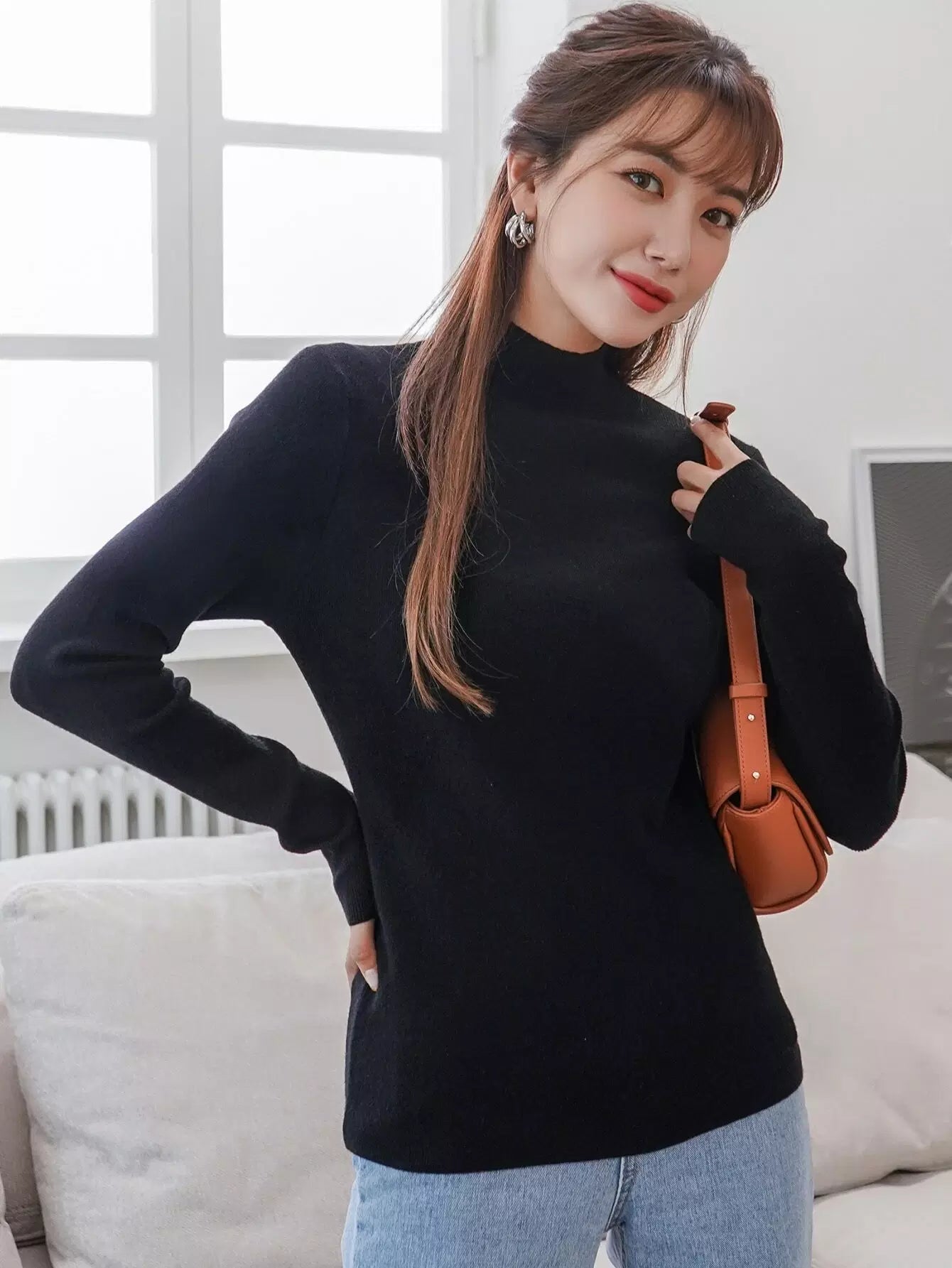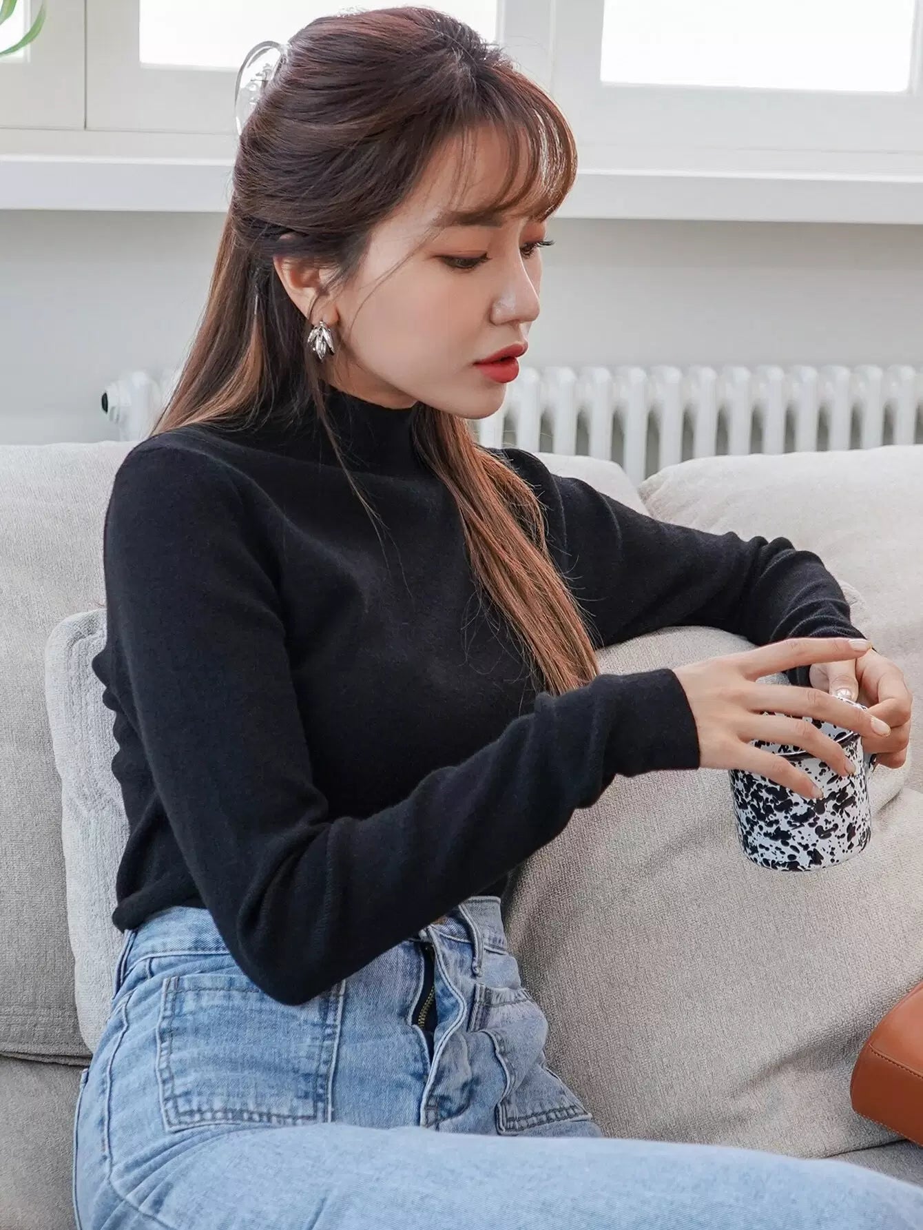 كنزة صوفية برقبة ضلعية مضلعة متماسكة