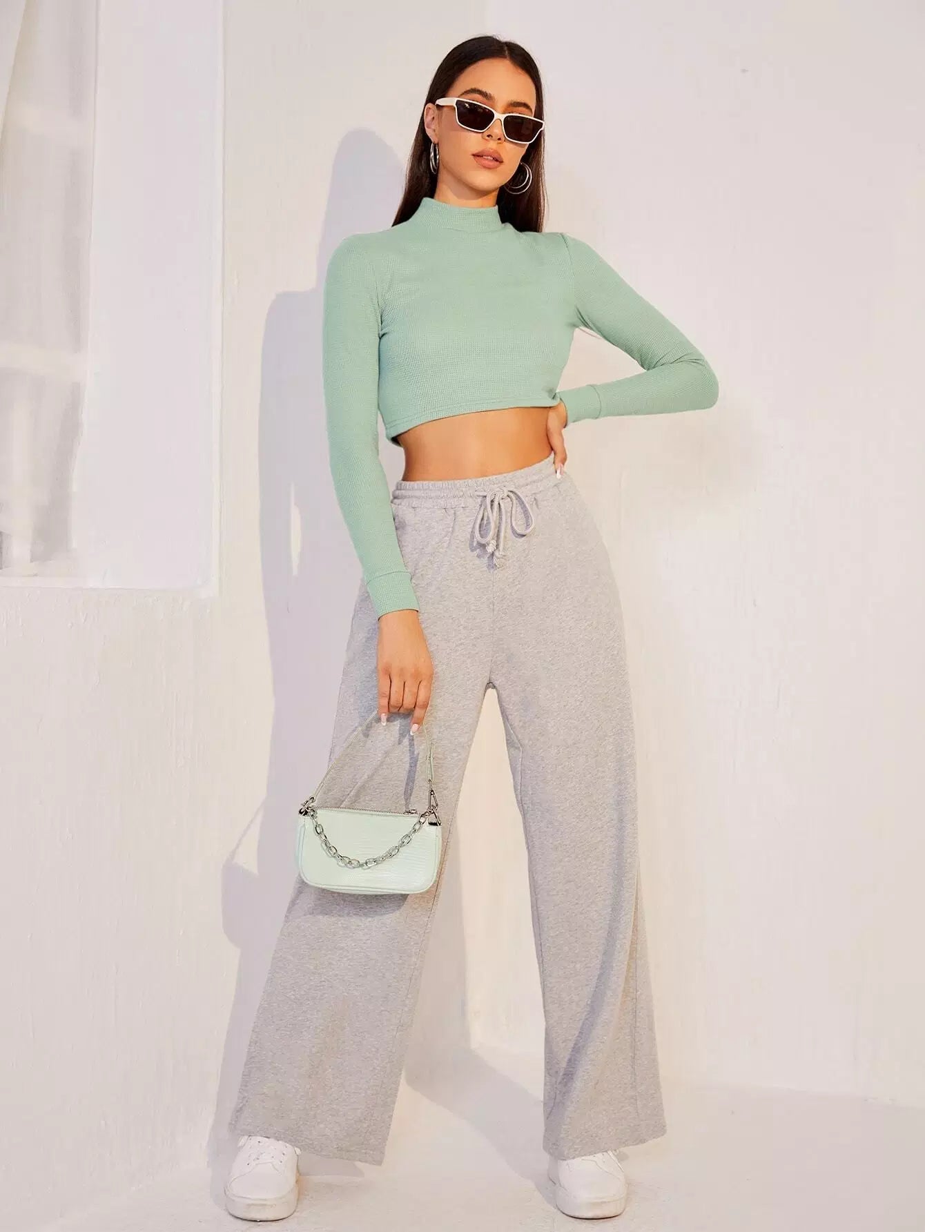 تي شيرت برقبة سادة بقصّة قصيرة برقبة سادة