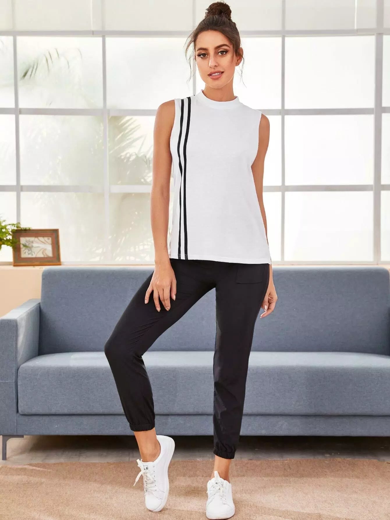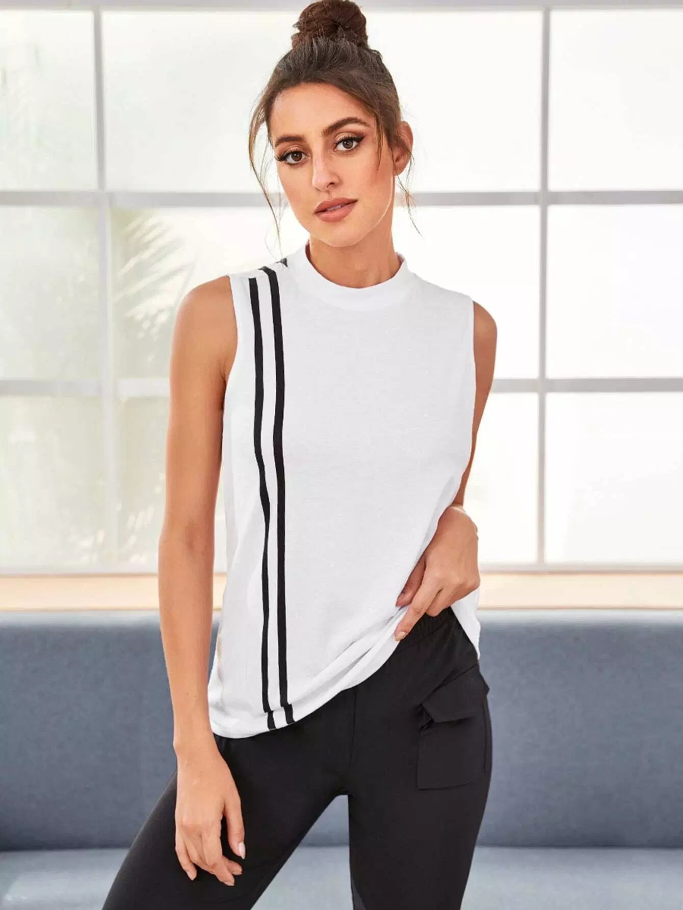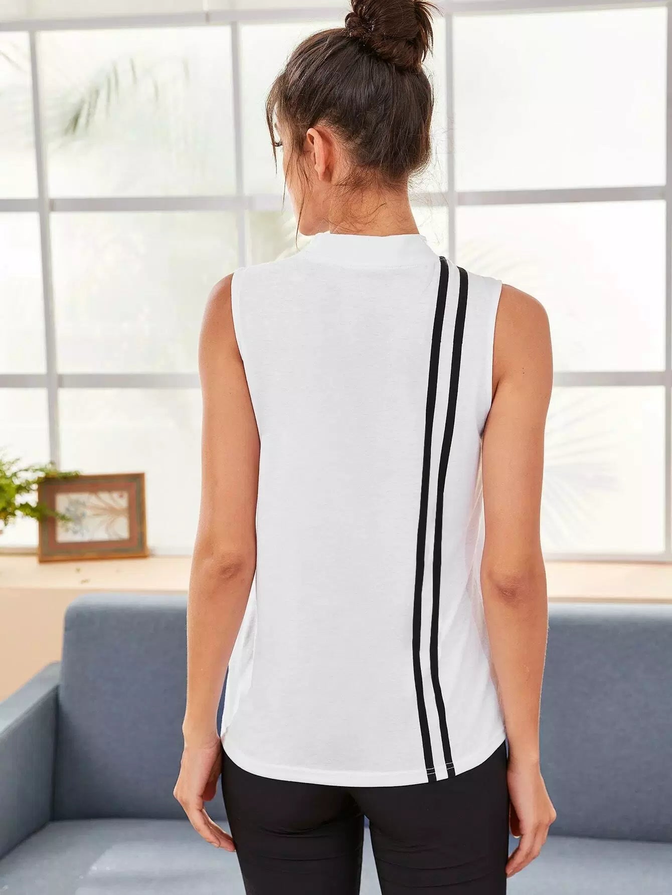 للنساء - قميص رياضي بدون أكمام مخطط برقبة وهمية