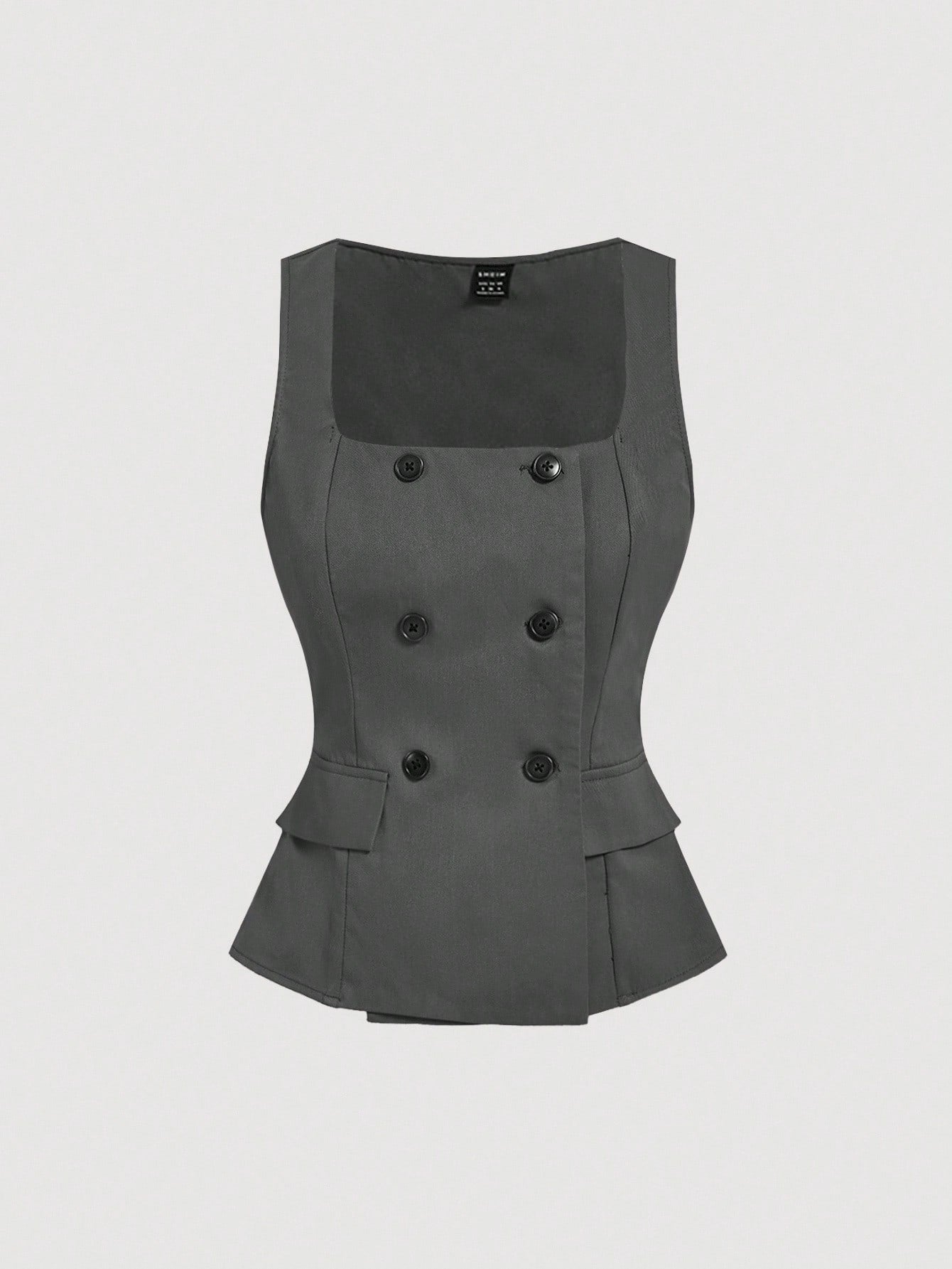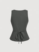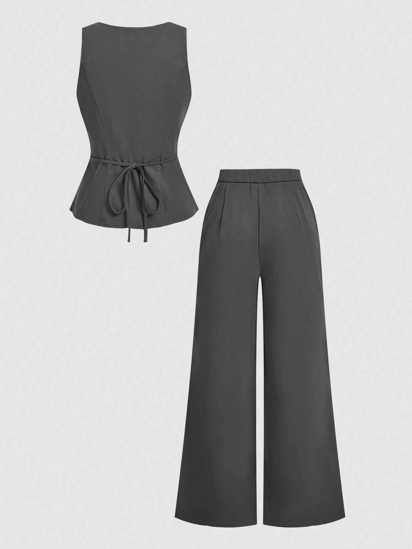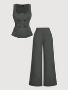 MOD 2pcs/Set Gray Double-Breasted V-Neck Vest & Trousers Suit, Office Attire, Retro-Elegant Style, Collegiate