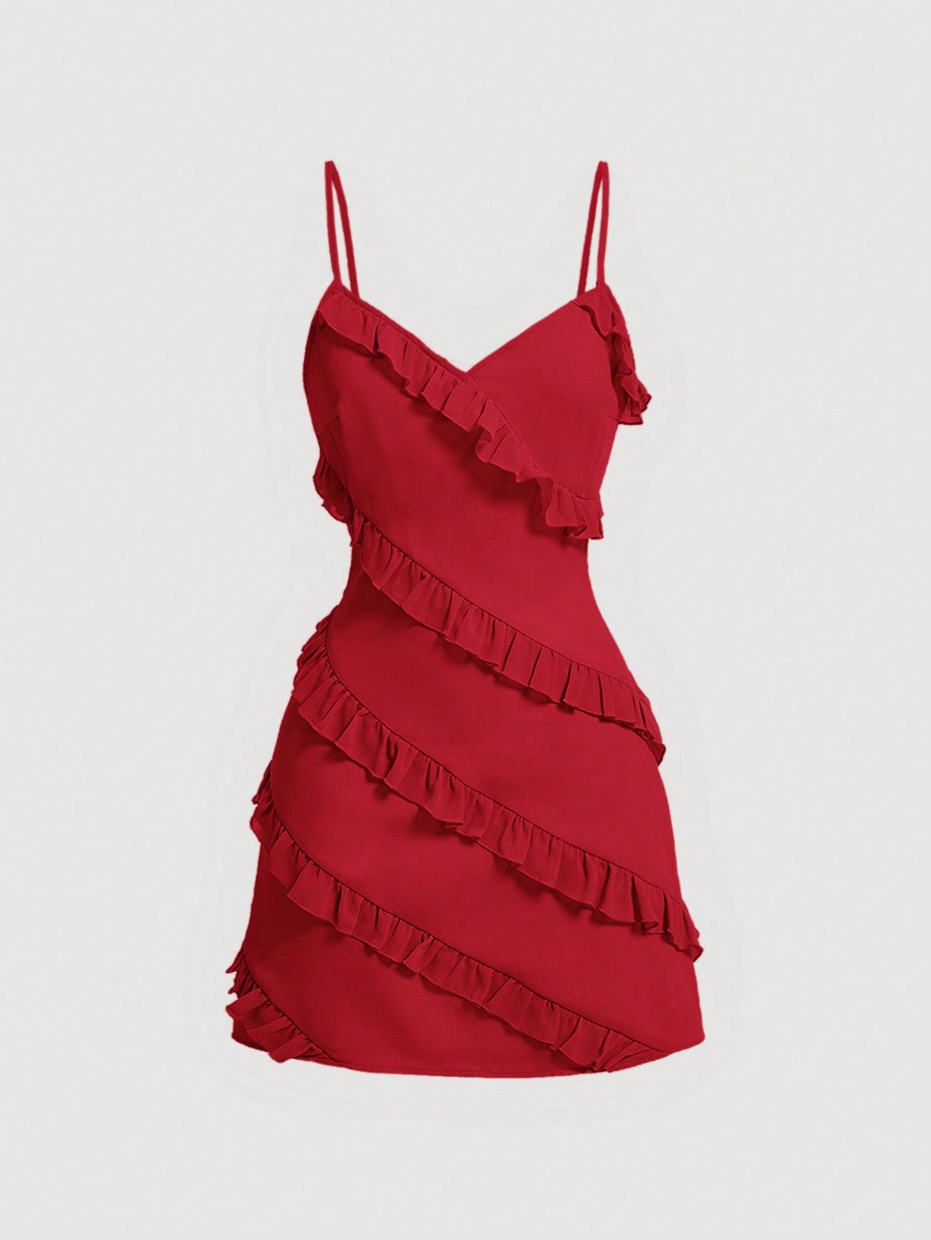 فستان نسائي من مود، بلون المشمش الأبيض، بحافة مكشكشة وحمالات رفيعة