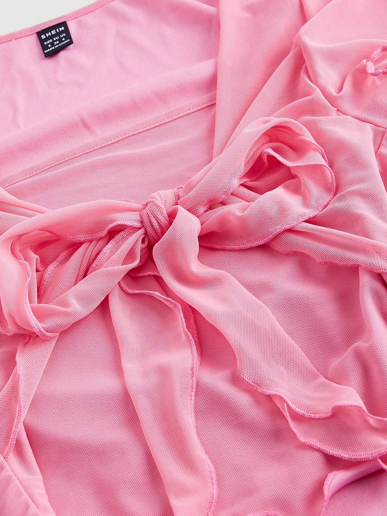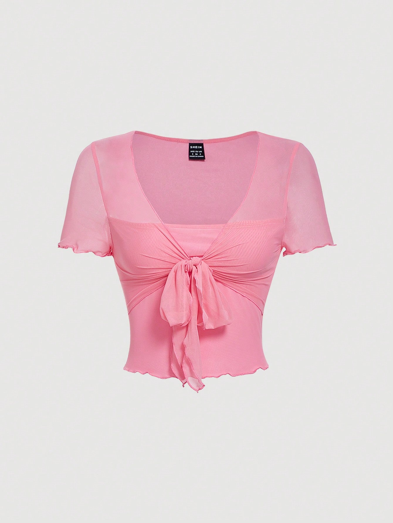 تيشيرت نسائي سادة من قماش شبكي مقسم برباط أمامي من MOD