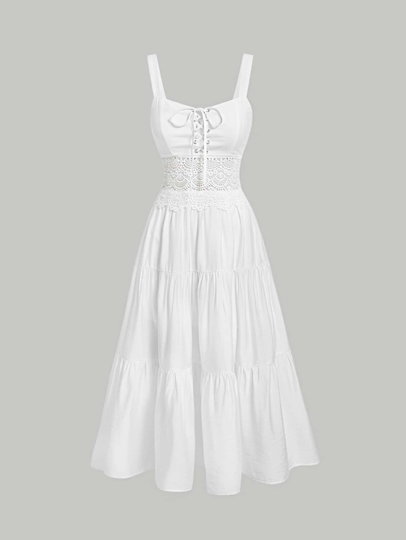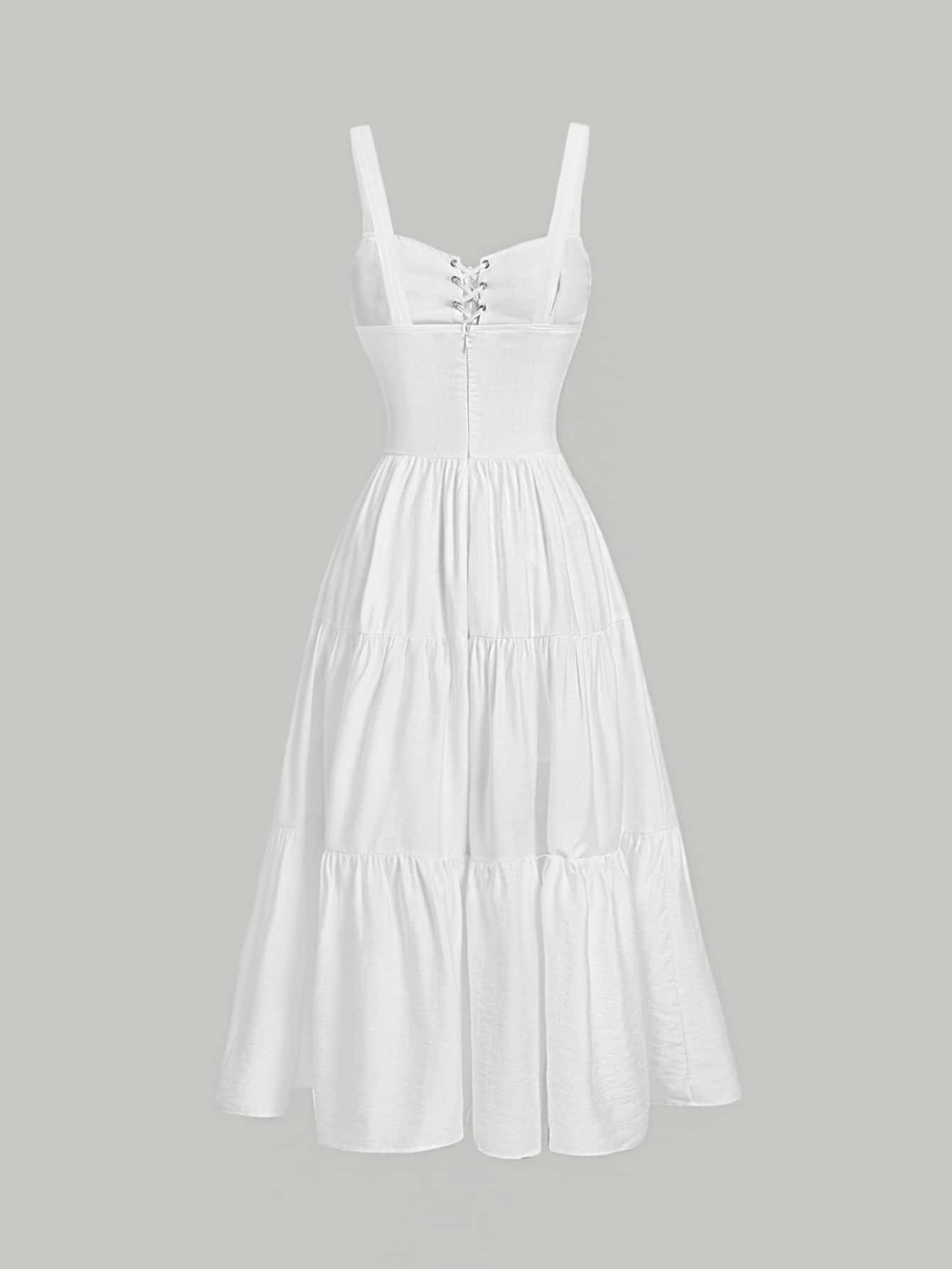 MOD Solid Ruffle Hem Cami Dress,White Graduation Dress