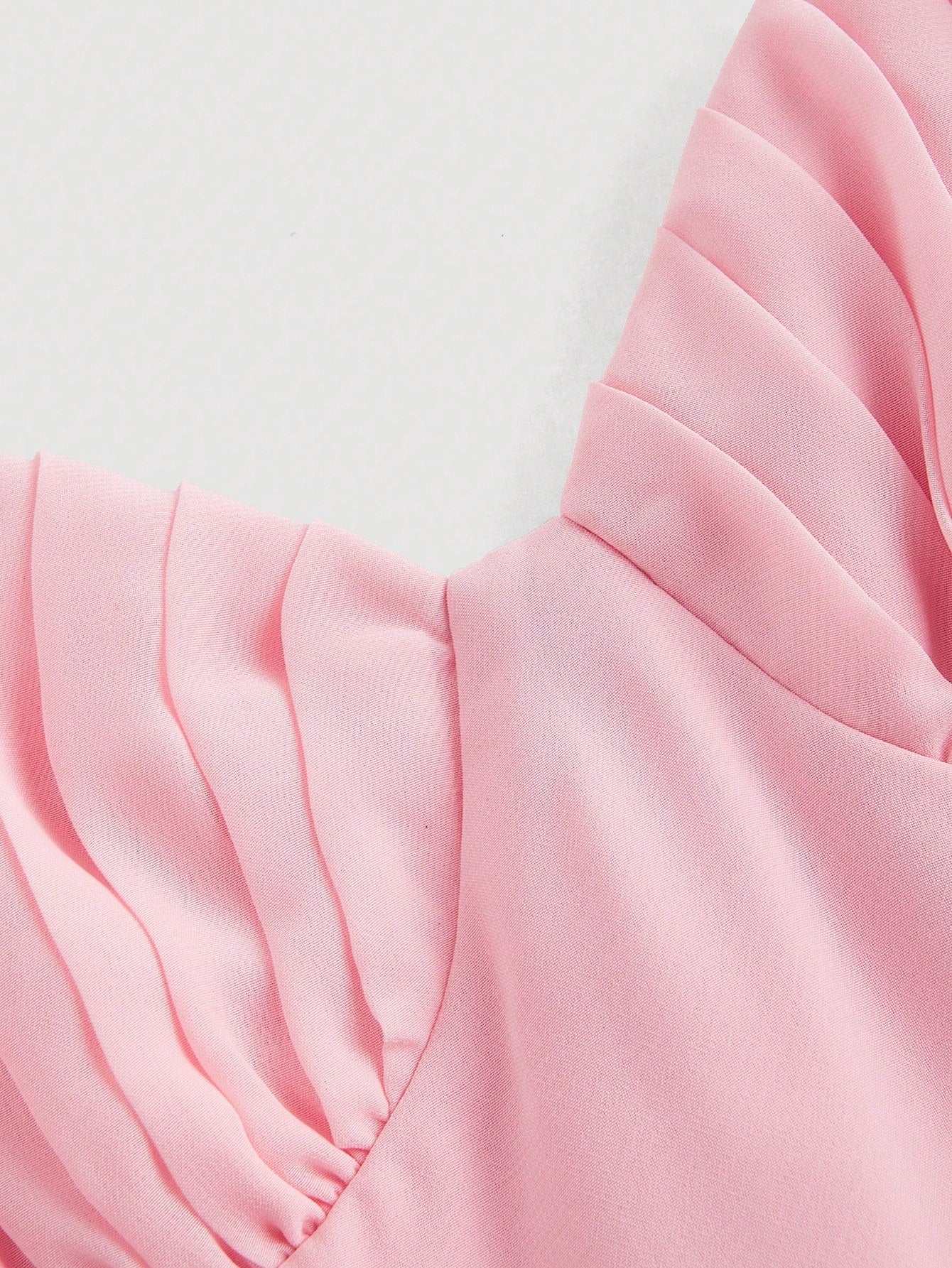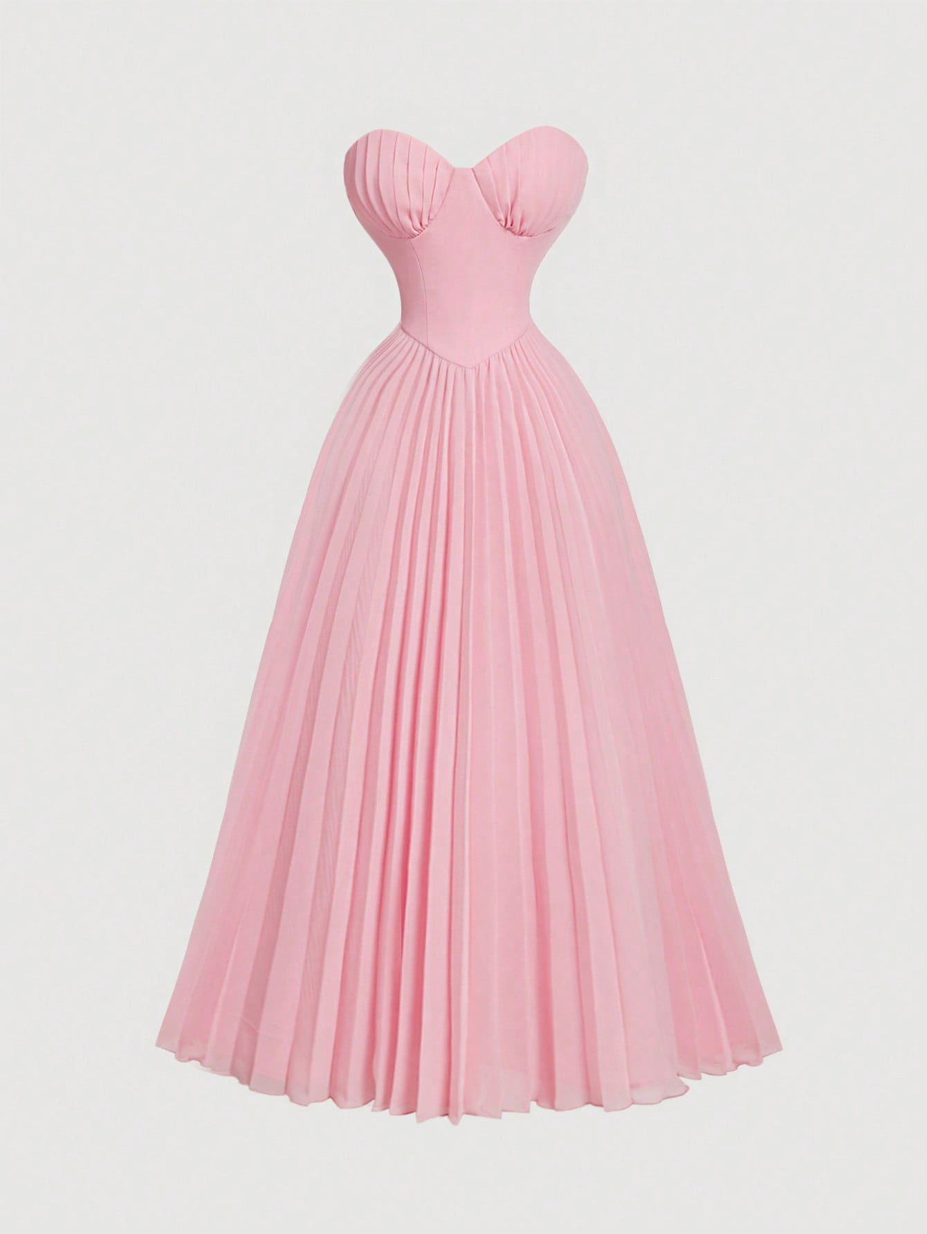 MOD Women's Pink Pleated Romantic Dress,Graduation Dress,Modest Dresses For Women,Spring Break Dresses,Spring
