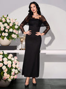 فستان طويل نسائي من موديلين بأكمام غير متماثلة مزين بالدانتيل