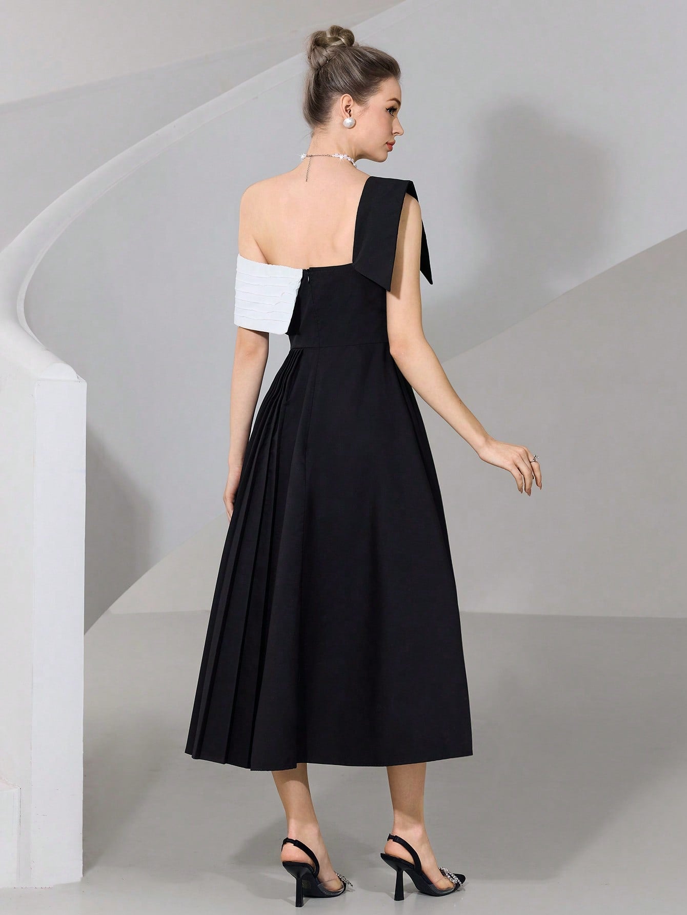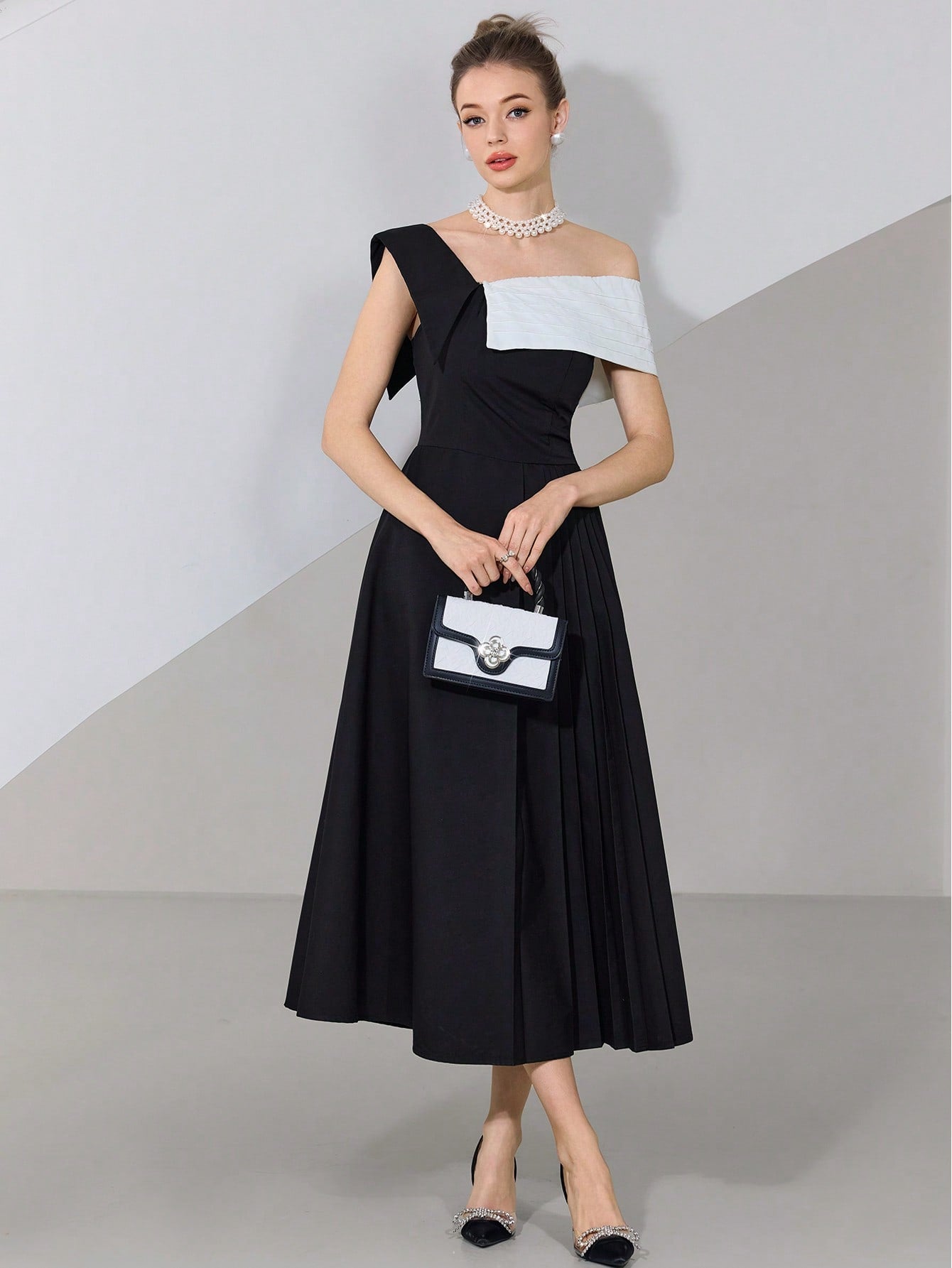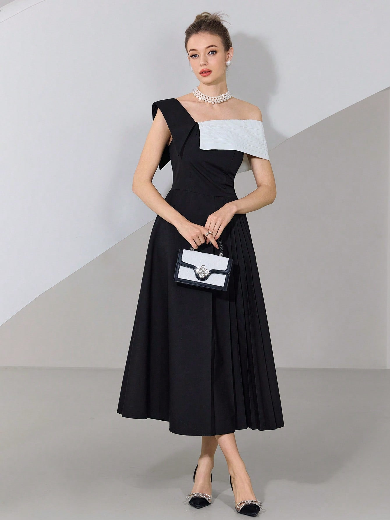 فستان موديلين النسائي الأنيق ذو الياقة غير المتماثلة والحافة المطوية