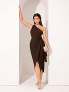women Modelyn Women Elegant Solid Color Wrap Tie Shoulder Dress