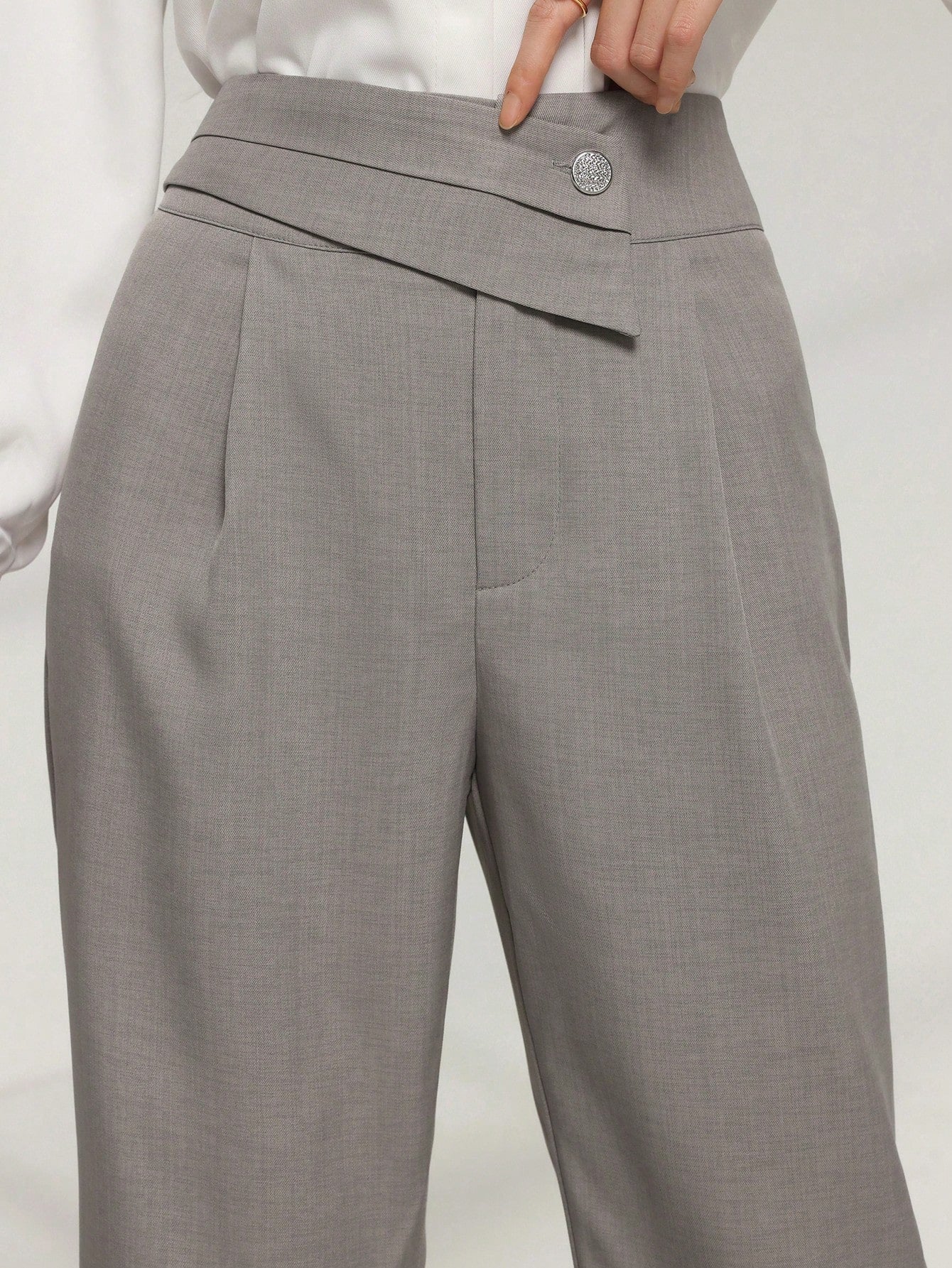 Modelyn Women's Elevated Waisted Wide Leg Casual Pants, Grey Design