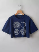 للنساء - تي شيرت قصير بطبعة القمر والشمس