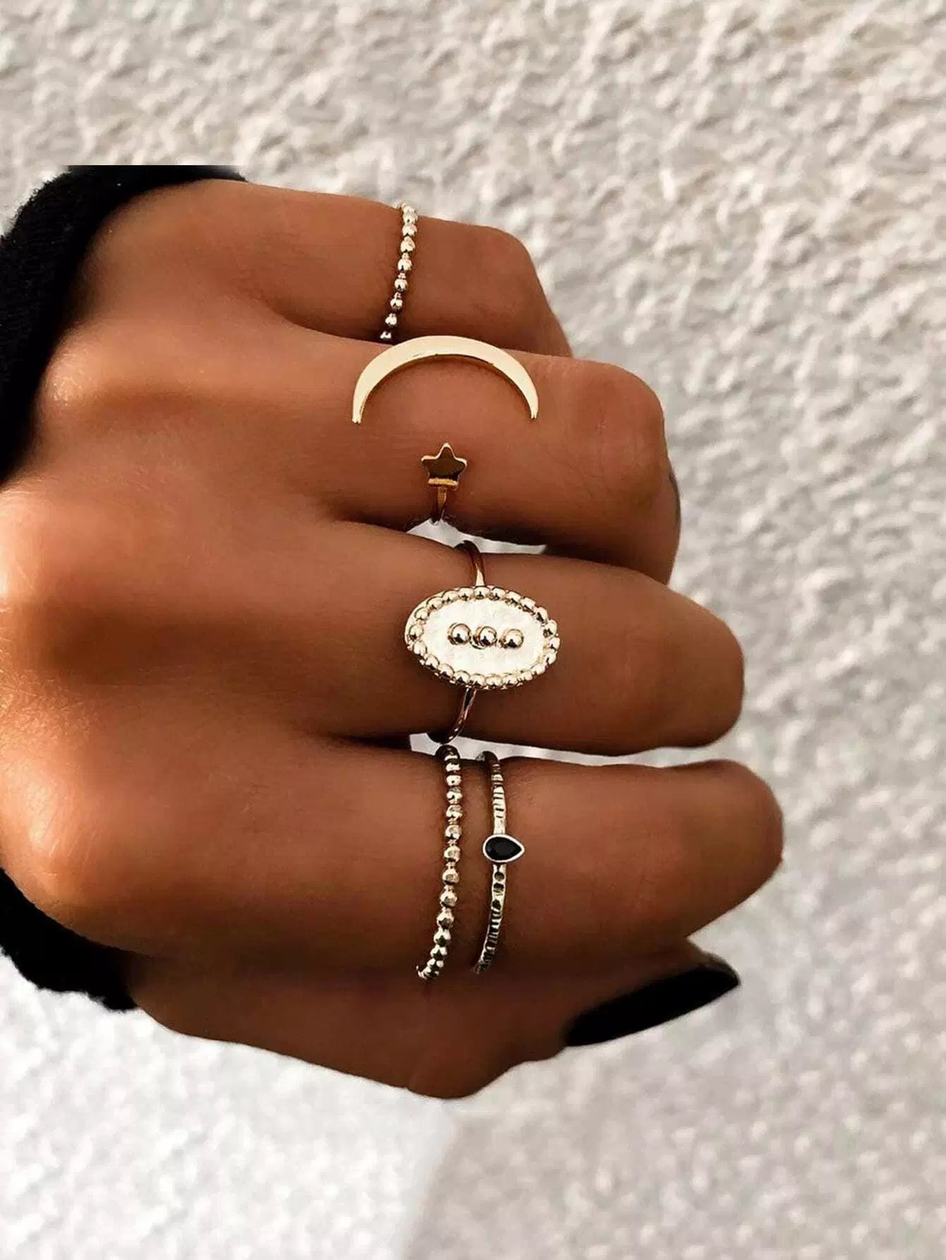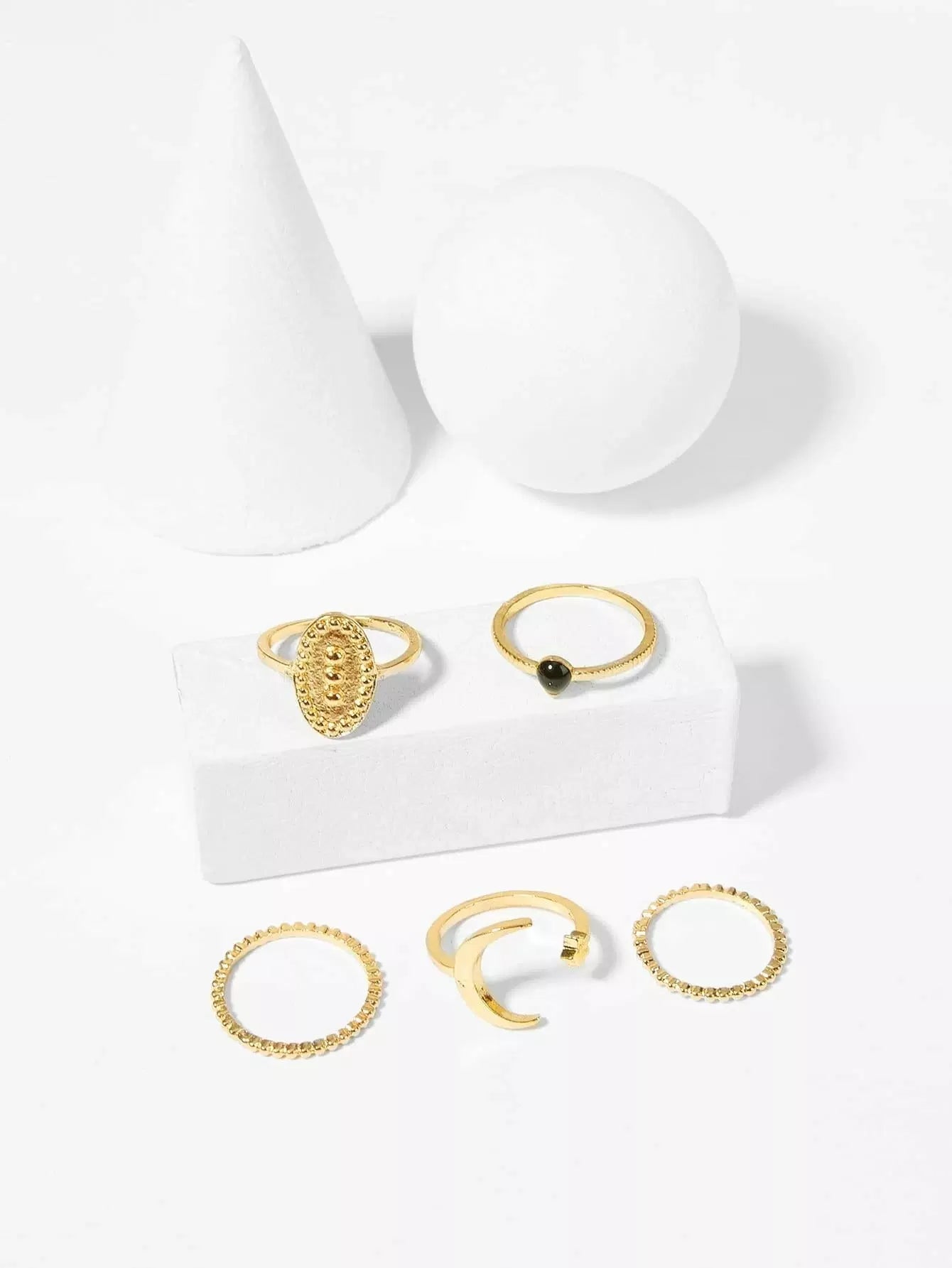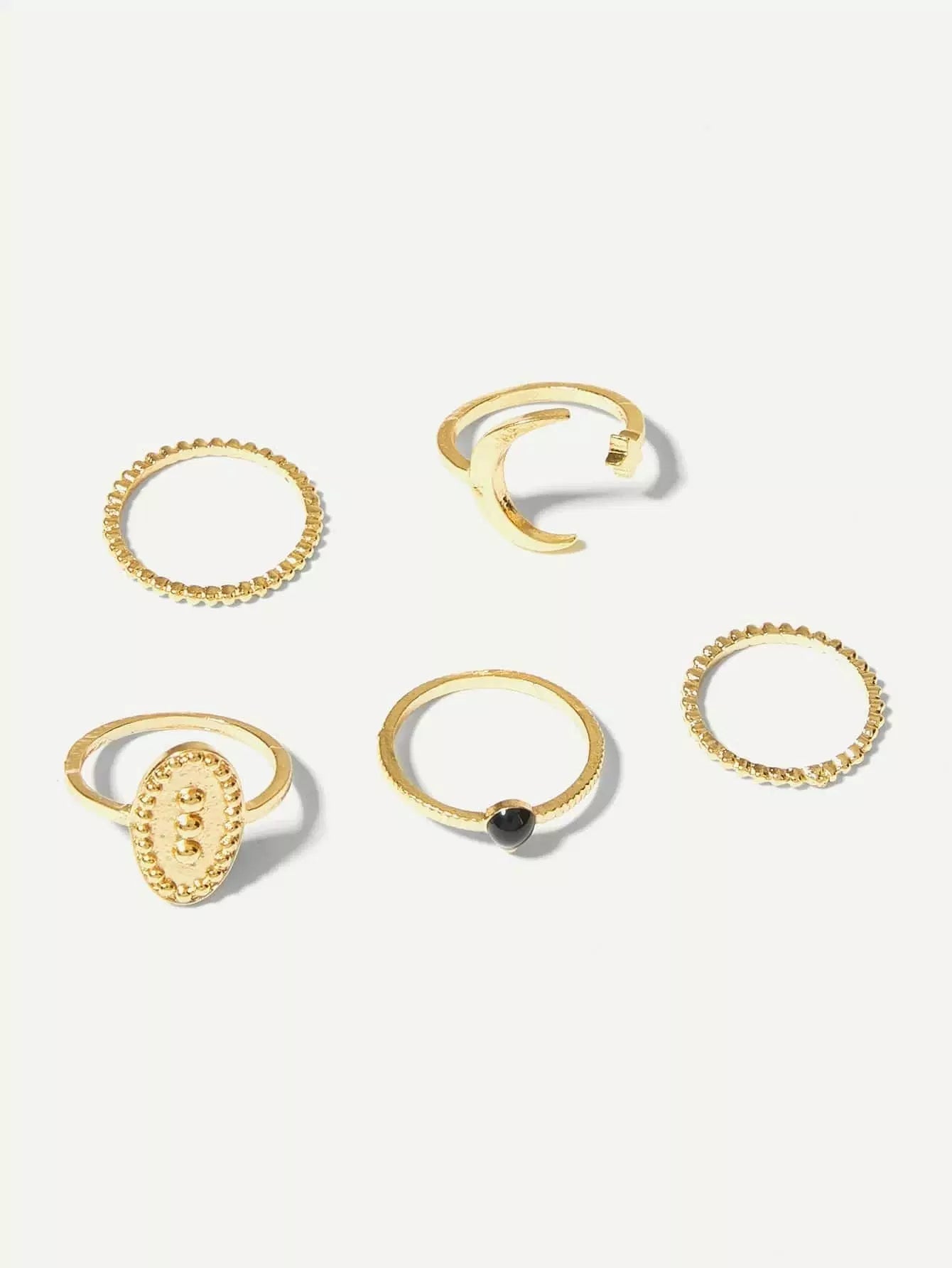 مجموعة خواتم بتفاصيل القمر والشكل البيضاوي 5 قطع