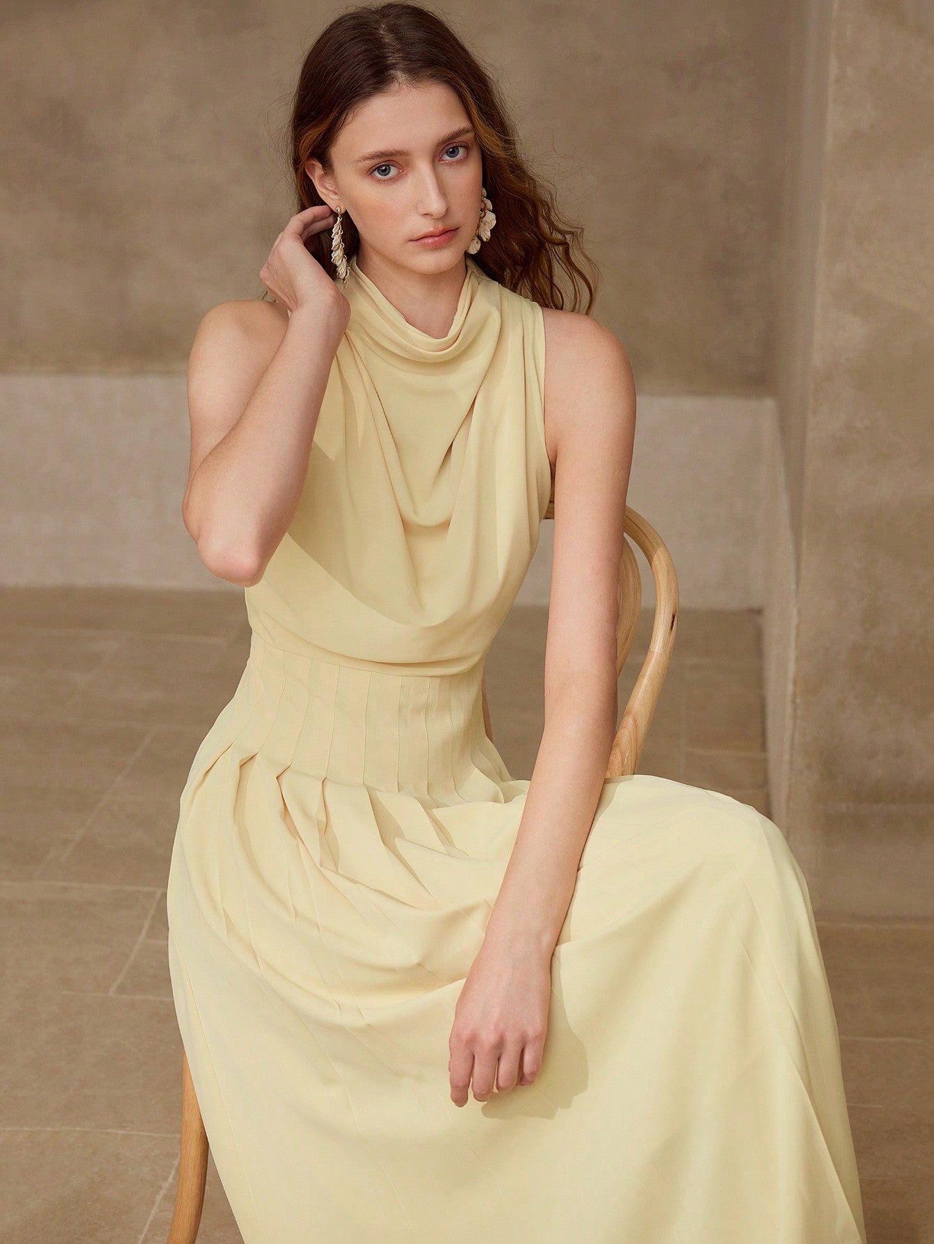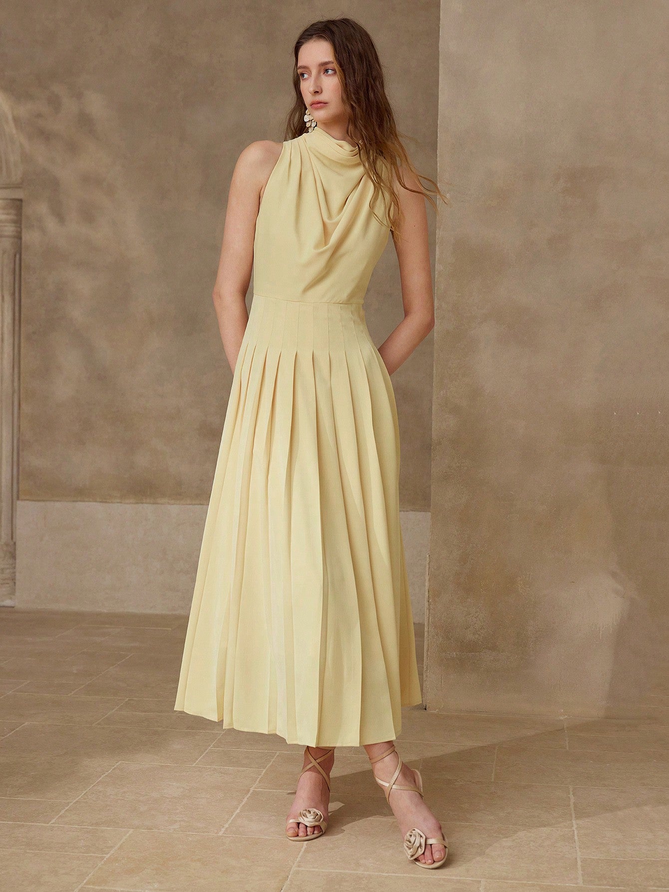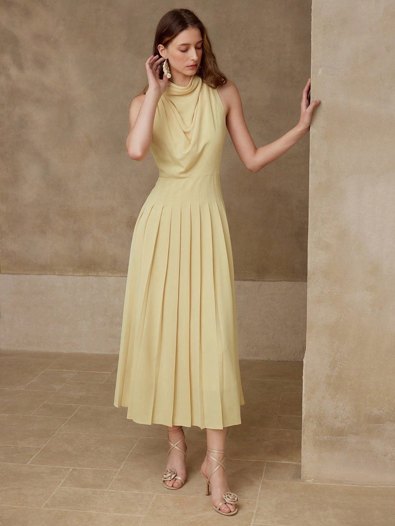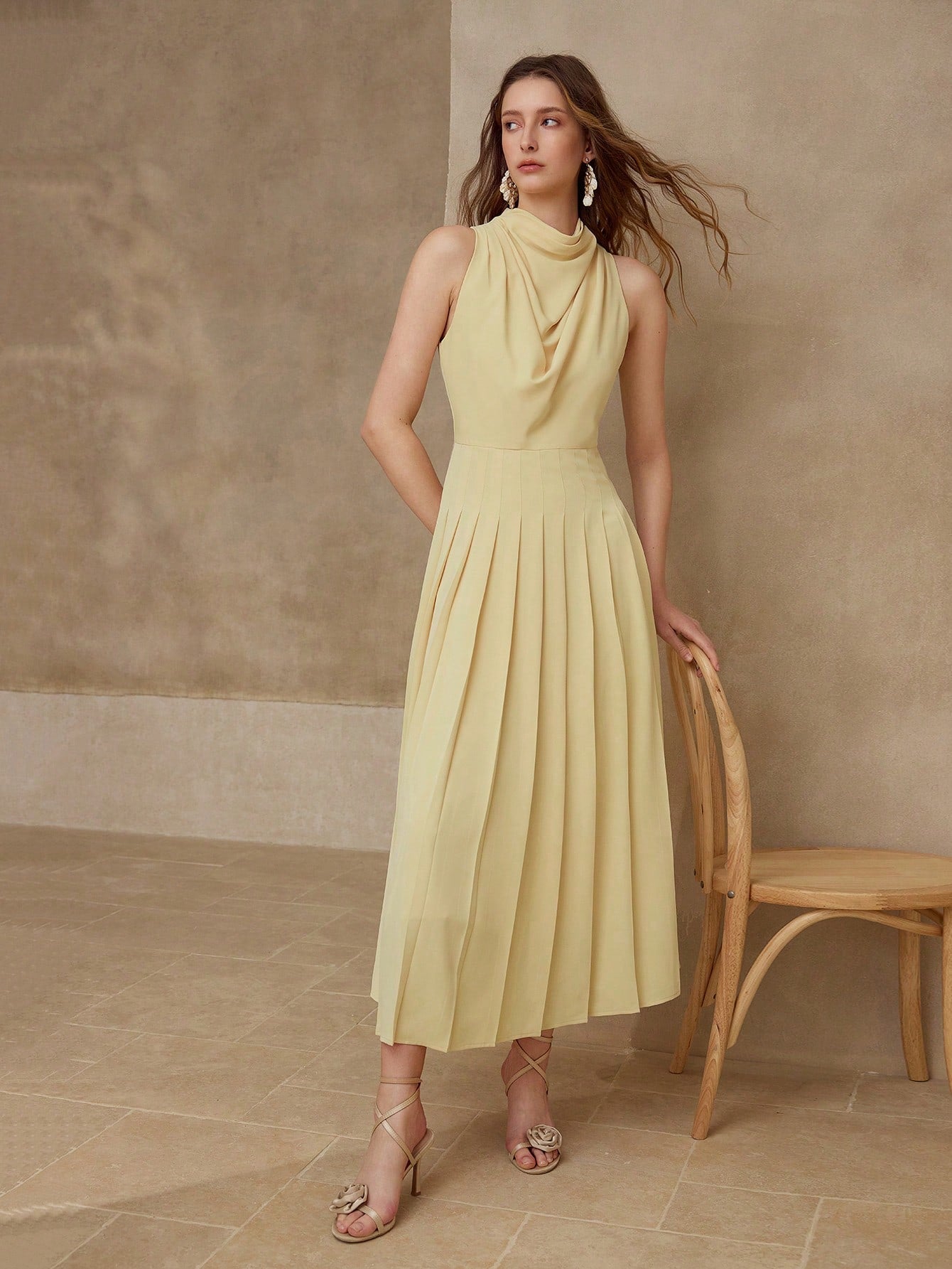 women MOTF PREMIUM COWL NECK PLEATED DRESS