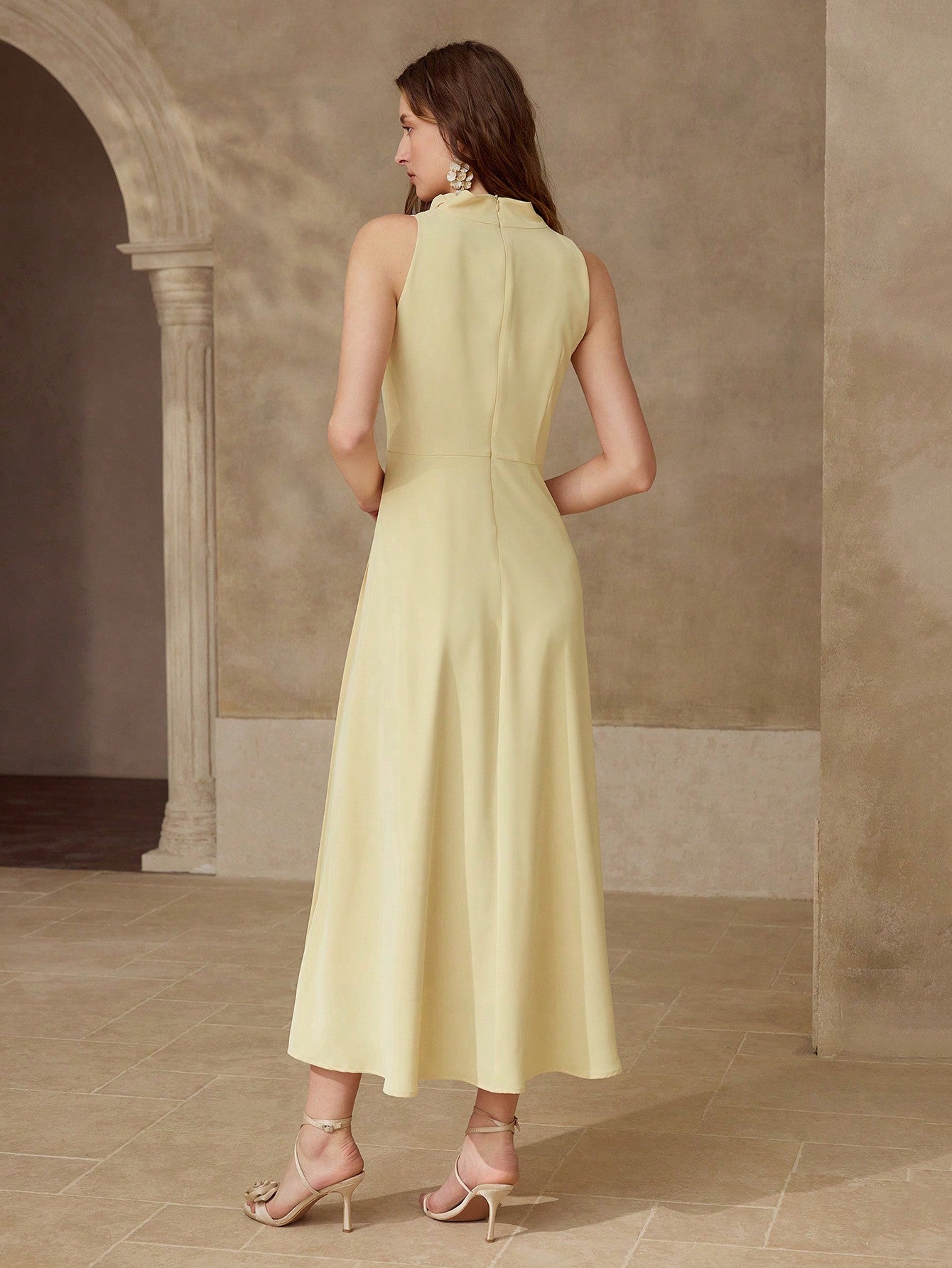 فستان MOTF الفاخر ذو الرقبة العالية والمطوي