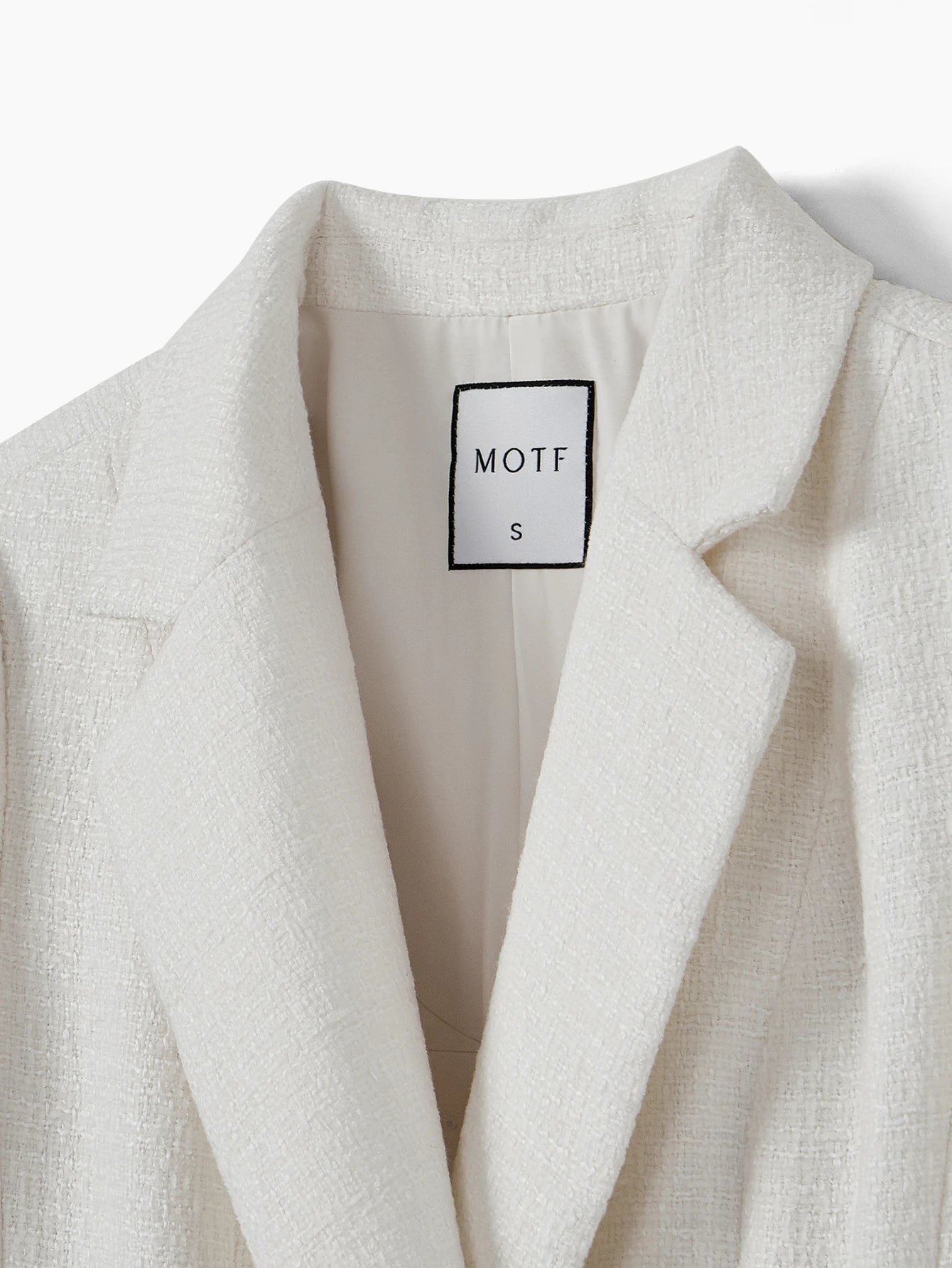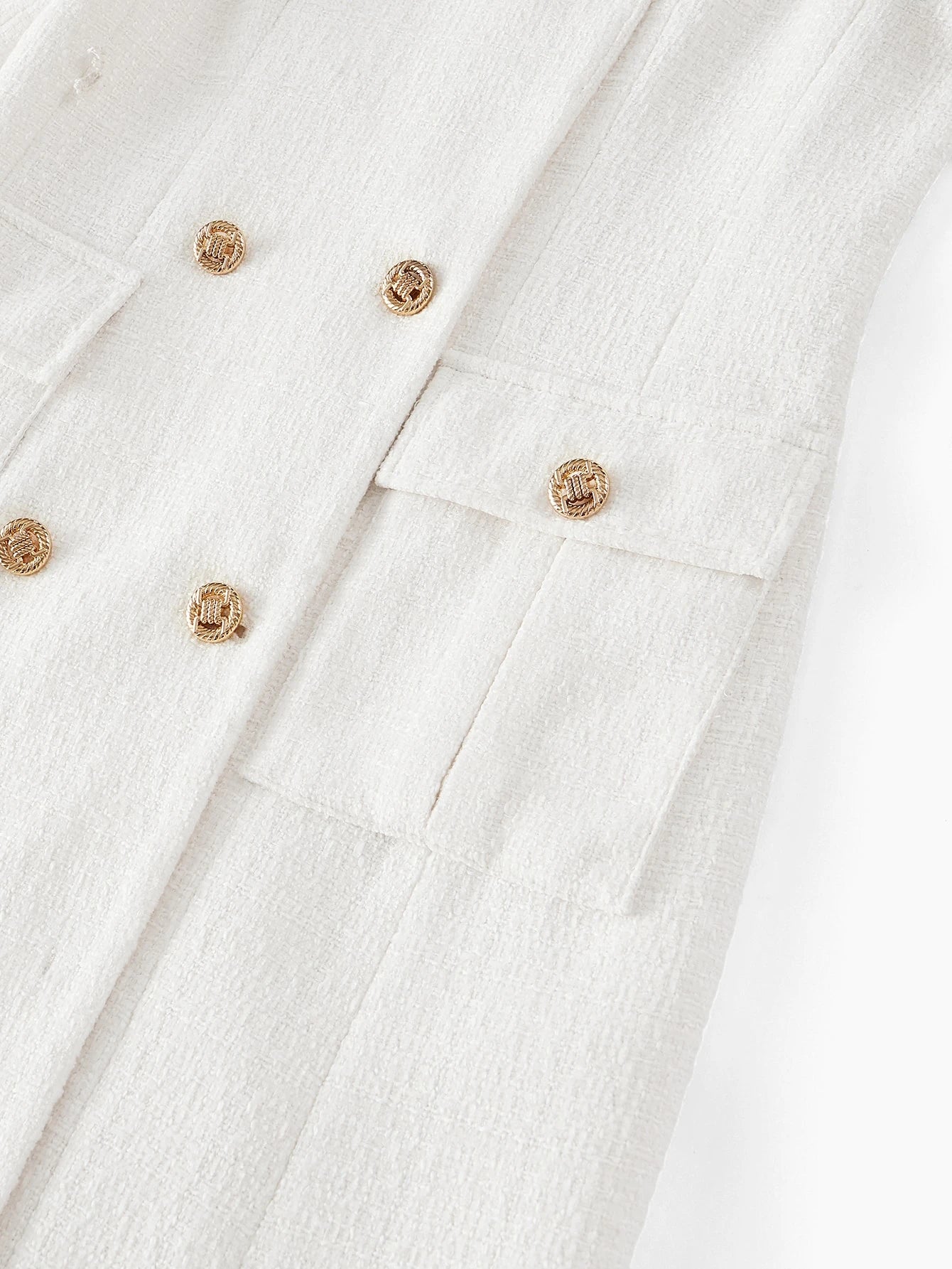 فستان قصير من قماش التويد الفاخر من MOTF، بياقة عريضة وجيب بغطاء وإبزيم، بدون حزام