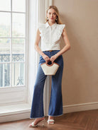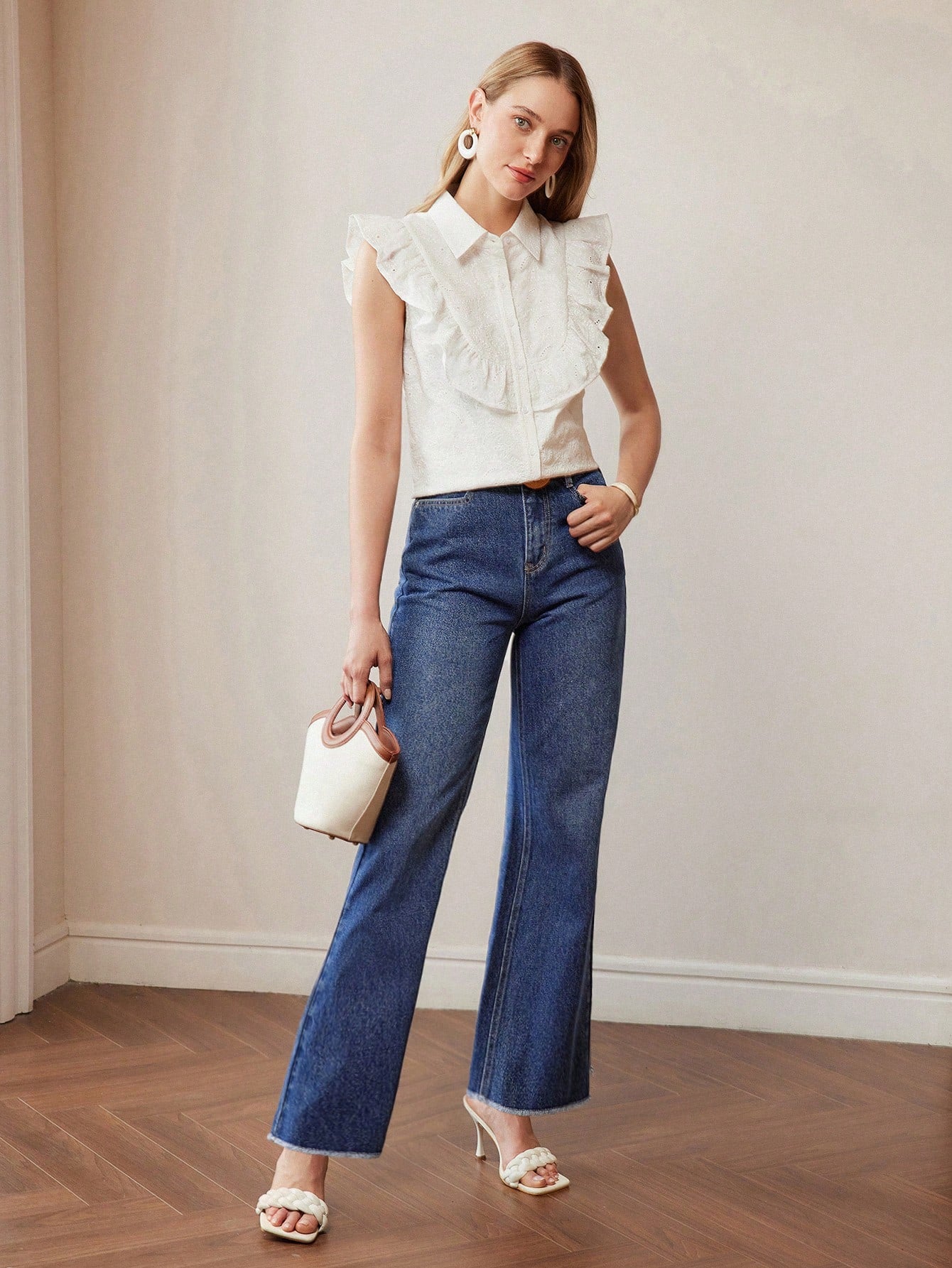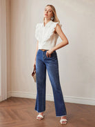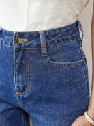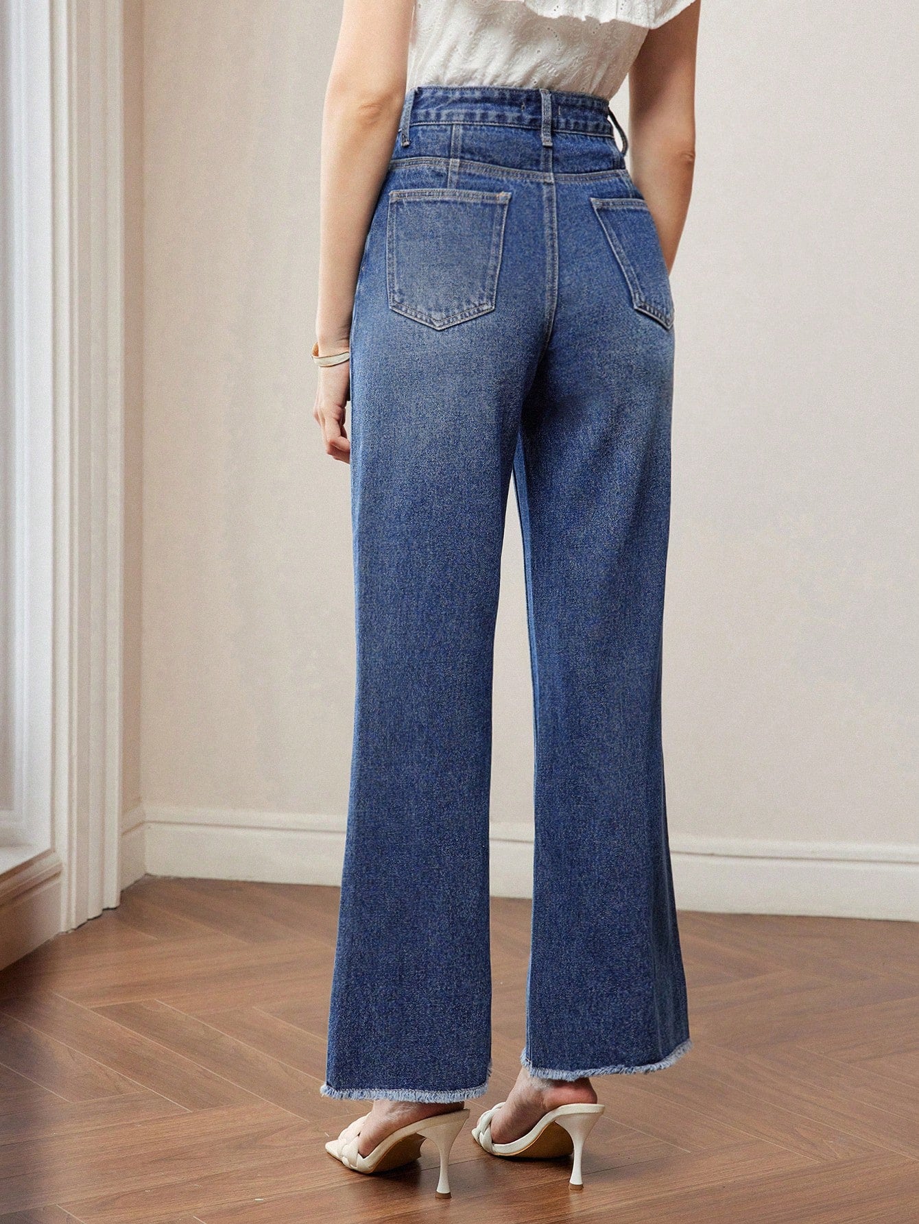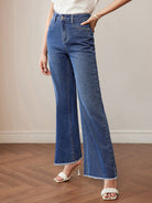 women MOTF PREMIUM ZIPPER FLY RAW EDGE FLARE LEG JEANS WITHOUT BELT