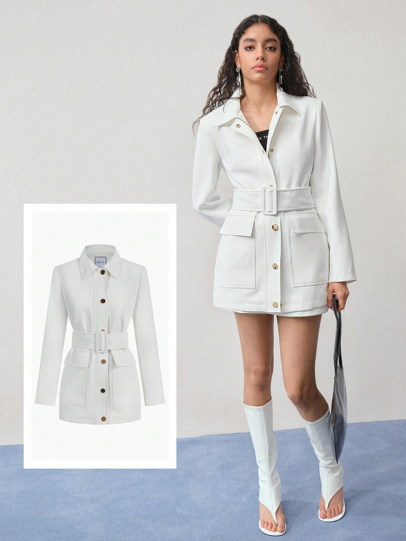 معطف ترنش MOTF STUDIO مزدوج الجيوب بأزرار