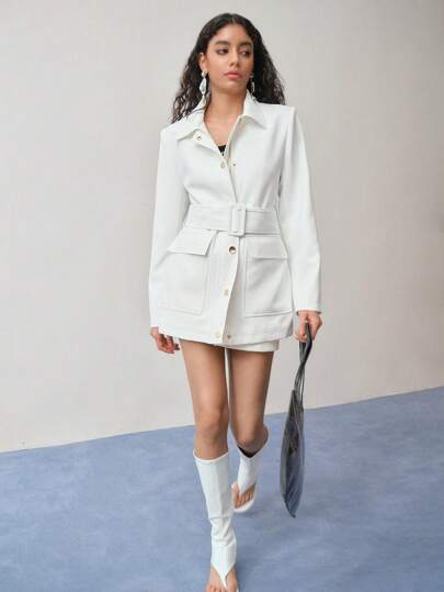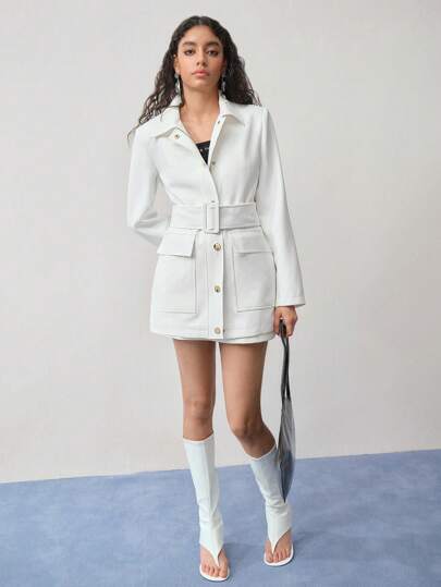 women MOTF STUDIO DUAL POCKET BUTTON UP TRENCH COAT