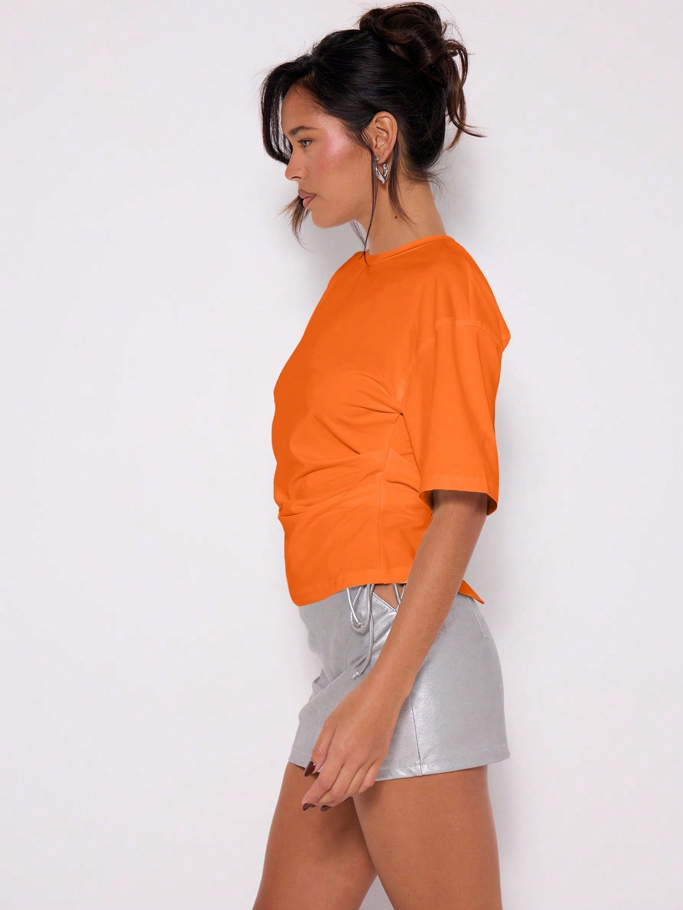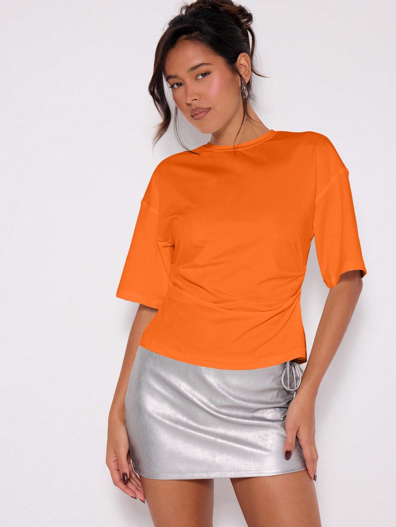 MUSERA Cinched Waist Draped T-Shirt Spring Summer Casual Airport Holiday Fall Back To School Autumn