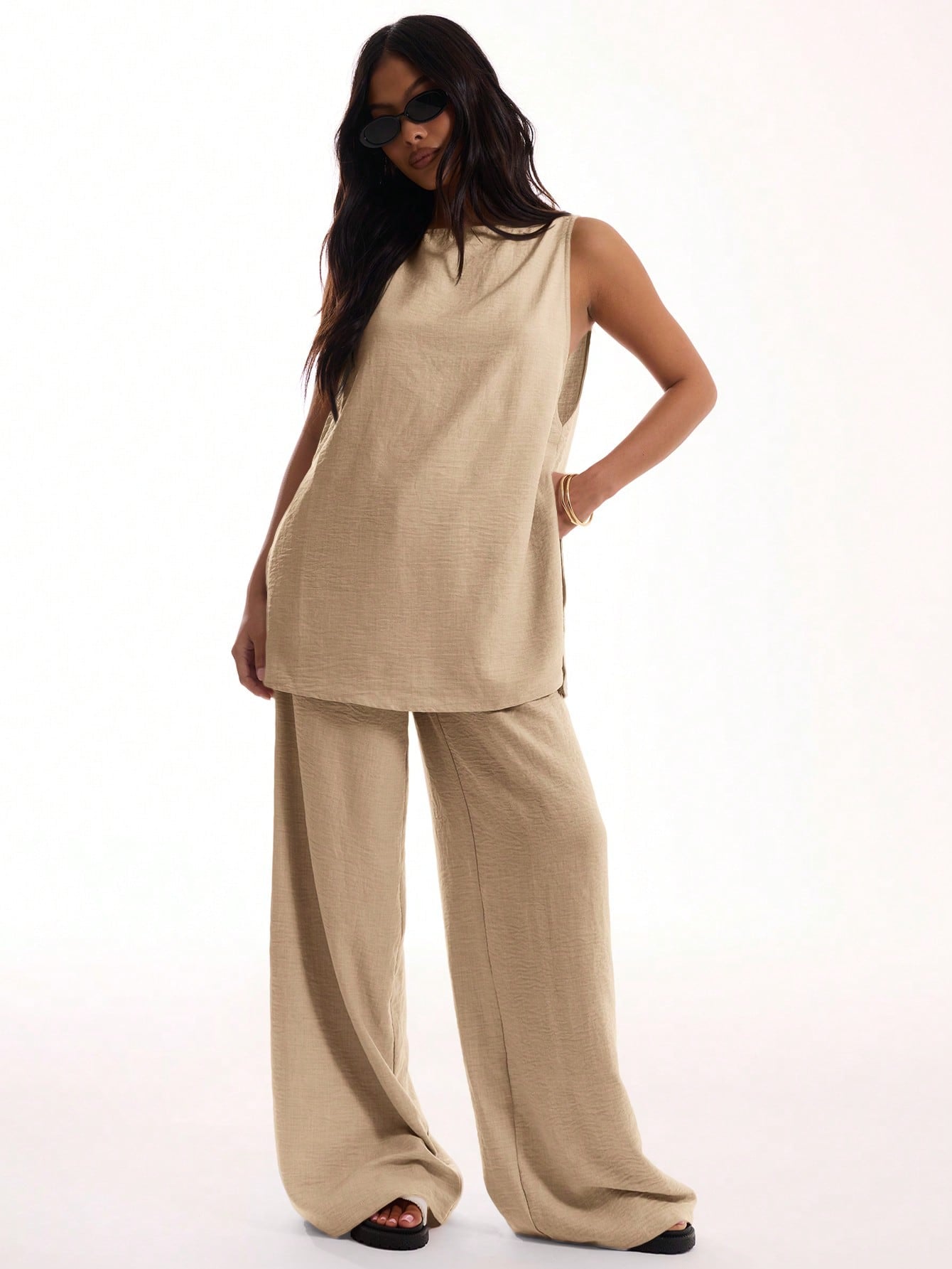 MUSERA Linen Feel Elastic Waist Trousers Vacation Summer Beach Cover Up Cute Elegant Ibiza Beach