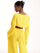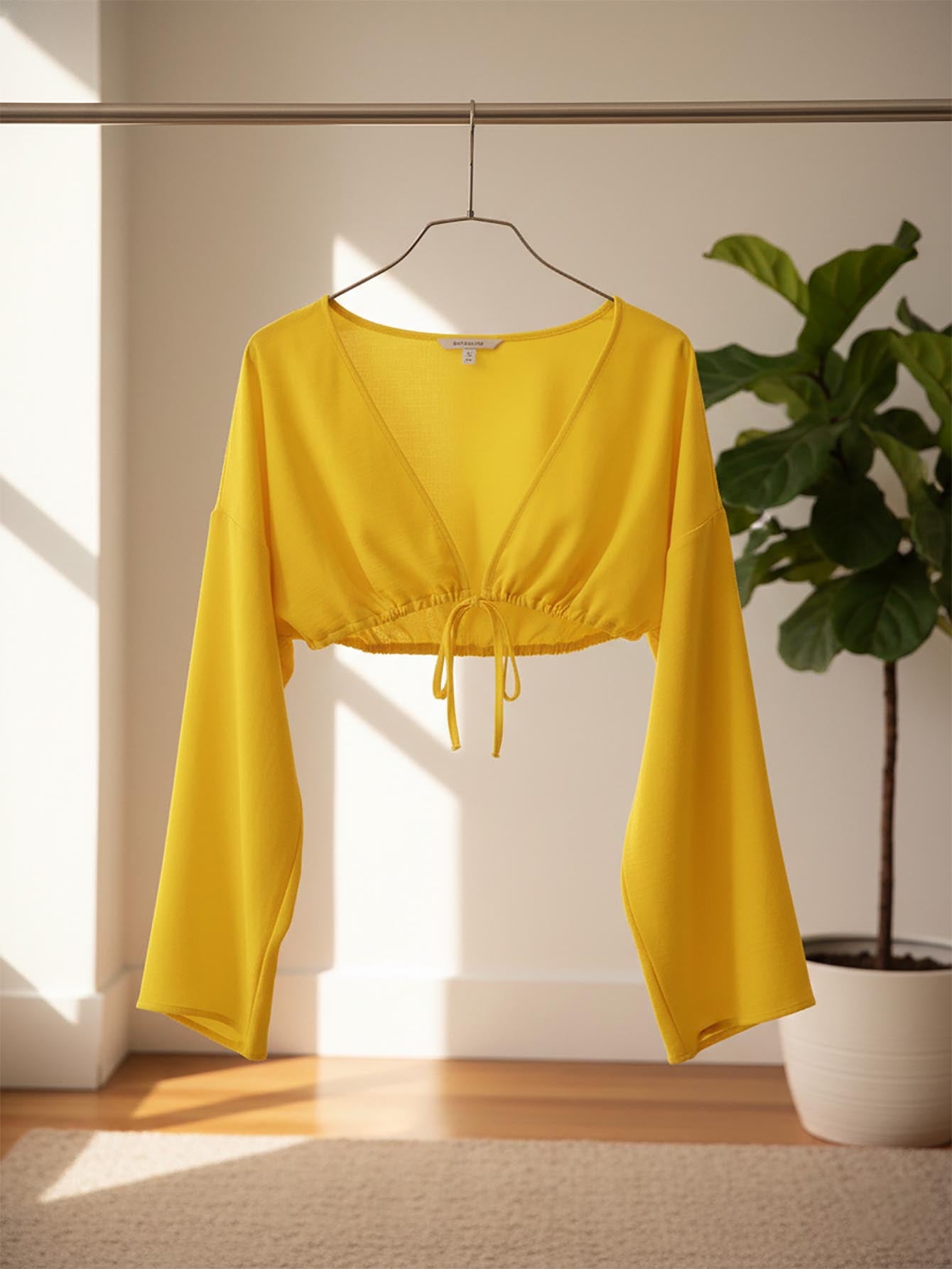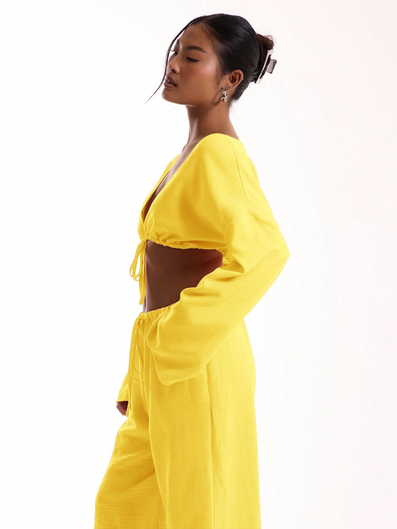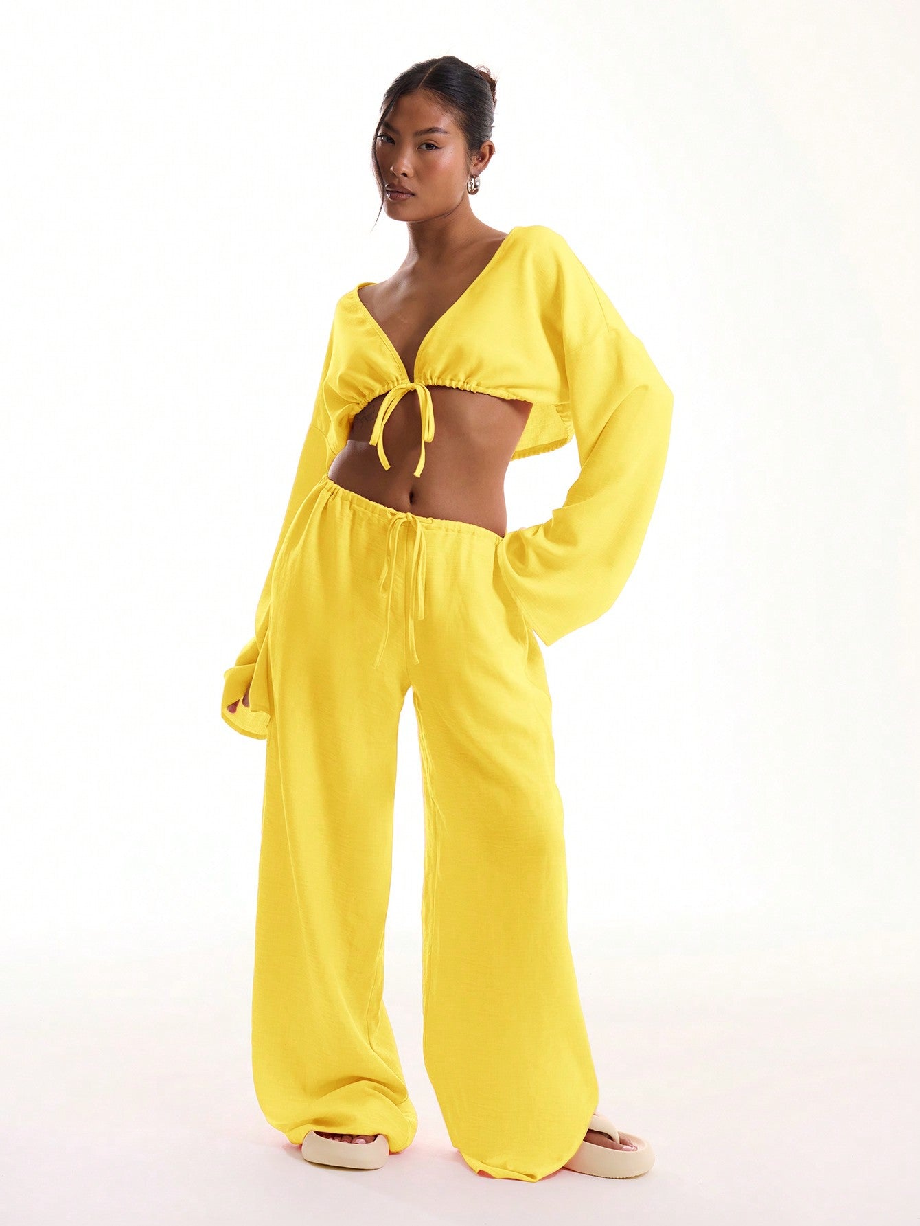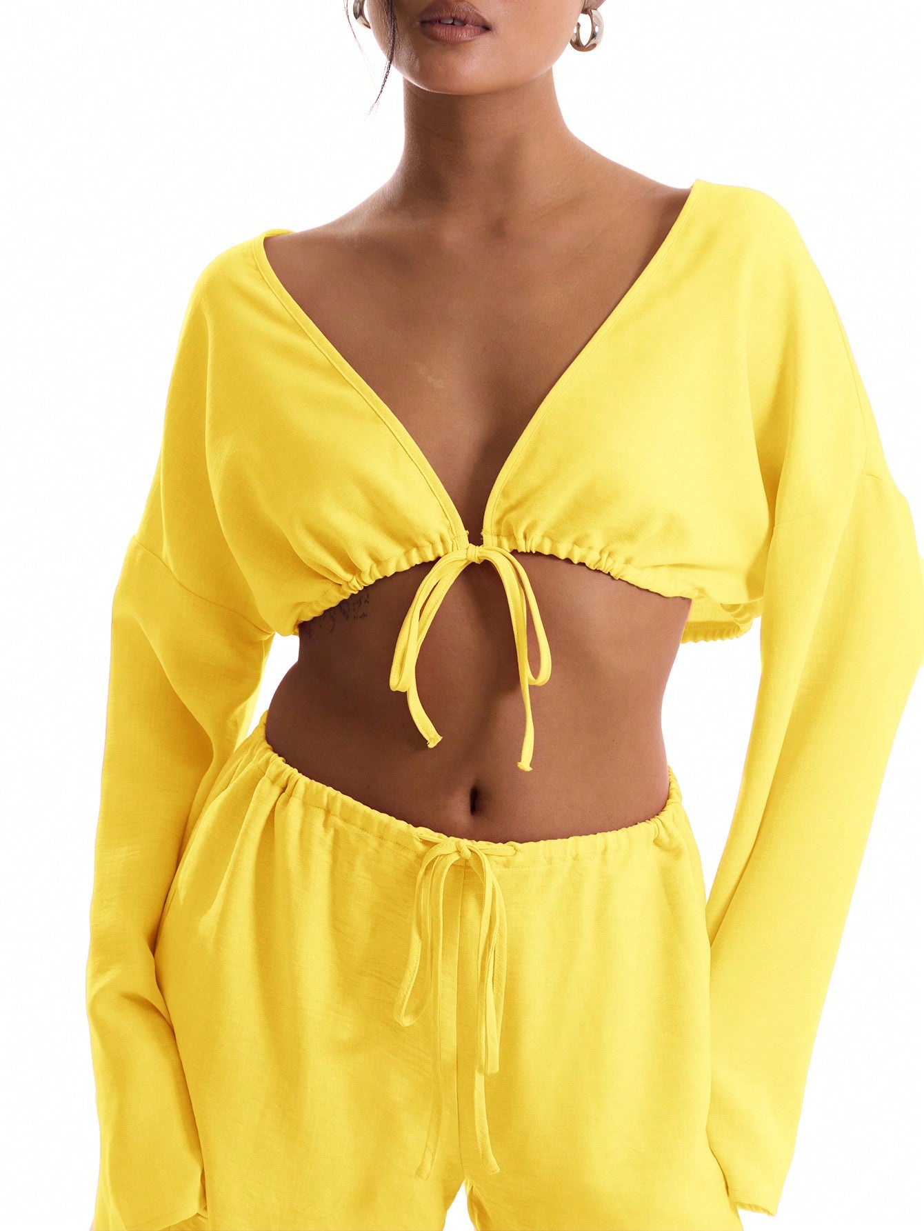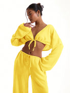 بلوزة شاطئية بأكمام واسعة وربطة أمامية من MUSERA مصنوعة من الكتان الناعم