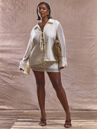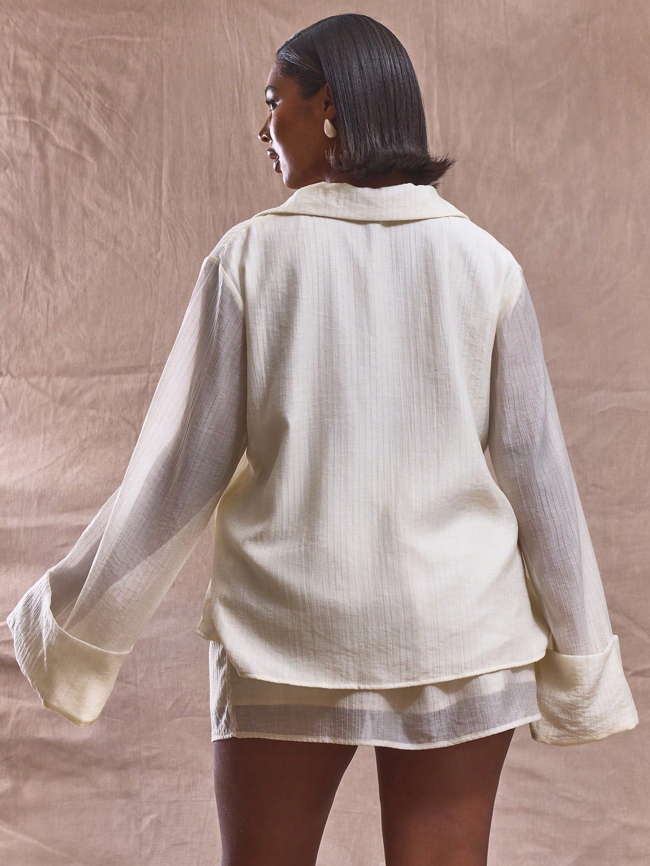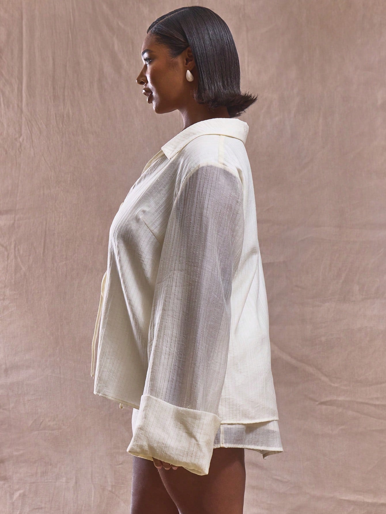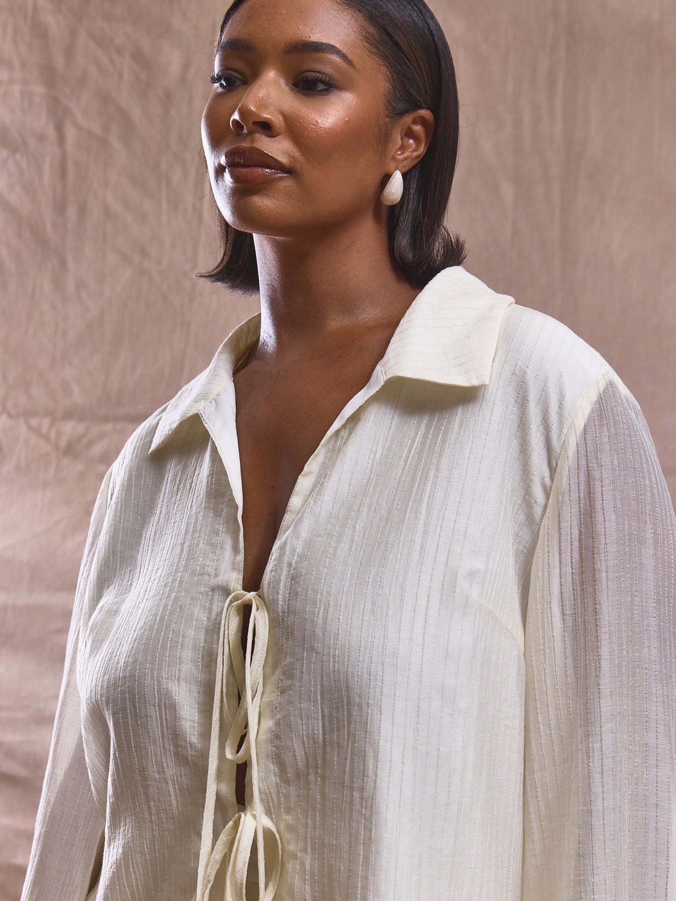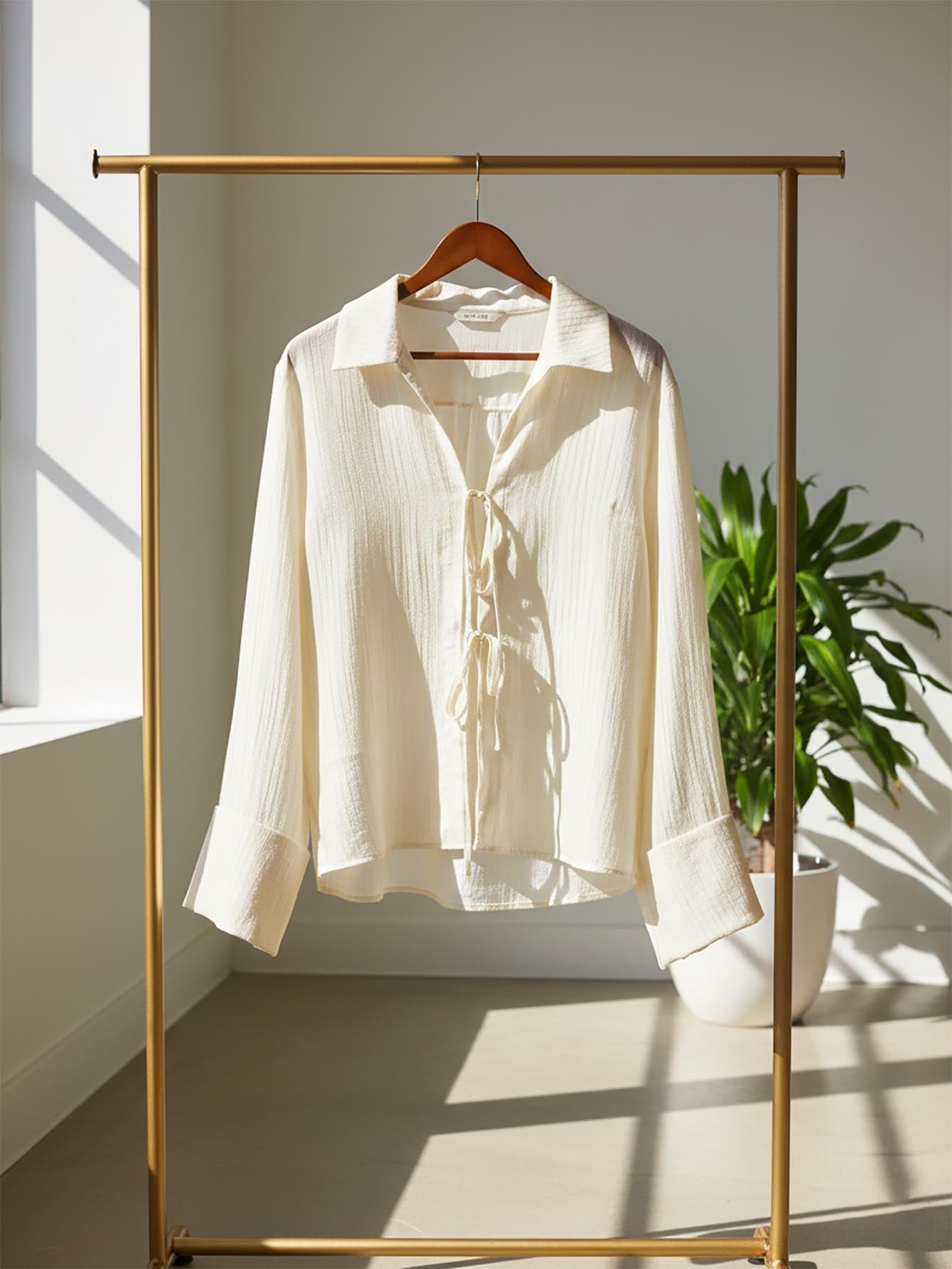 قميص موسيرا ذو المقاسات الكبيرة، بياقة وربطة أمامية وأكمام طويلة، أنيق وجذاب.
