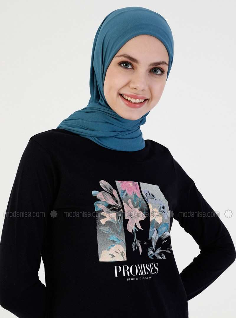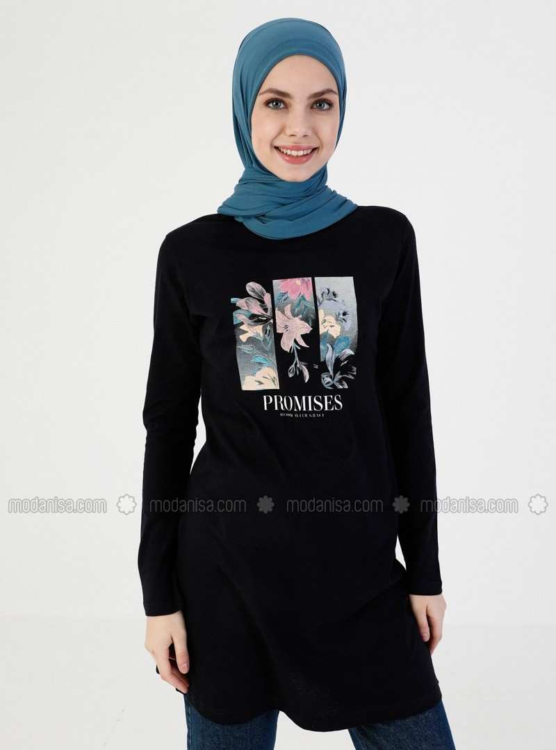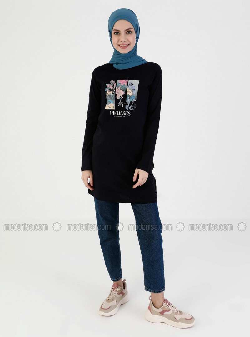 تونيك برقبة دائرية باللون الأزرق الداكن
