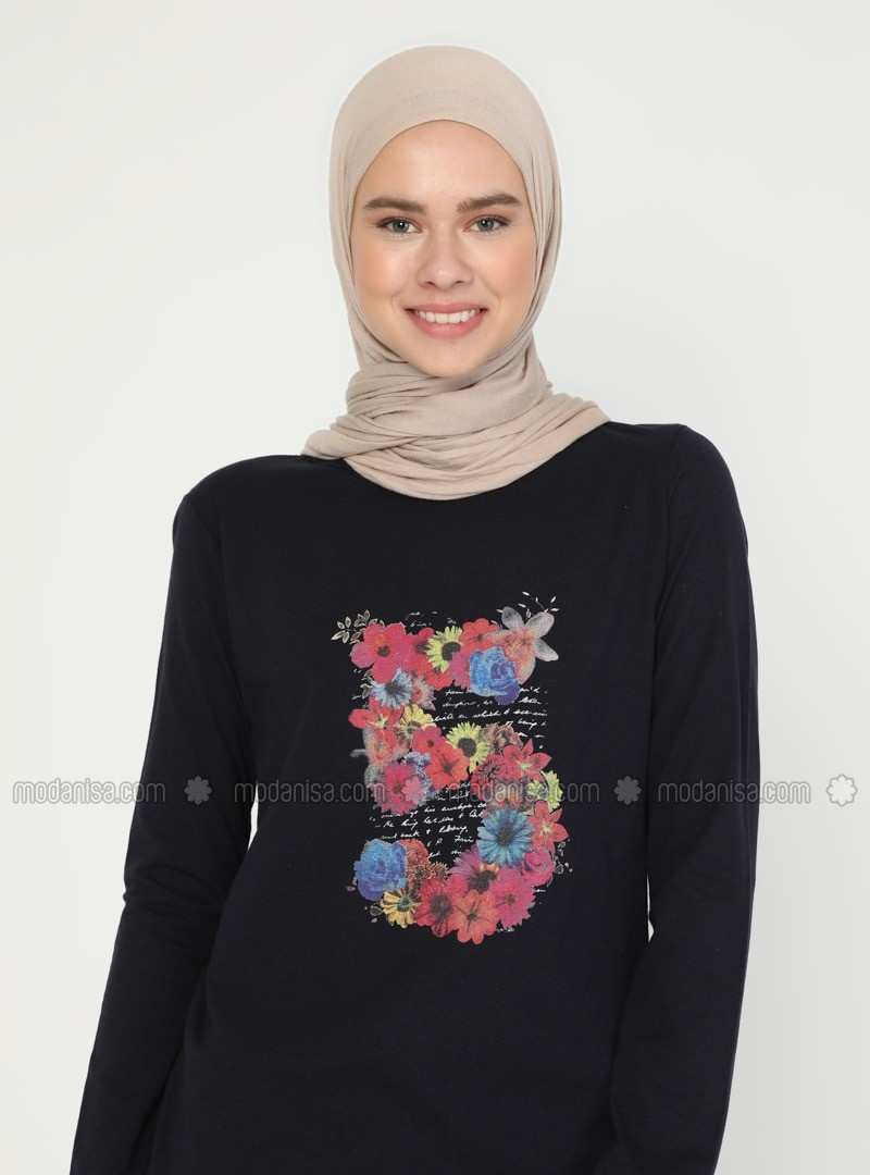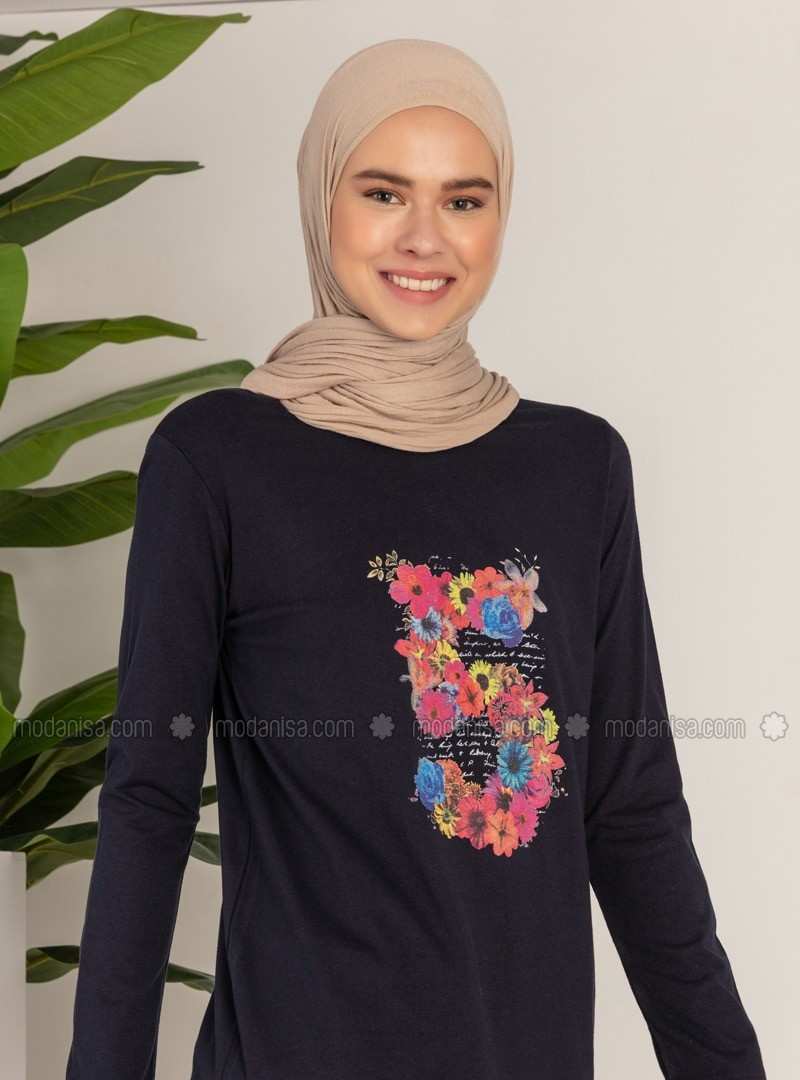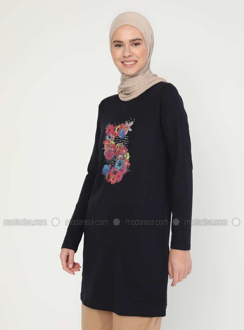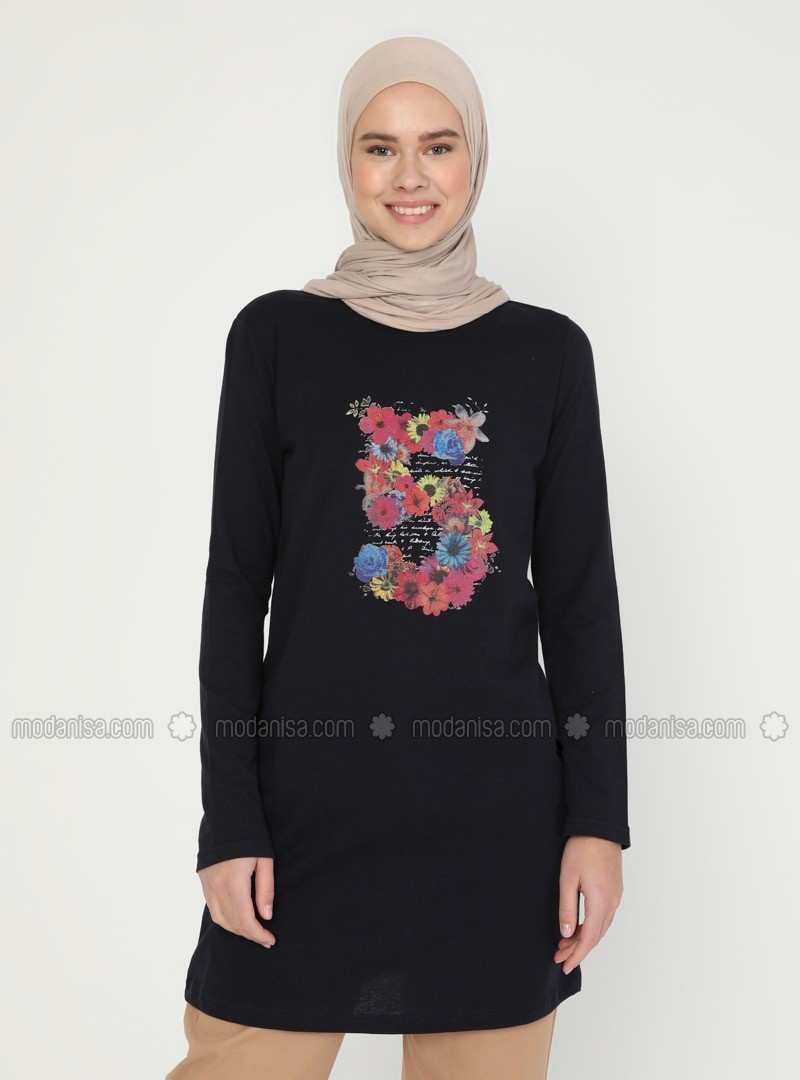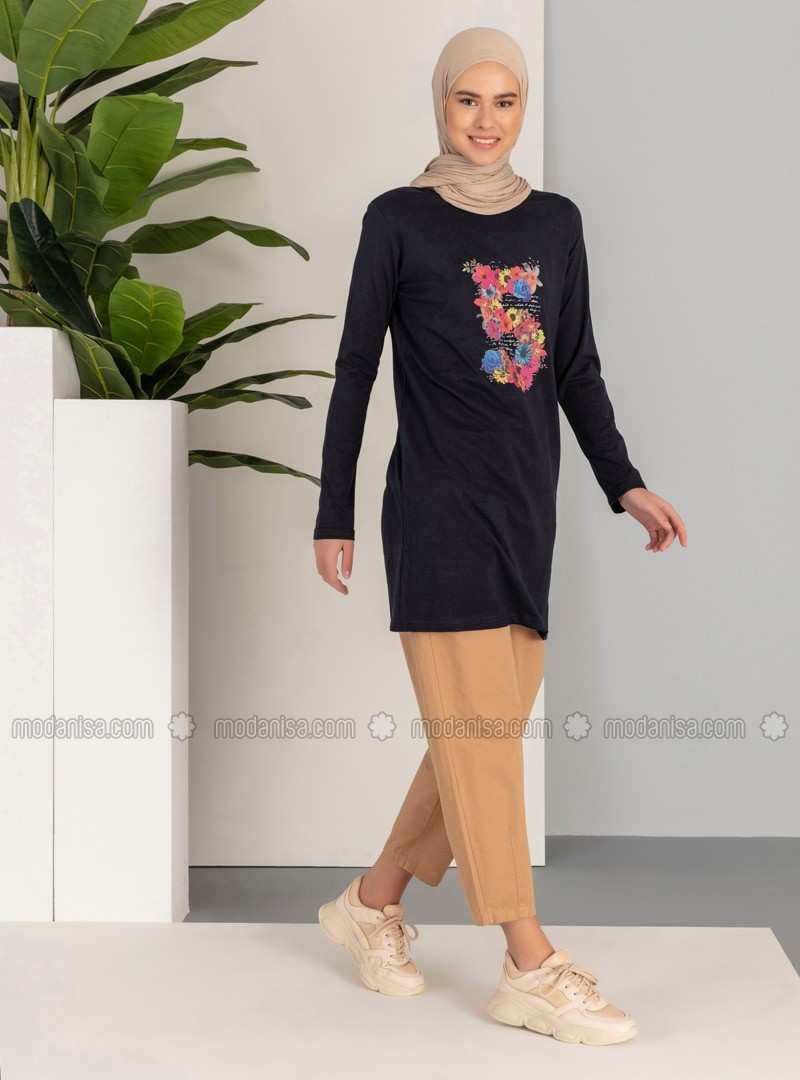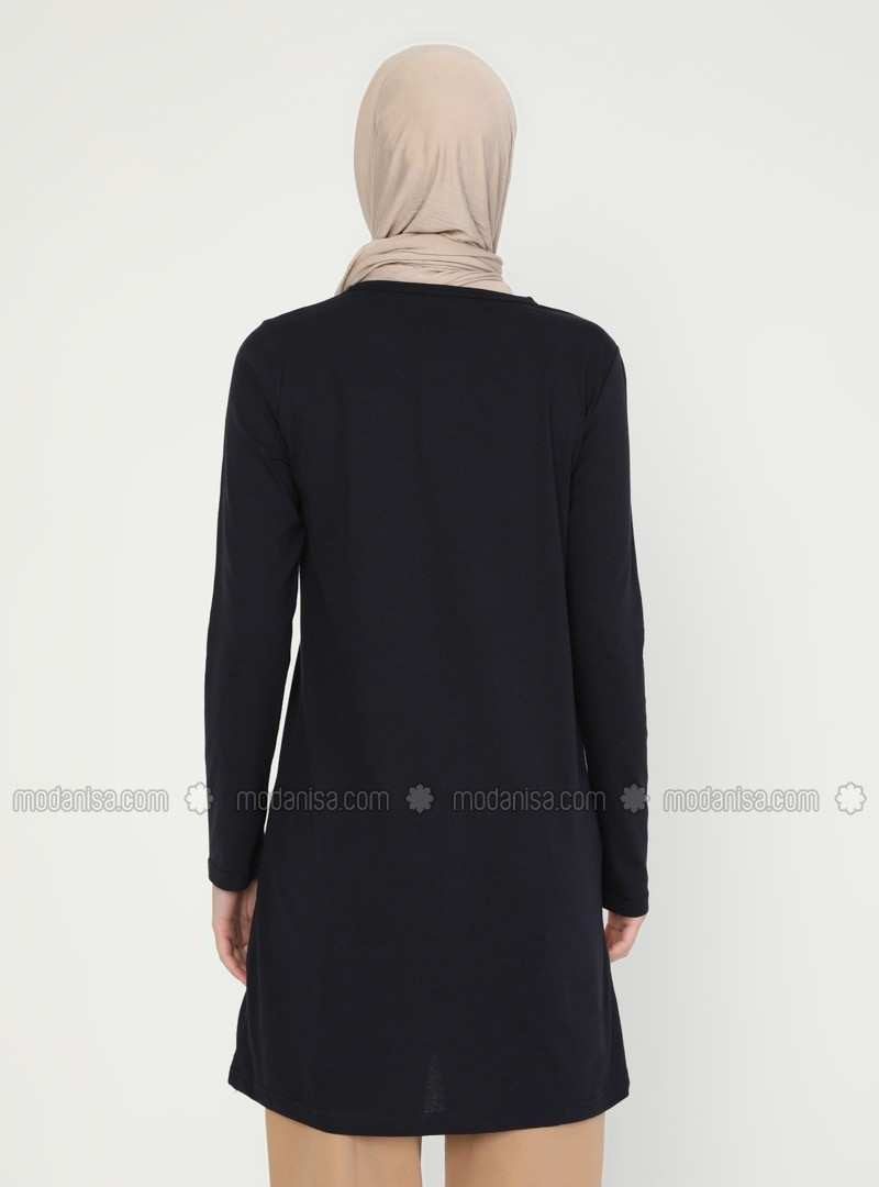 تونيك برقبة دائرية باللون الأزرق الداكن