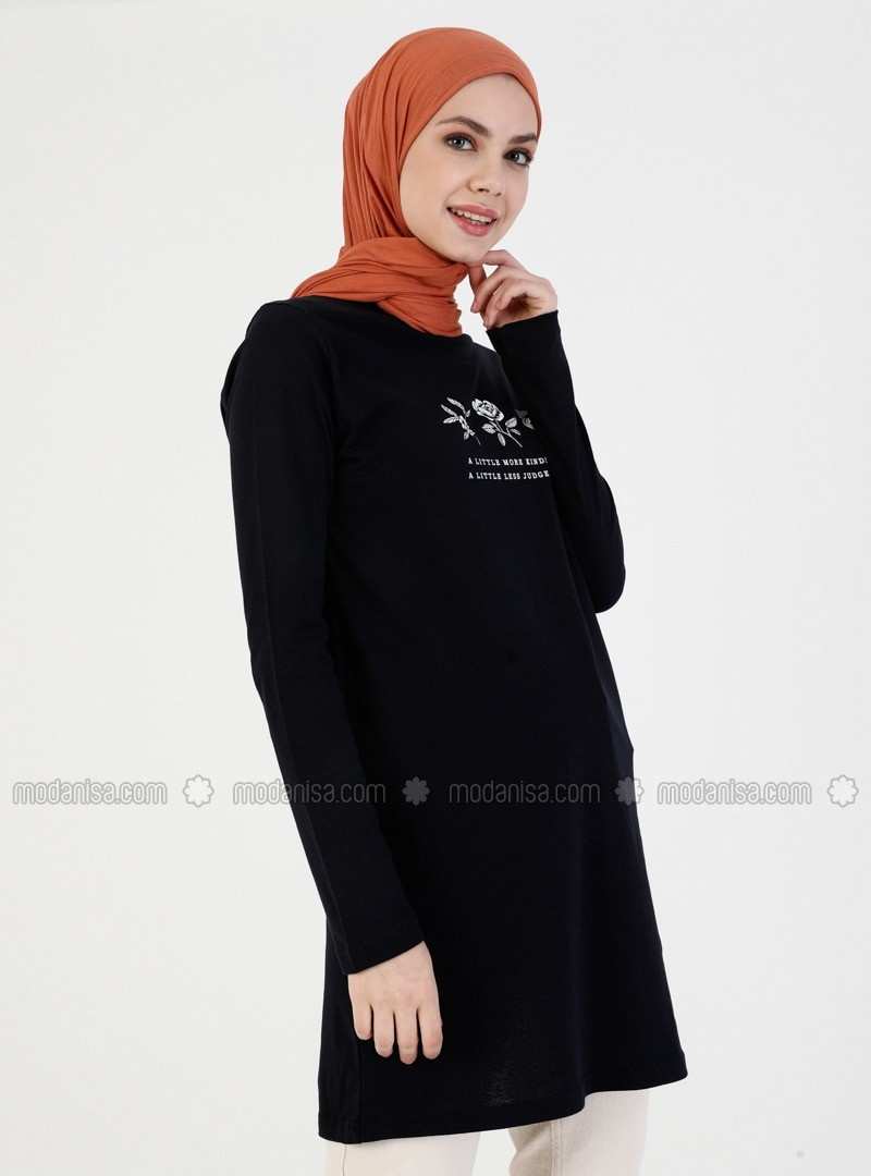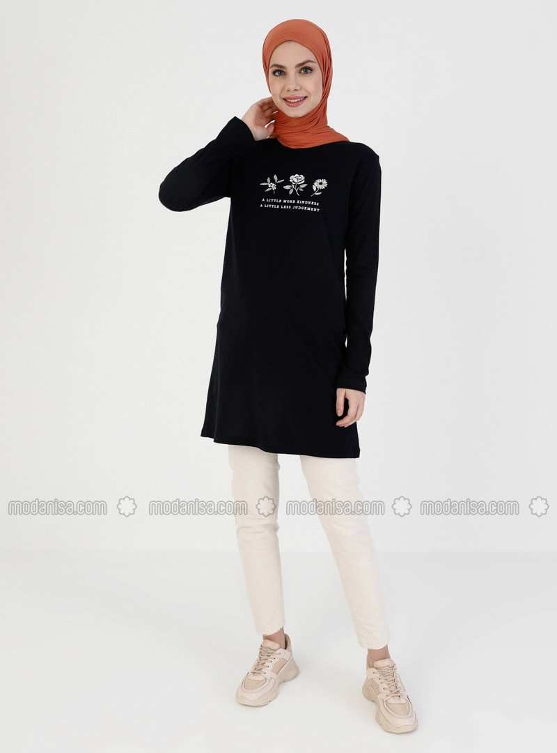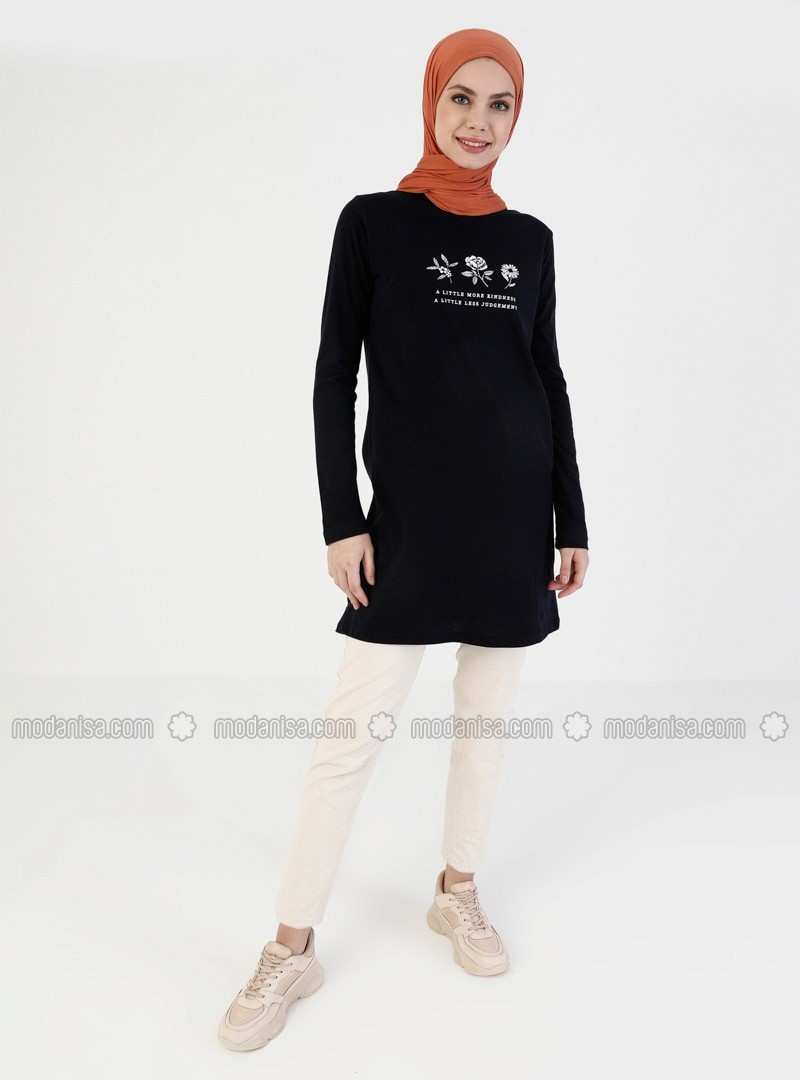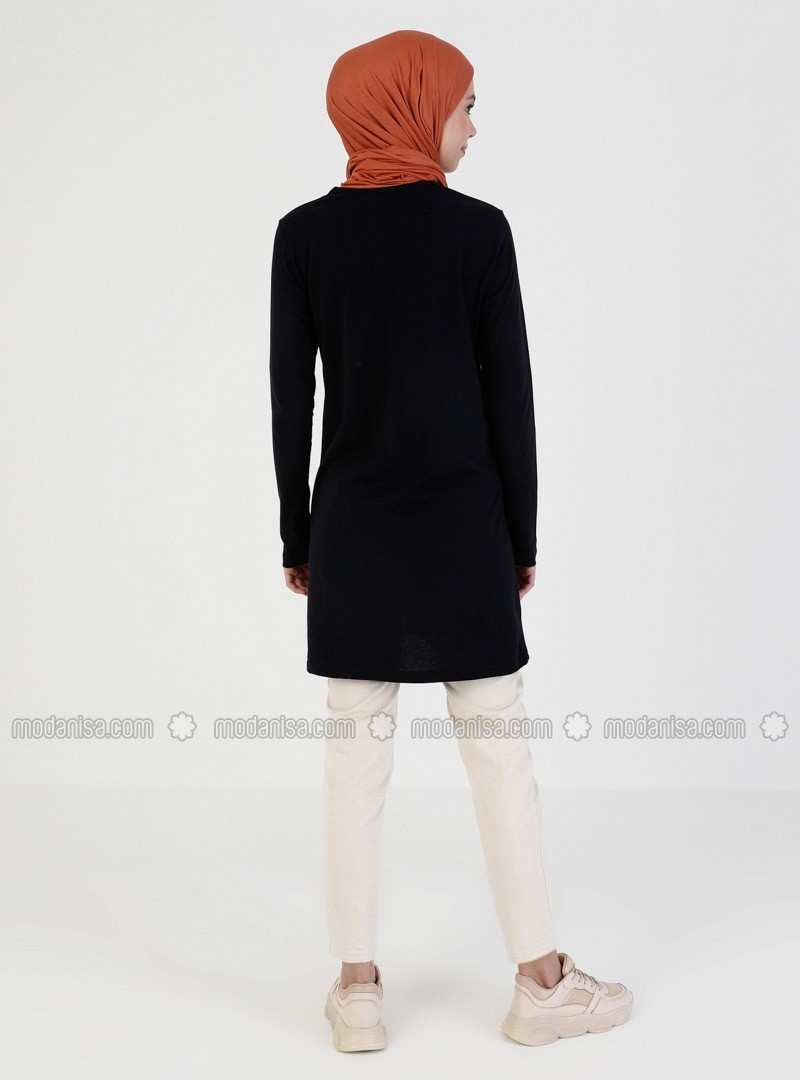 تونيك برقبة دائرية باللون الأزرق الداكن