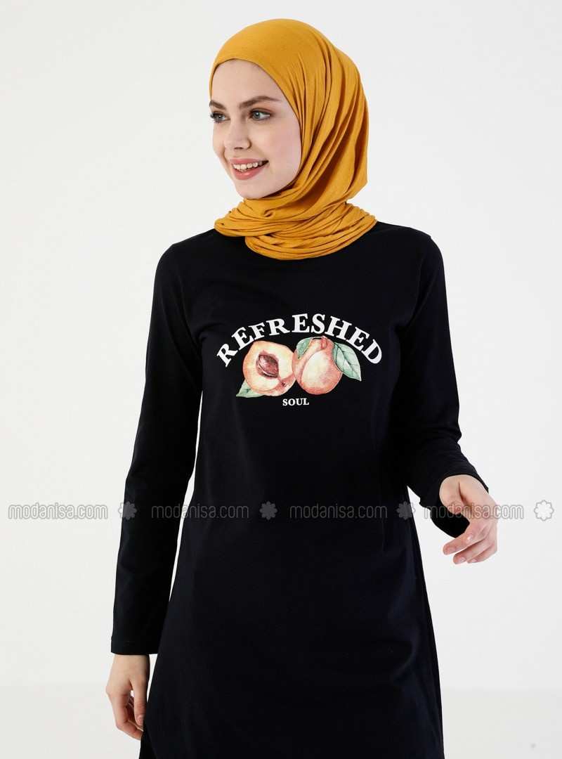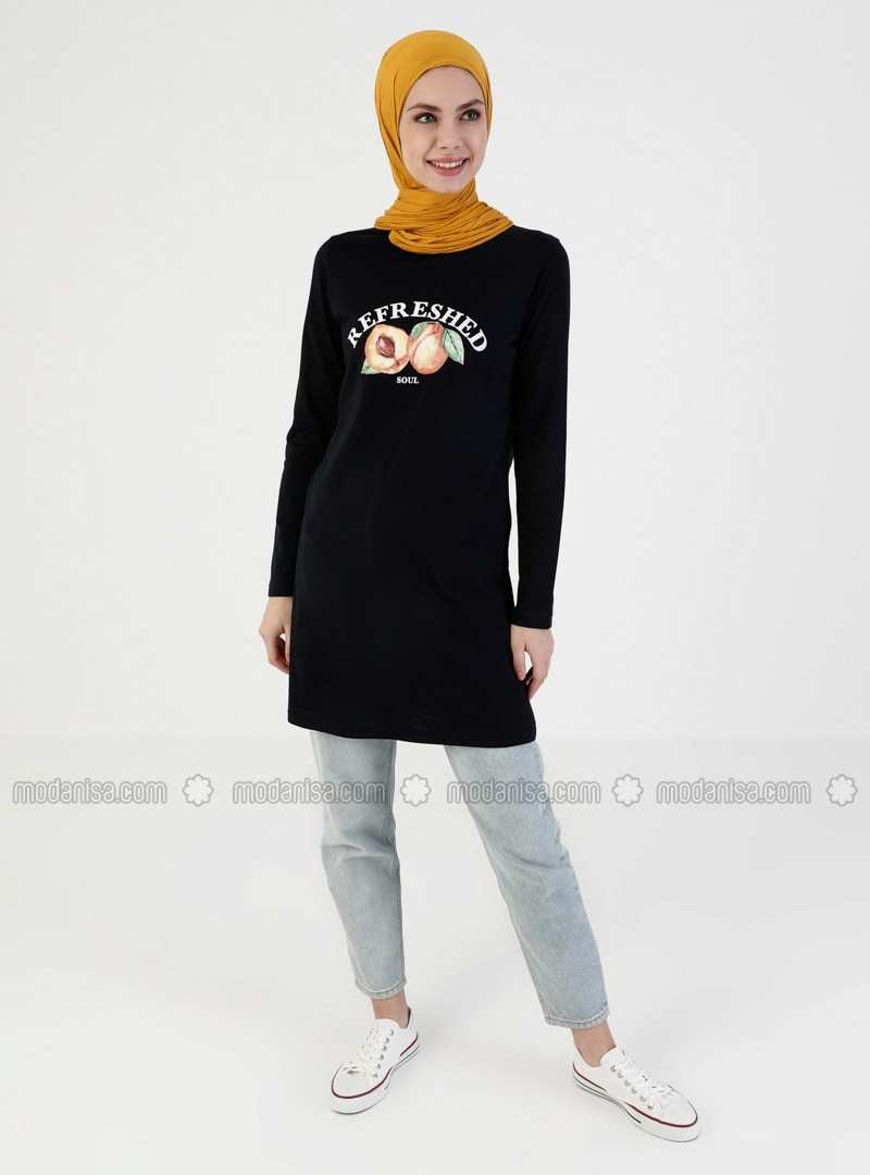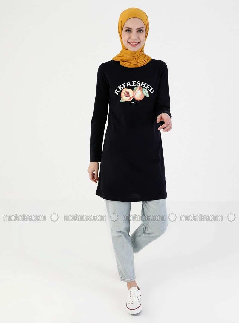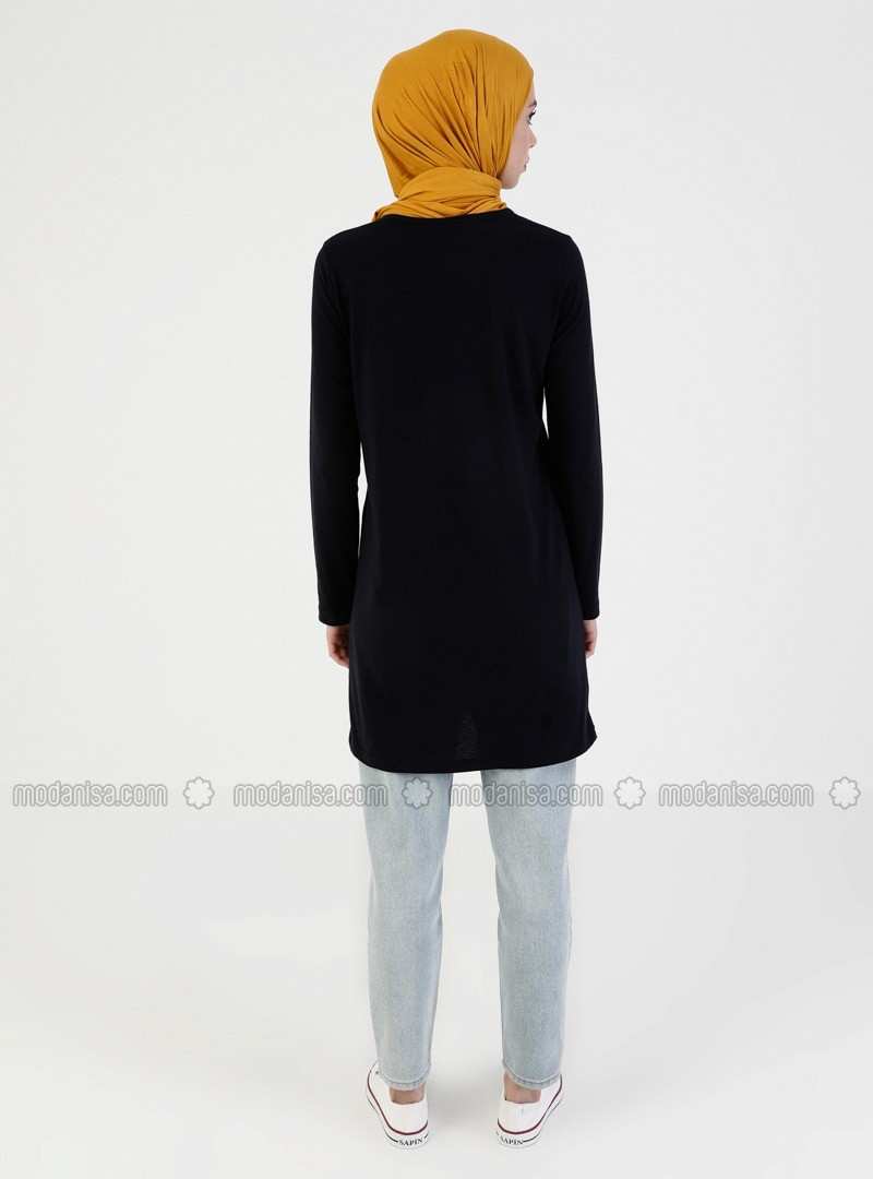 تونيك برقبة دائرية باللون الأزرق الداكن