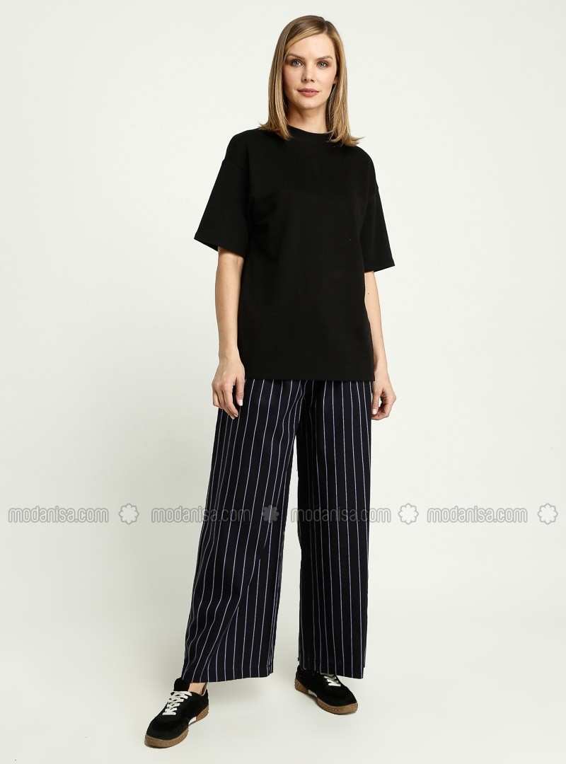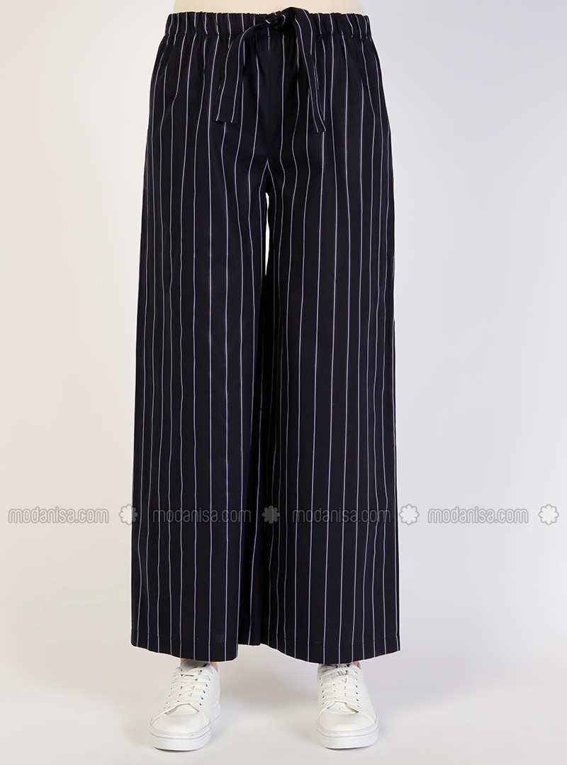 سروال مخطط باللون الأزرق الداكن ziwoman