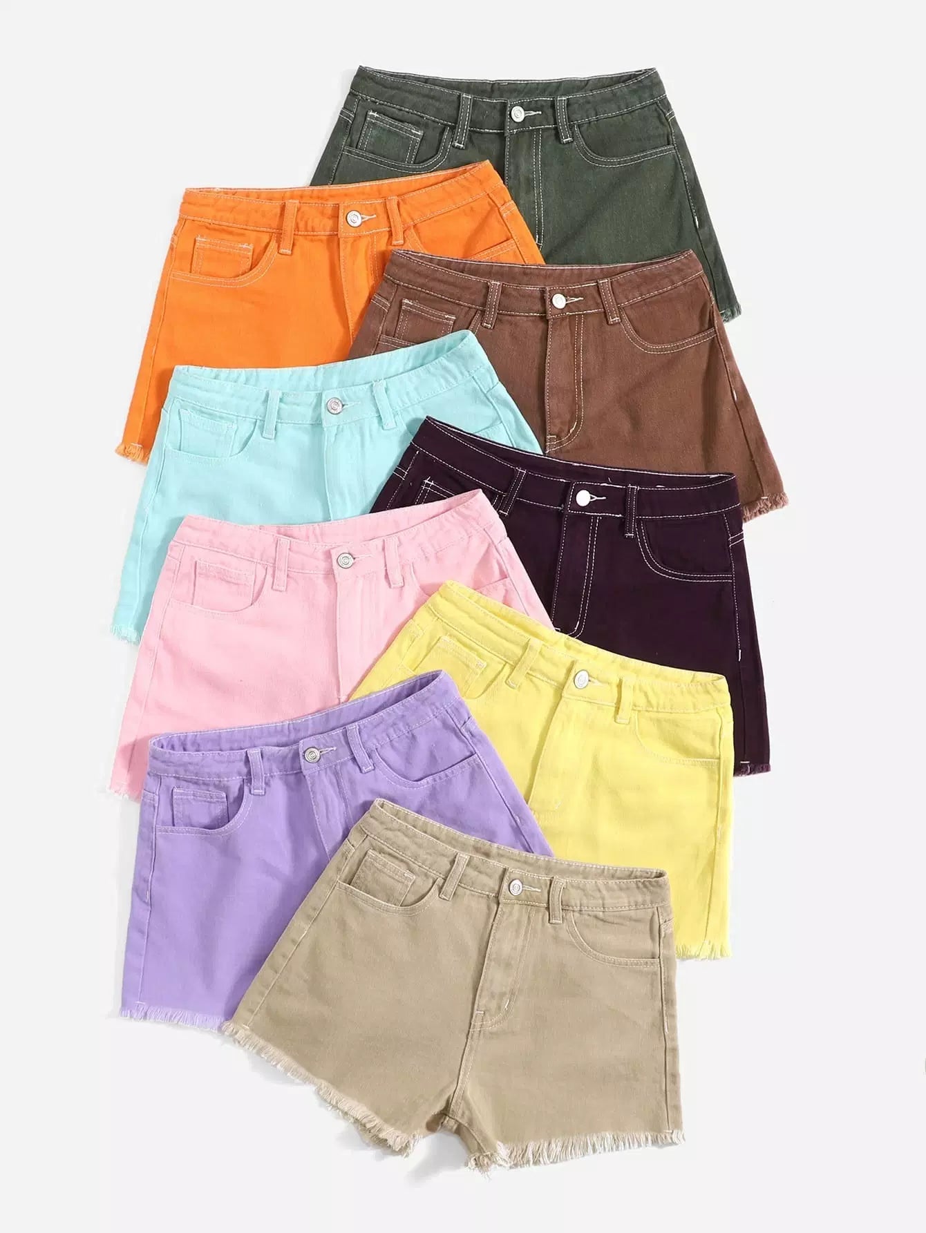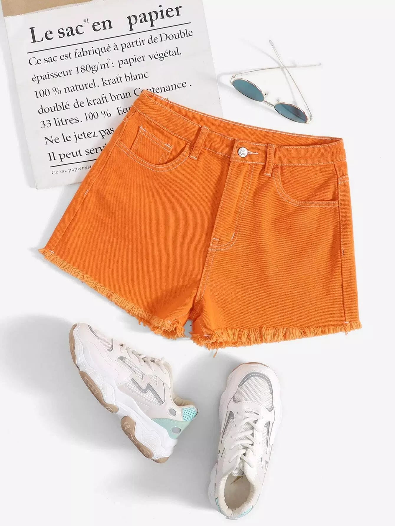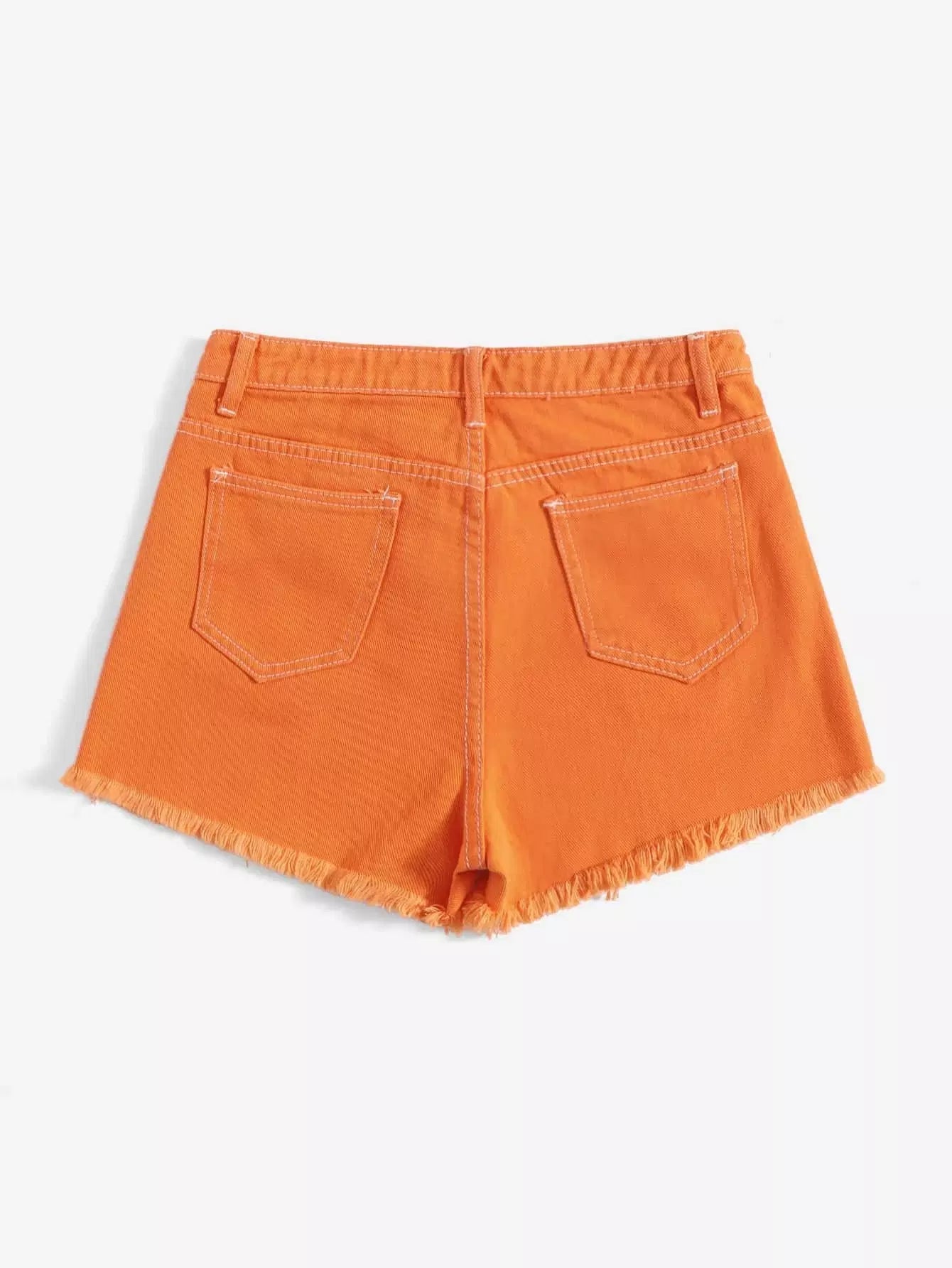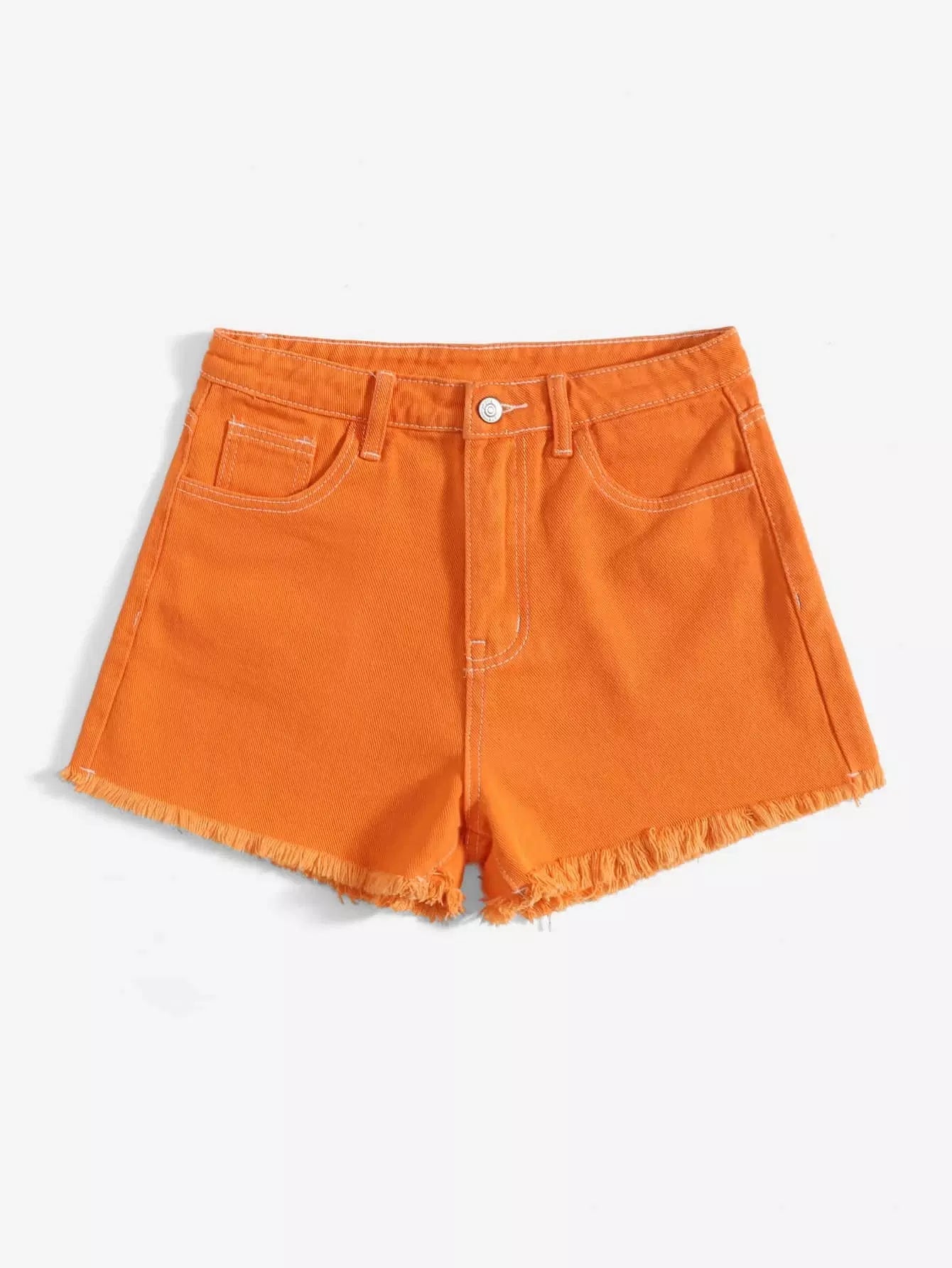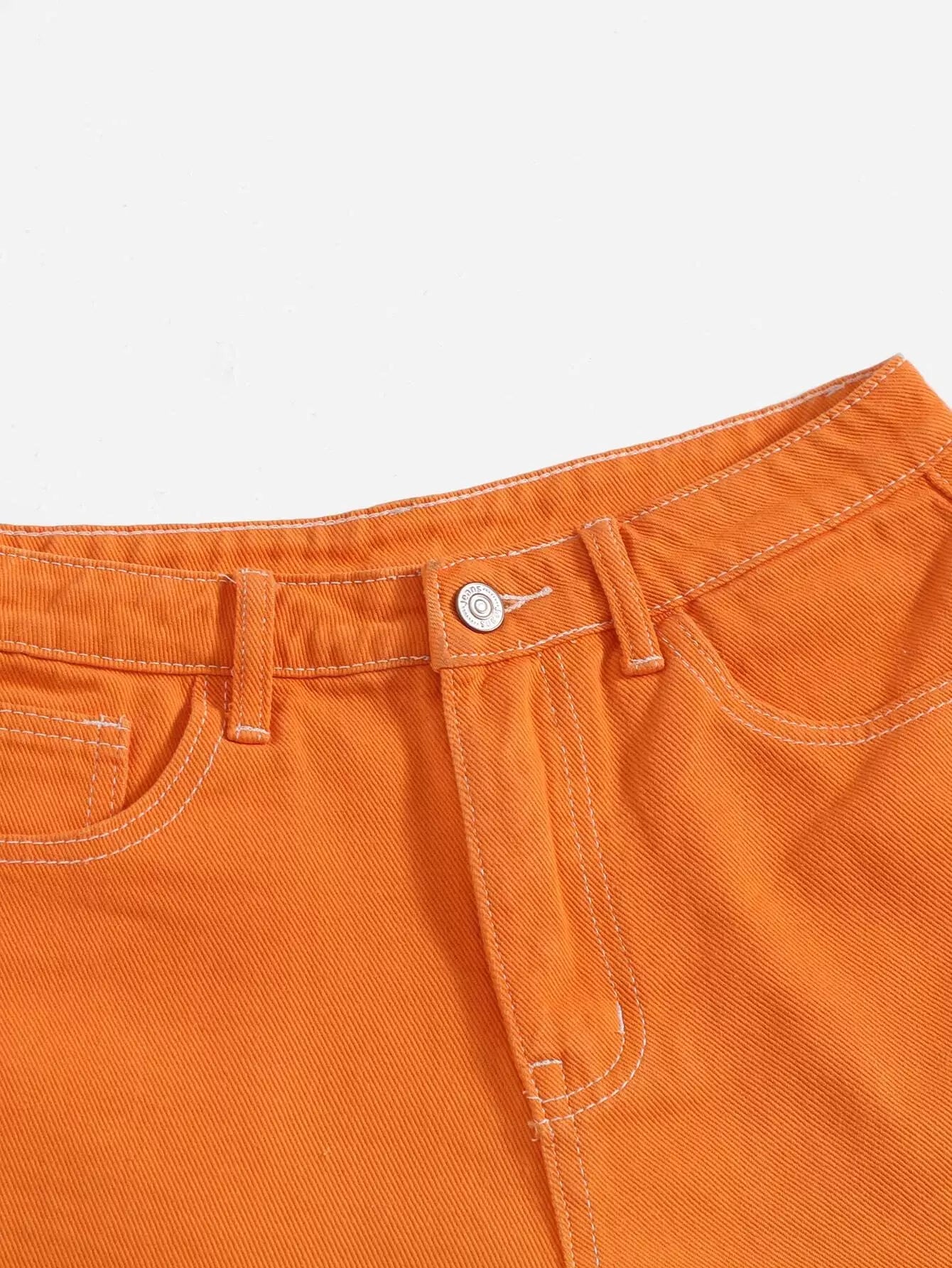 شورت دنيم بحافة عالية الخصر برتقالي نيون عالي الخصر خام