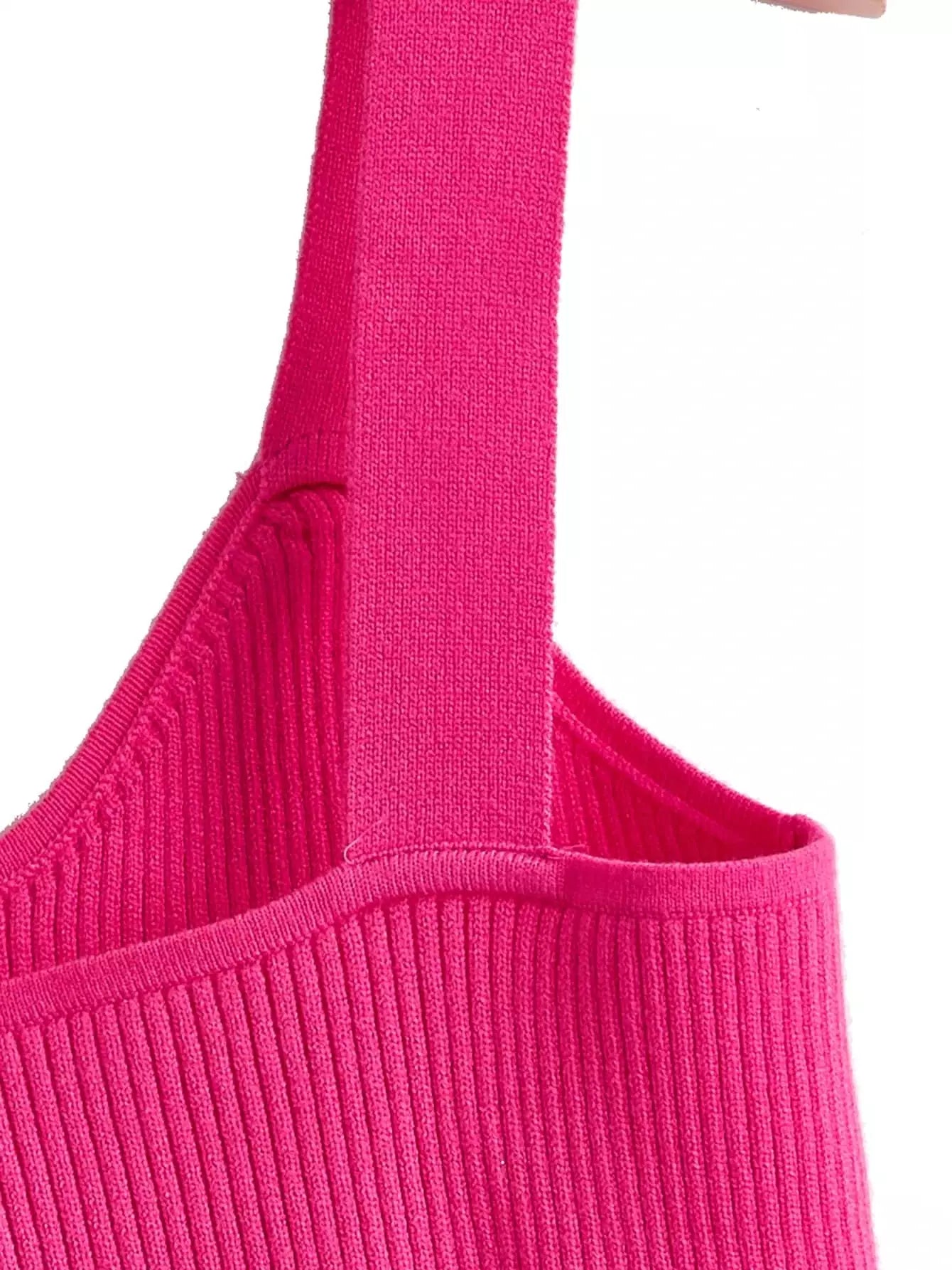 سترة سترة نيون وردي محبوكة على شكل ضلع محبوكة سادة