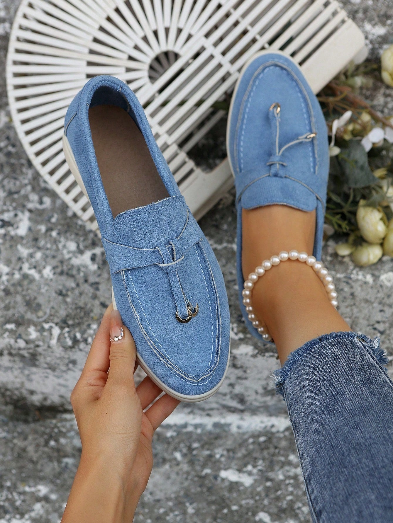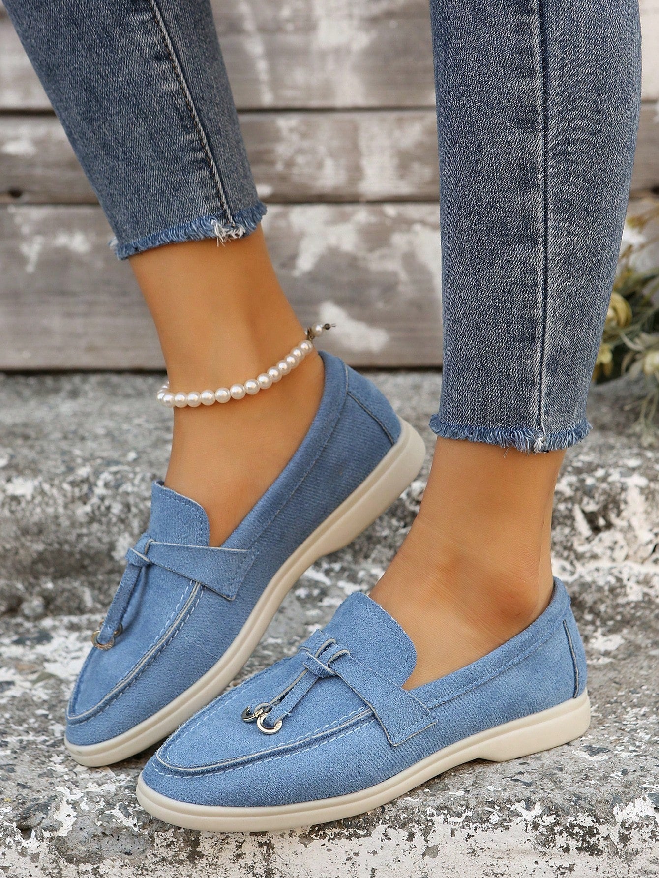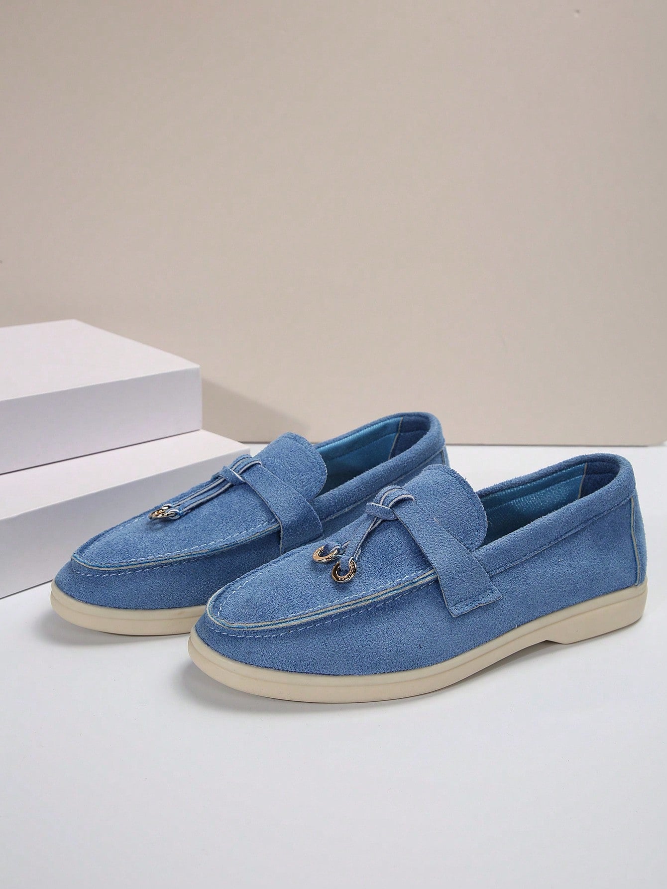 أحذية لوفر جديدة سهلة الارتداء - أحذية موكاسين ناعمة مع قلادة معدنية