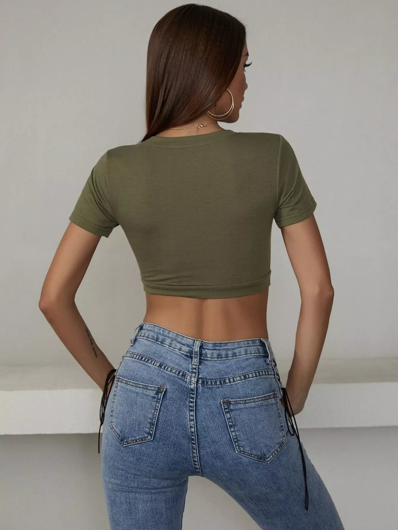 تي شيرت قصير قصير قصير سادة مربوط بحلقة على شكل حرف O