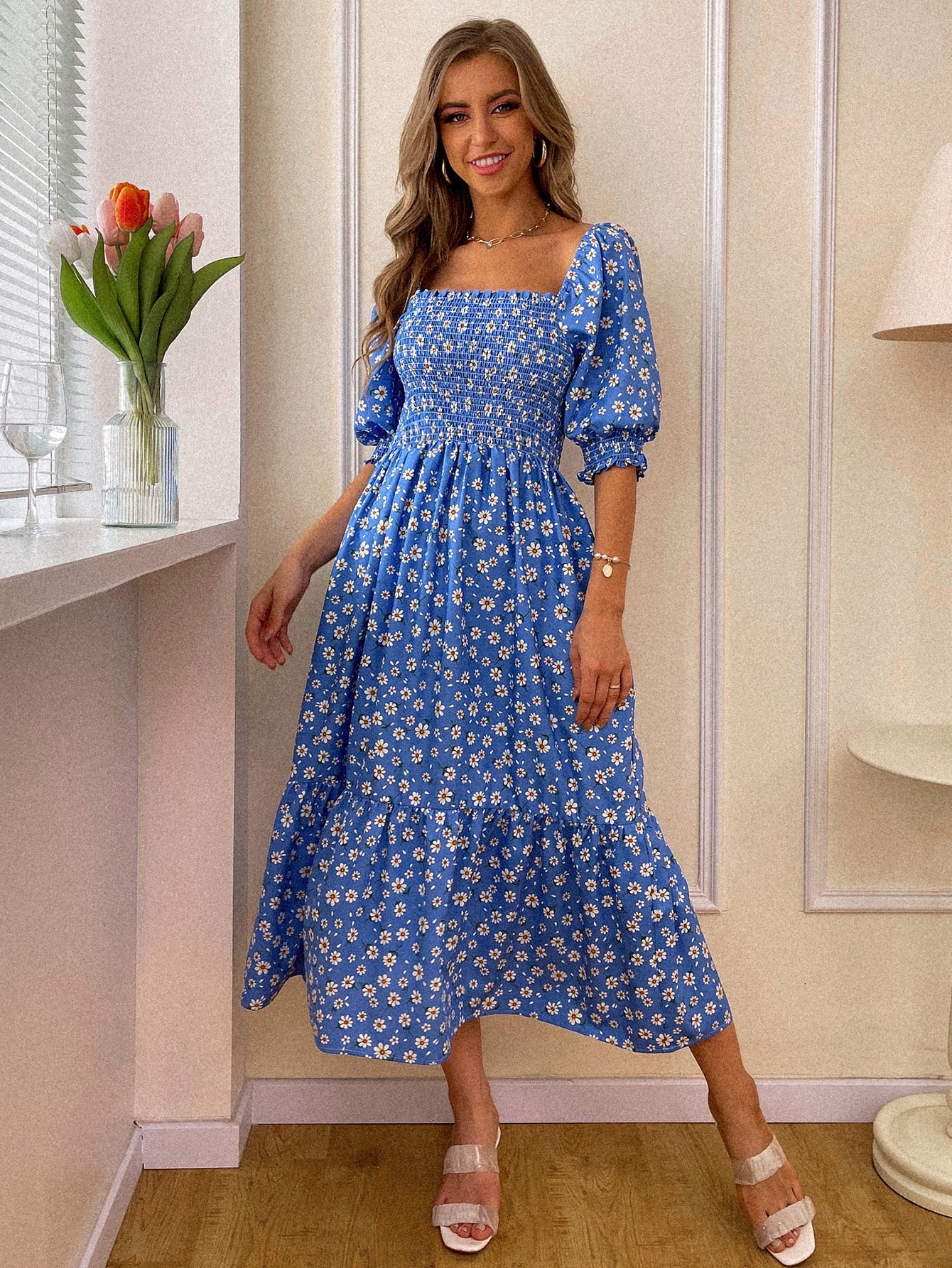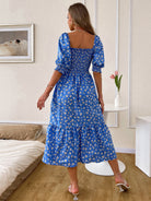 Allover Floral Print Ruffle Hem Square Neck Dress
