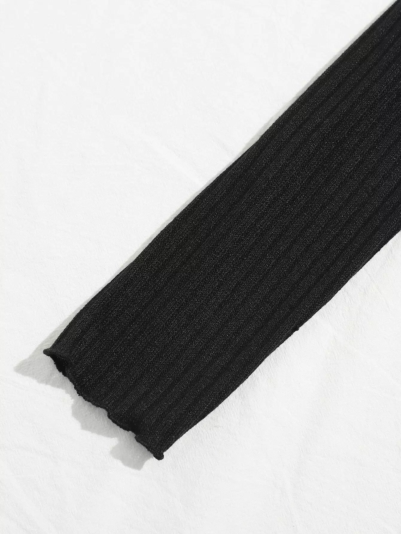 بلوزة قصيرة محبوكة على شكل ضلع محبوكة من دون أكتاف بحواف من الخس