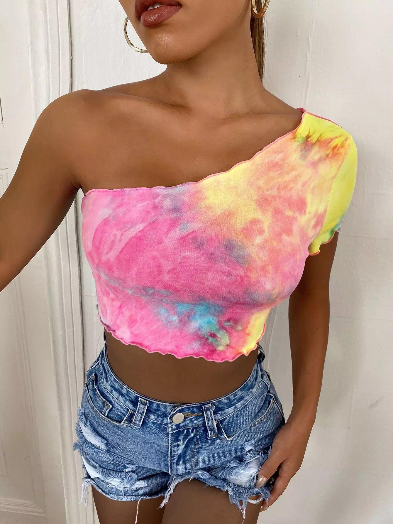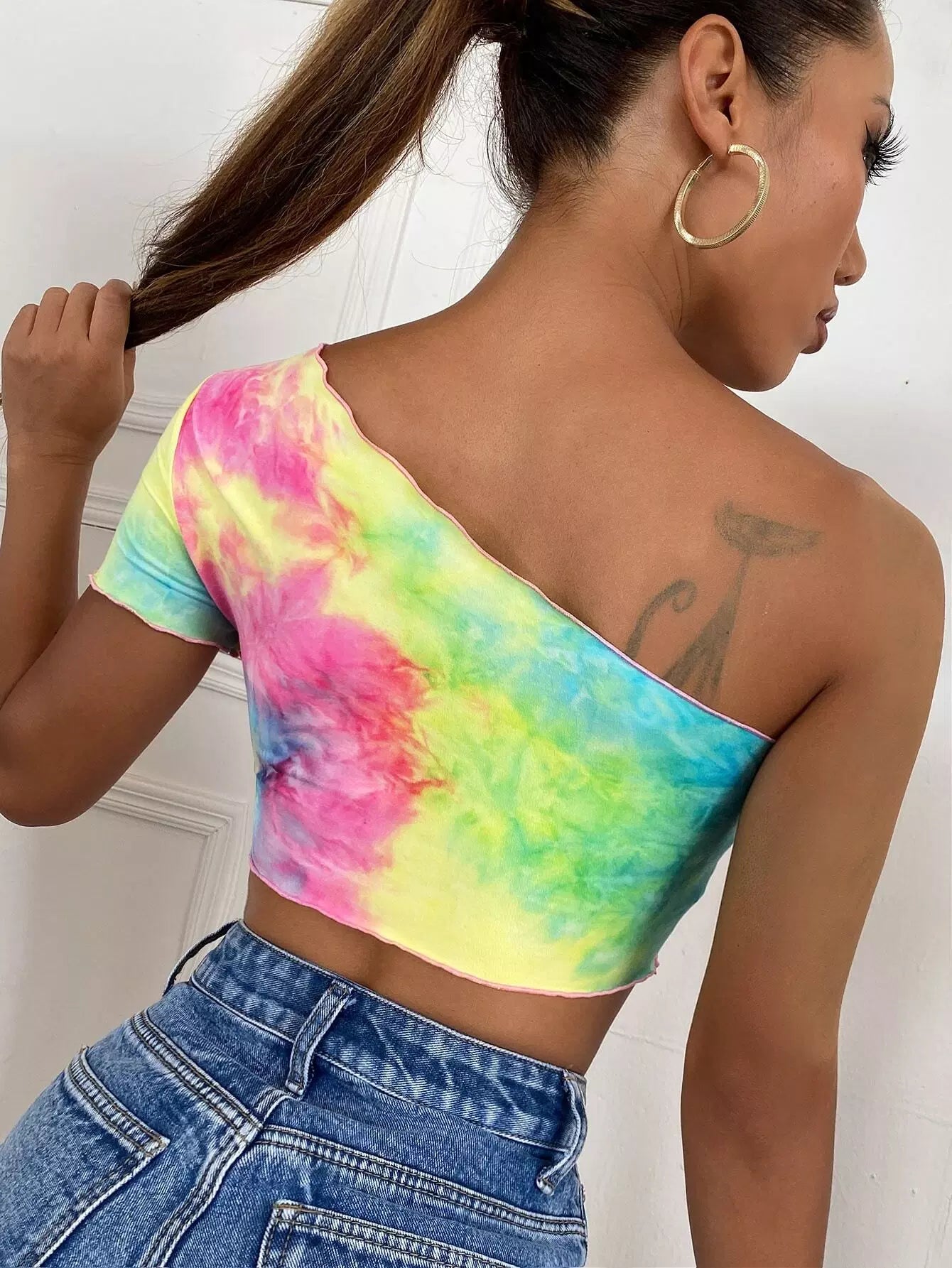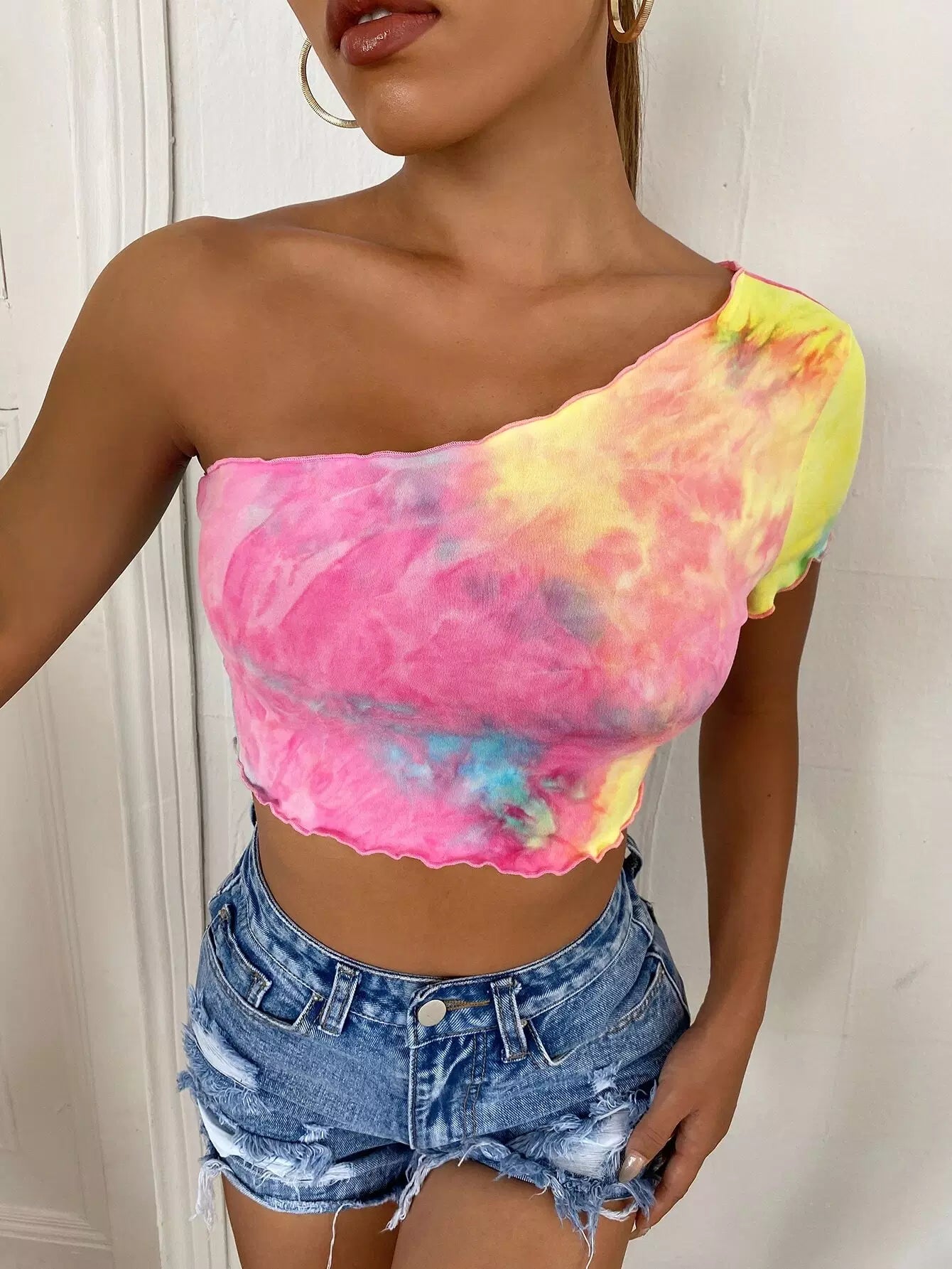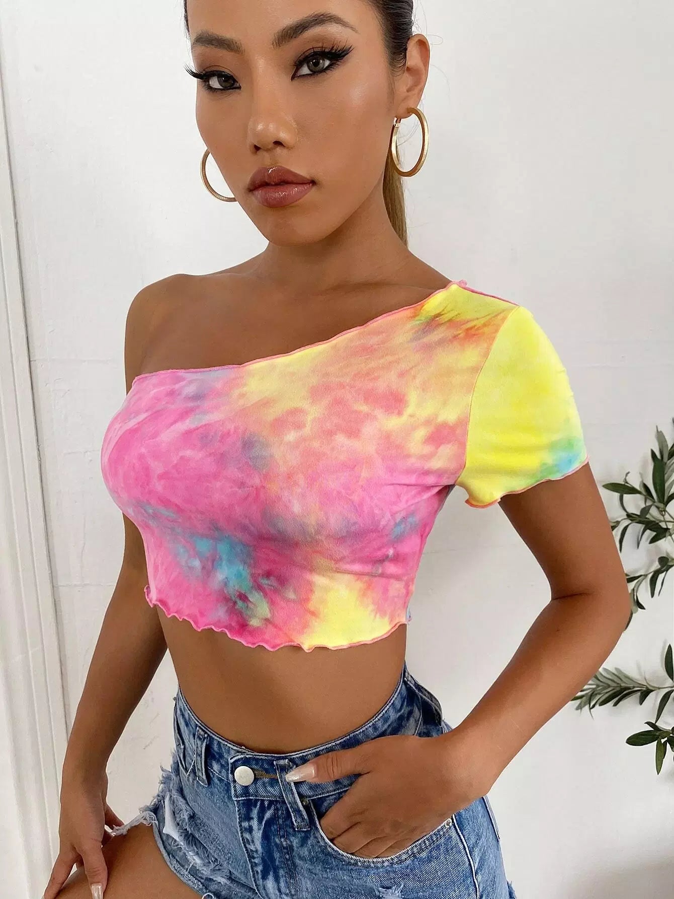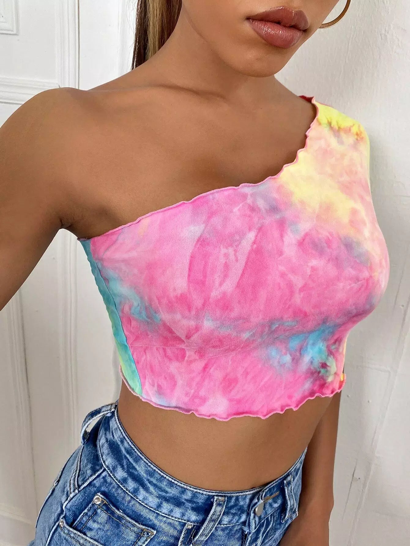 بلوزة بتصميم ربطة عنق وحواف من الخس على كتف واحد