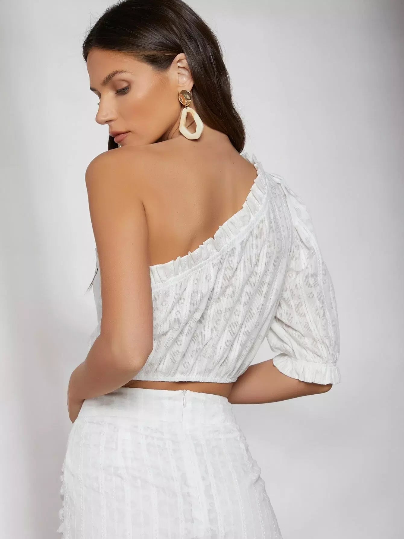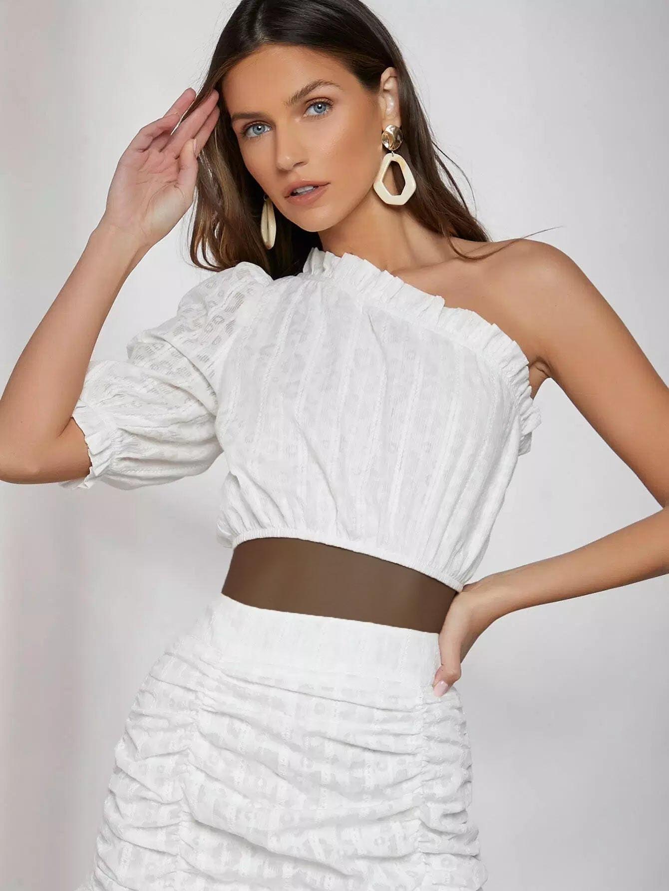 توب بحواف كشكش على كتف واحد