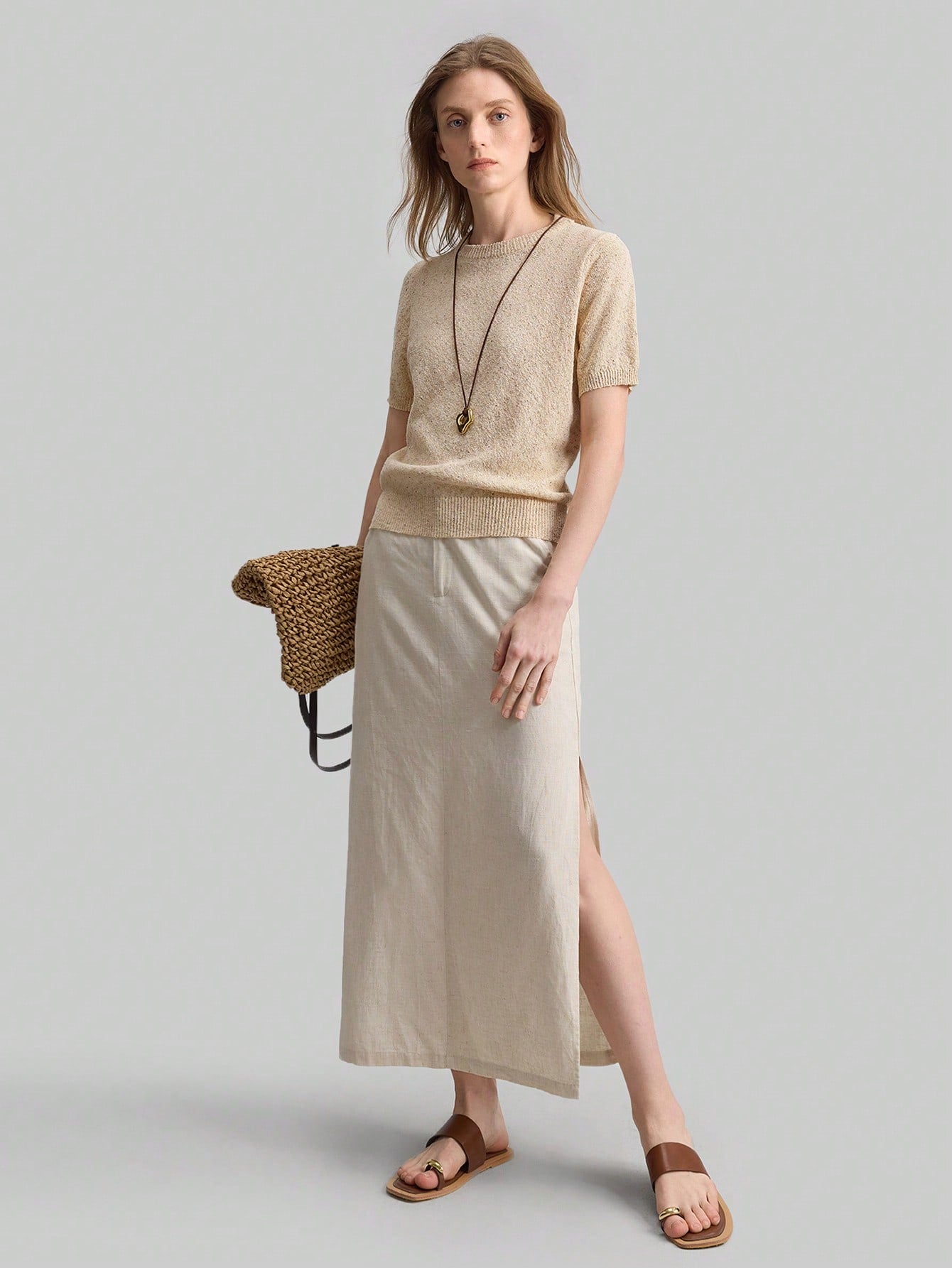 Ontre Simple Round Neck Short Sleeve Knit Pullover Blouse, Casual Urban Style Slub Yarn Crew Neck Short