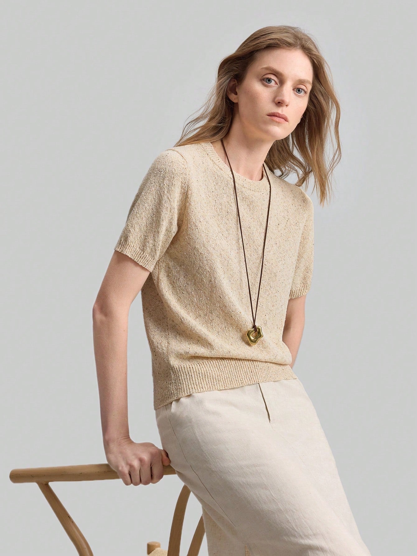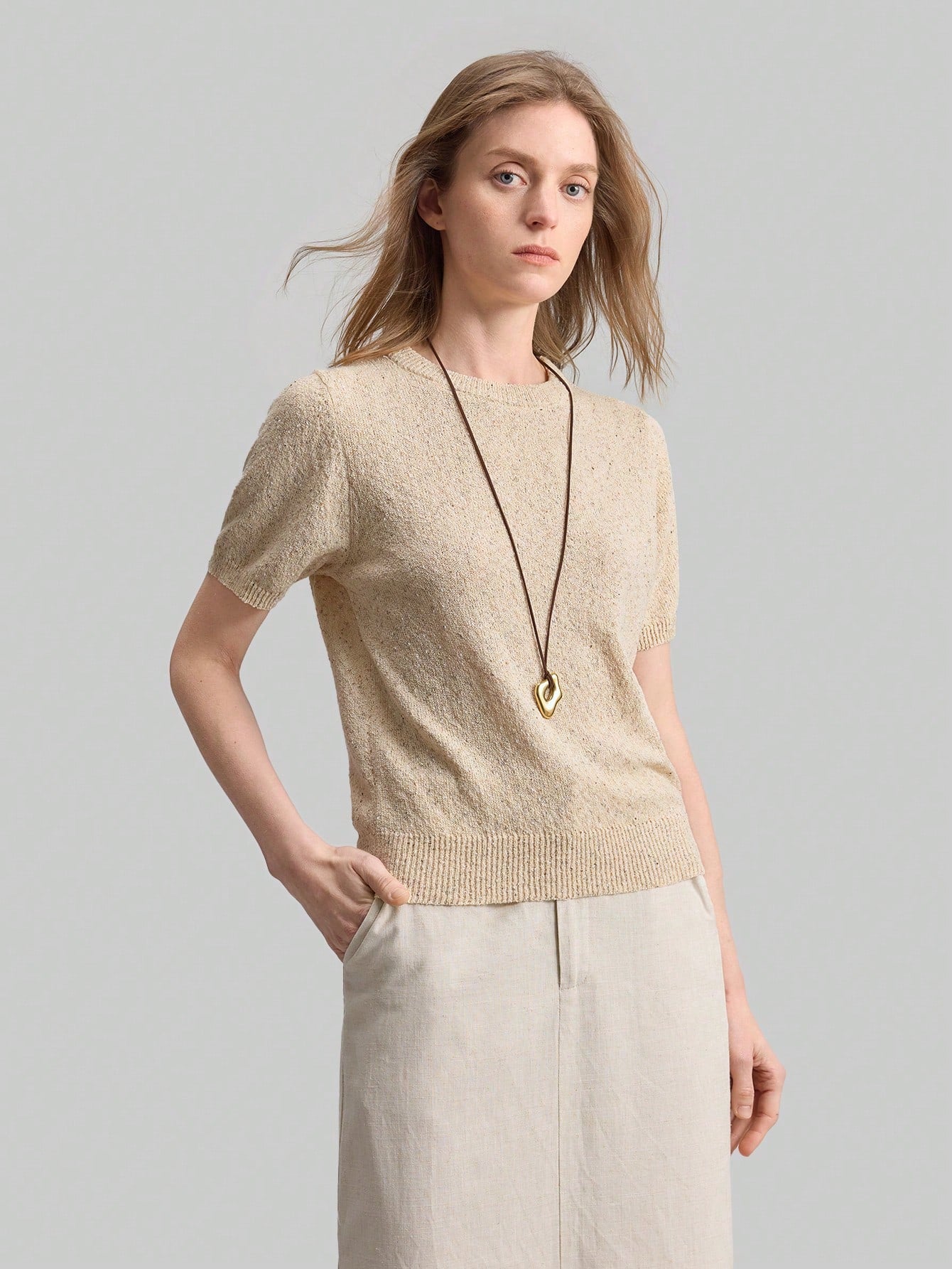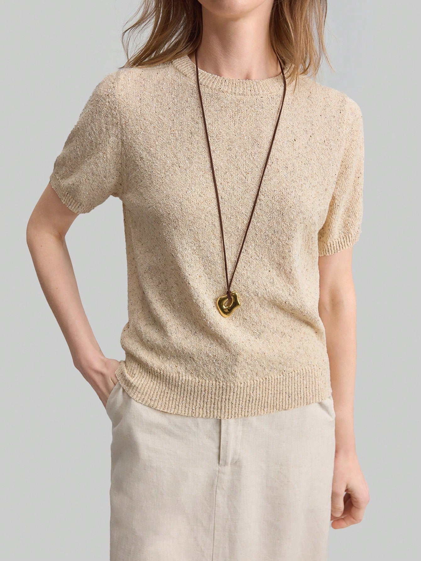 بلوزة Ontre بسيطة برقبة دائرية وأكمام قصيرة محبوكة، نمط حضري غير رسمي، شورت برقبة دائرية من غزل سلوب