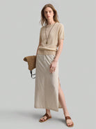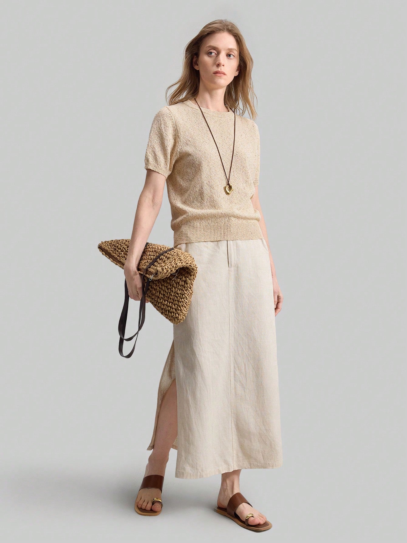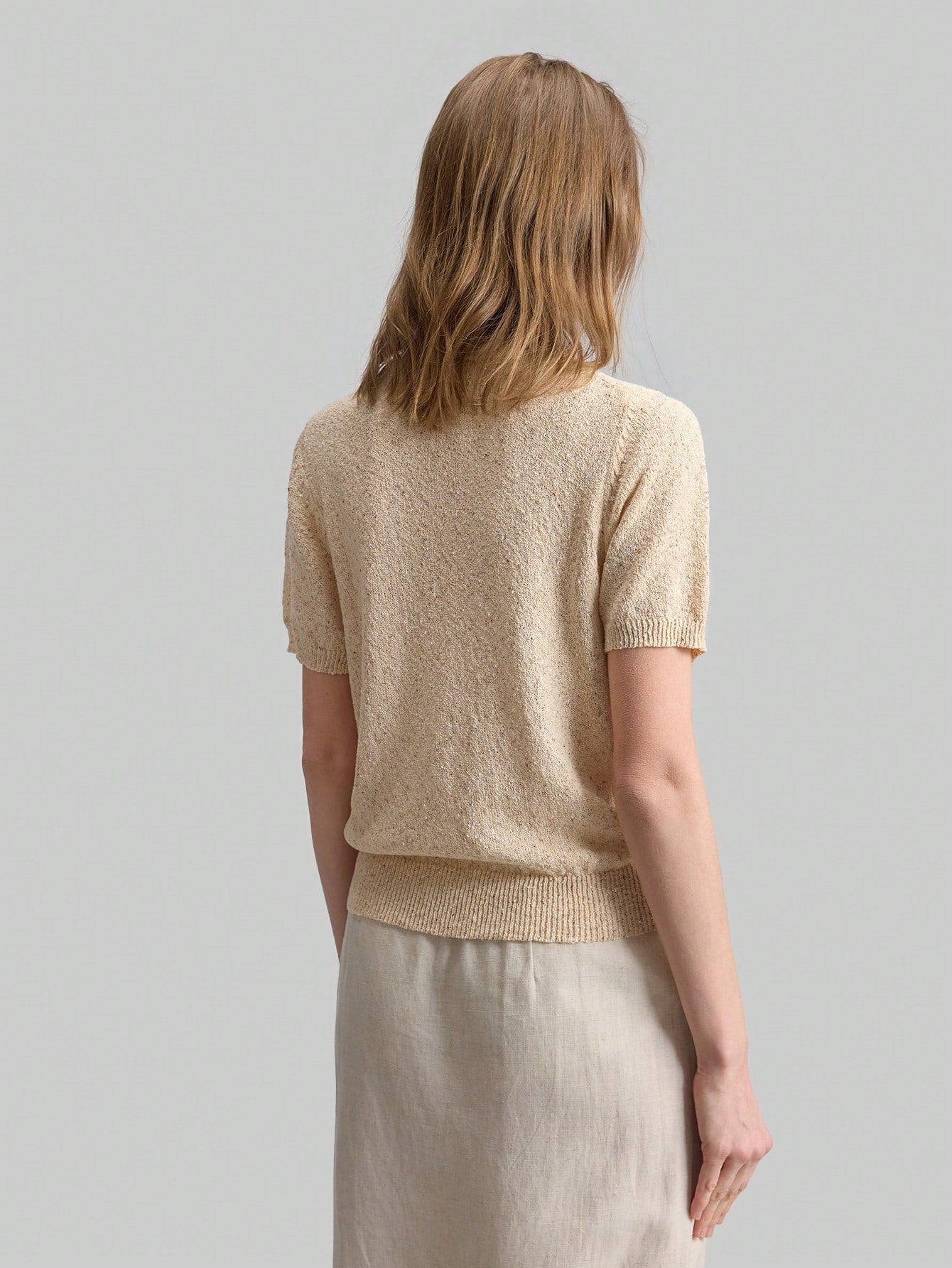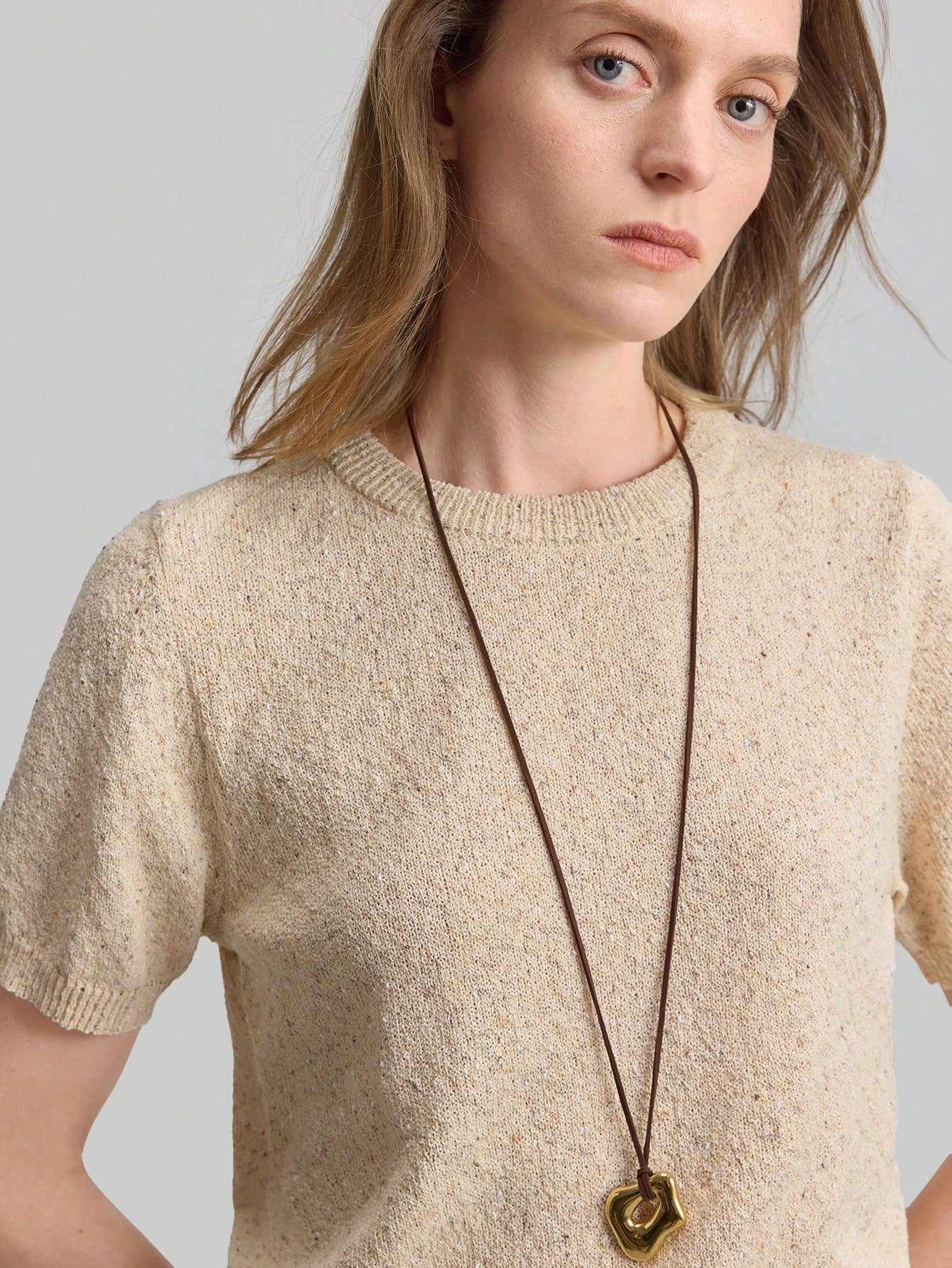بلوزة Ontre بسيطة برقبة دائرية وأكمام قصيرة محبوكة، نمط حضري غير رسمي، شورت برقبة دائرية من غزل سلوب
