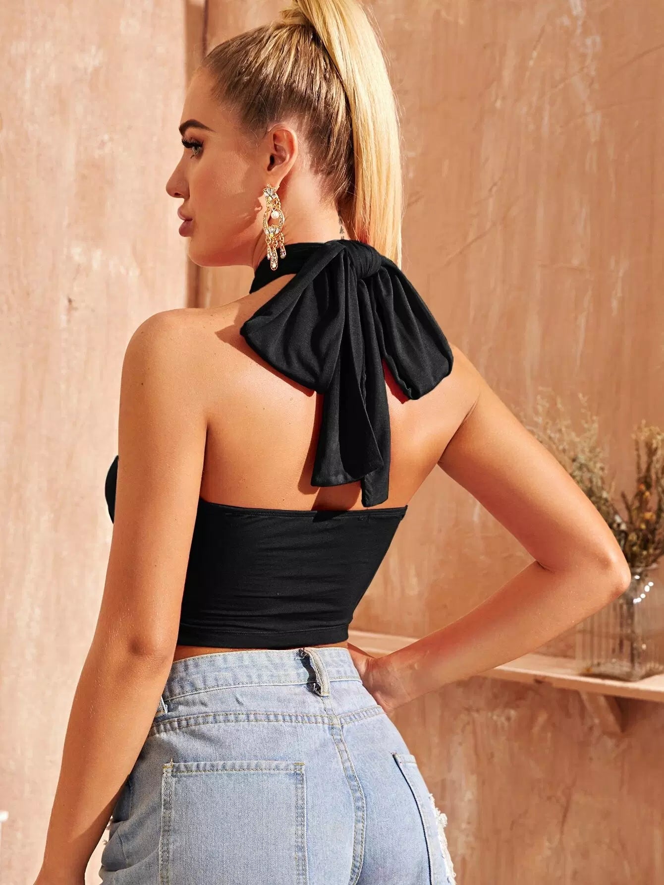 النساء - بلوزة بحمالة عنق متقاطعة مفتوحة من الأمام