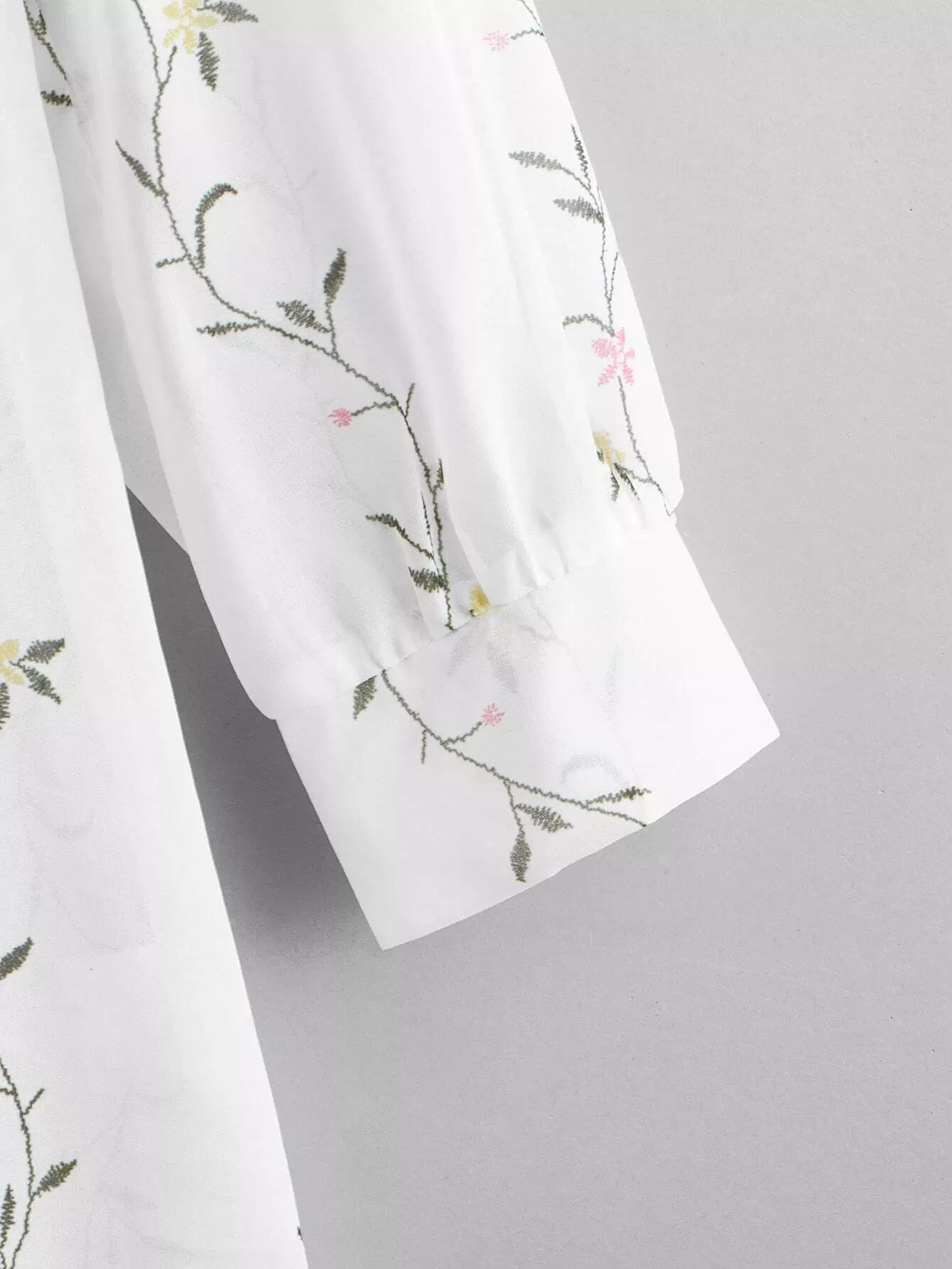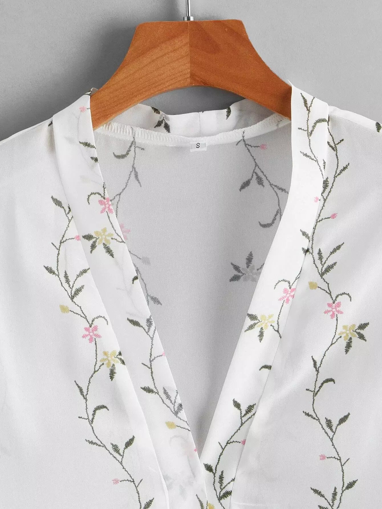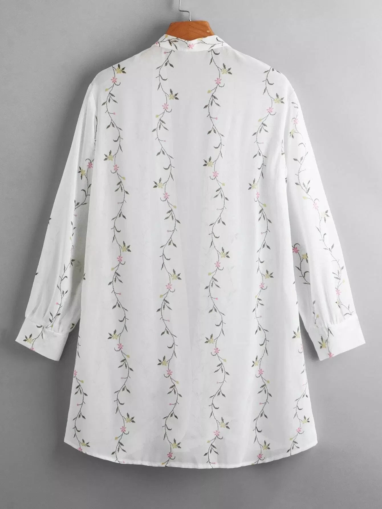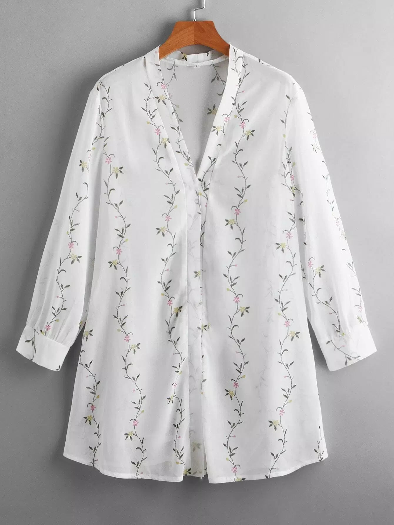 سترة خارجية بطبعة نباتات مفتوحة من الأمام