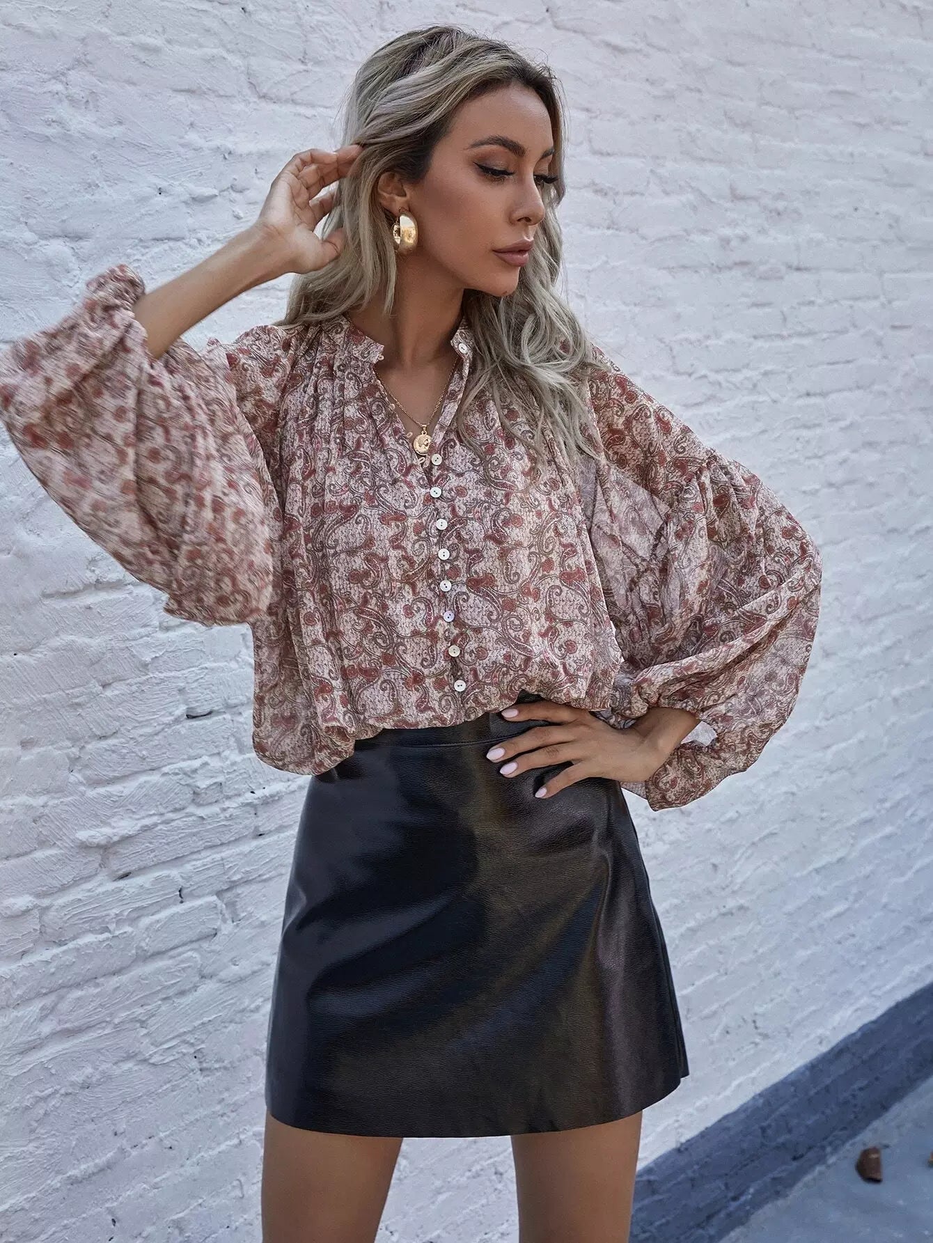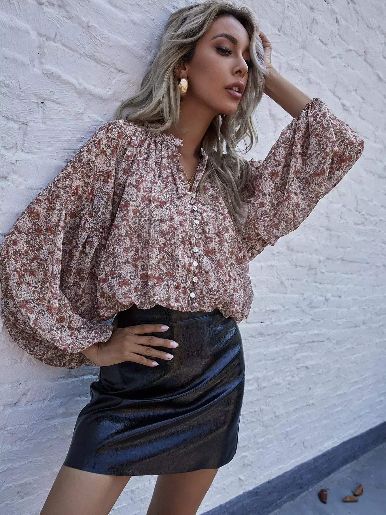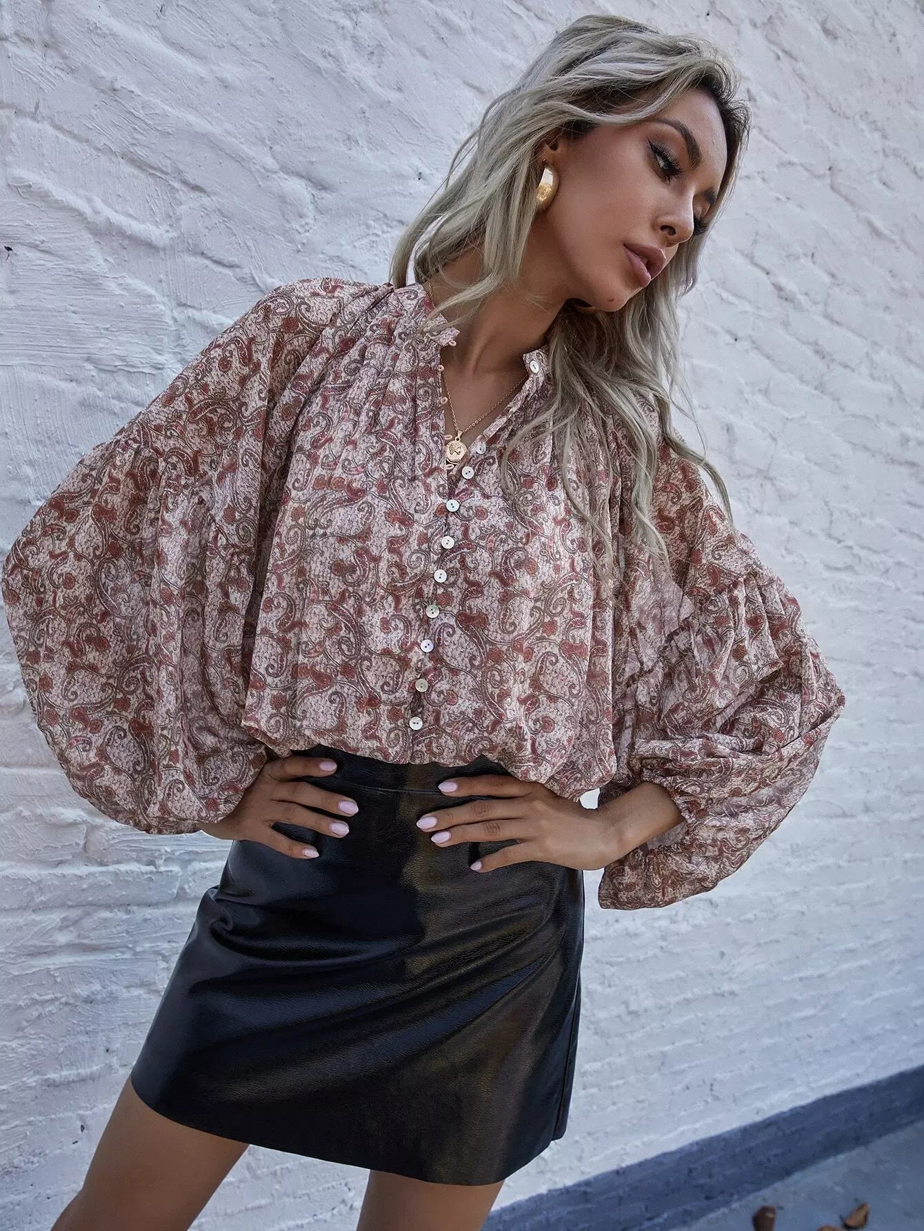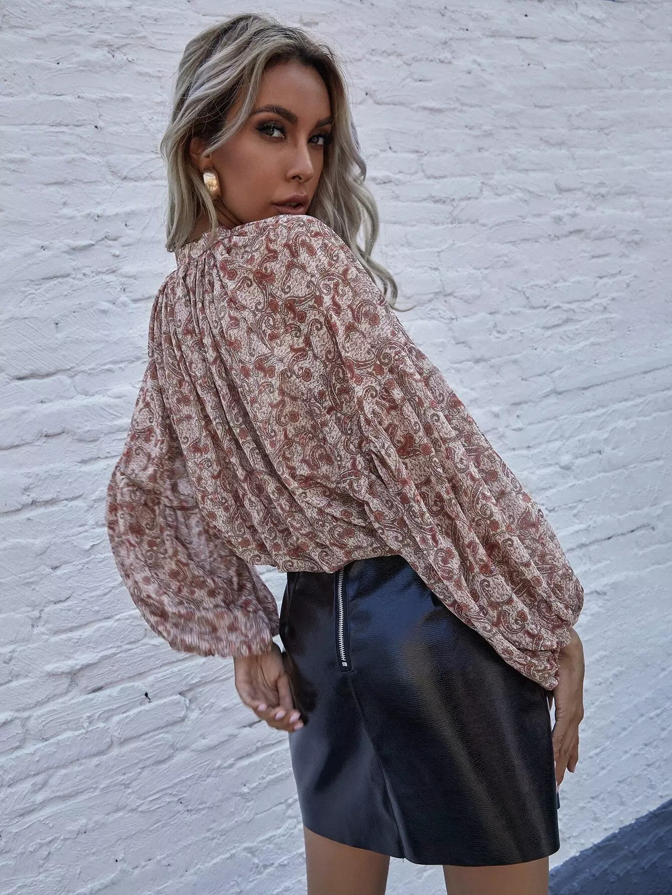 بلوزة منسدلة الكتف بطبعة بيزلي