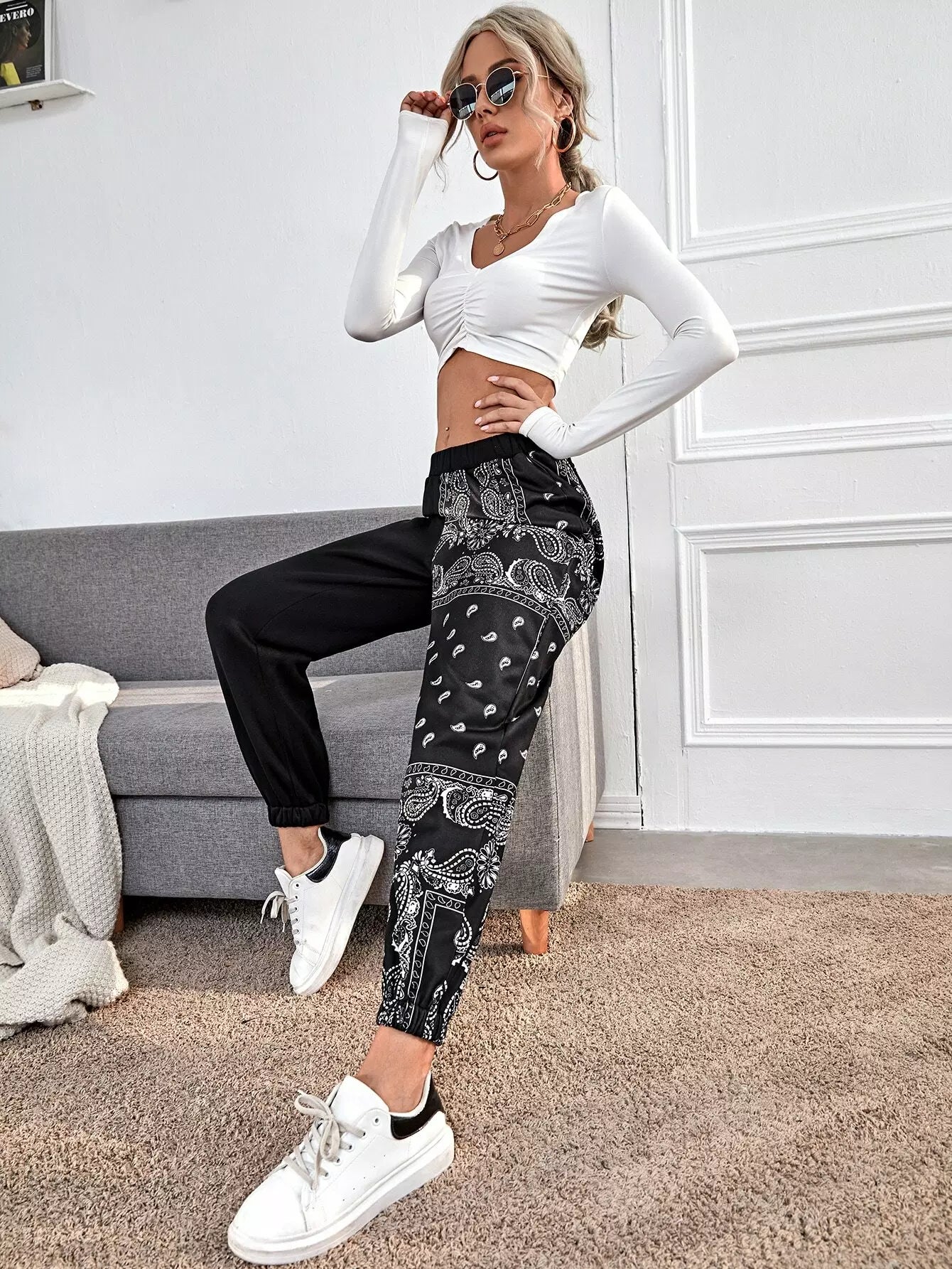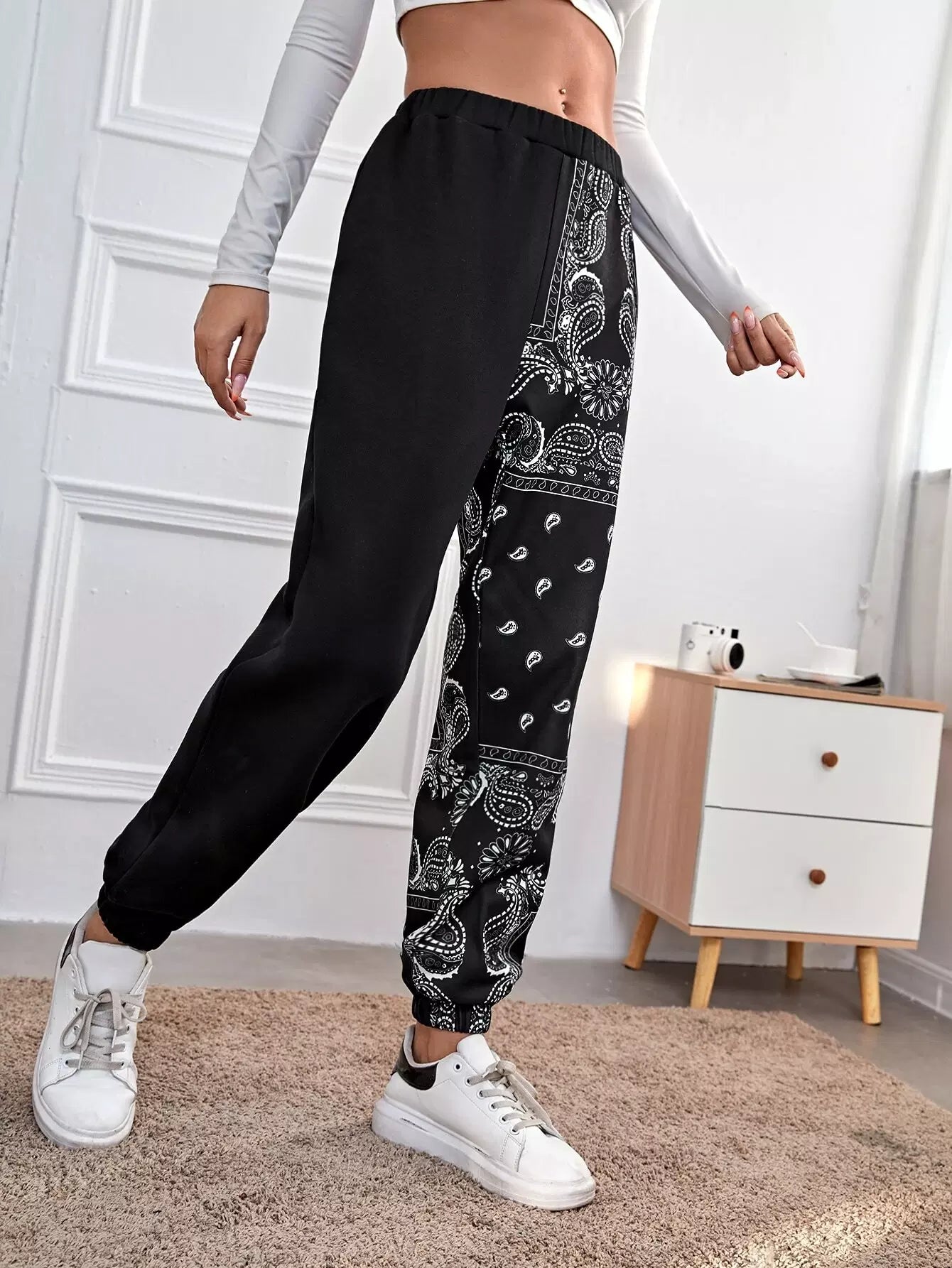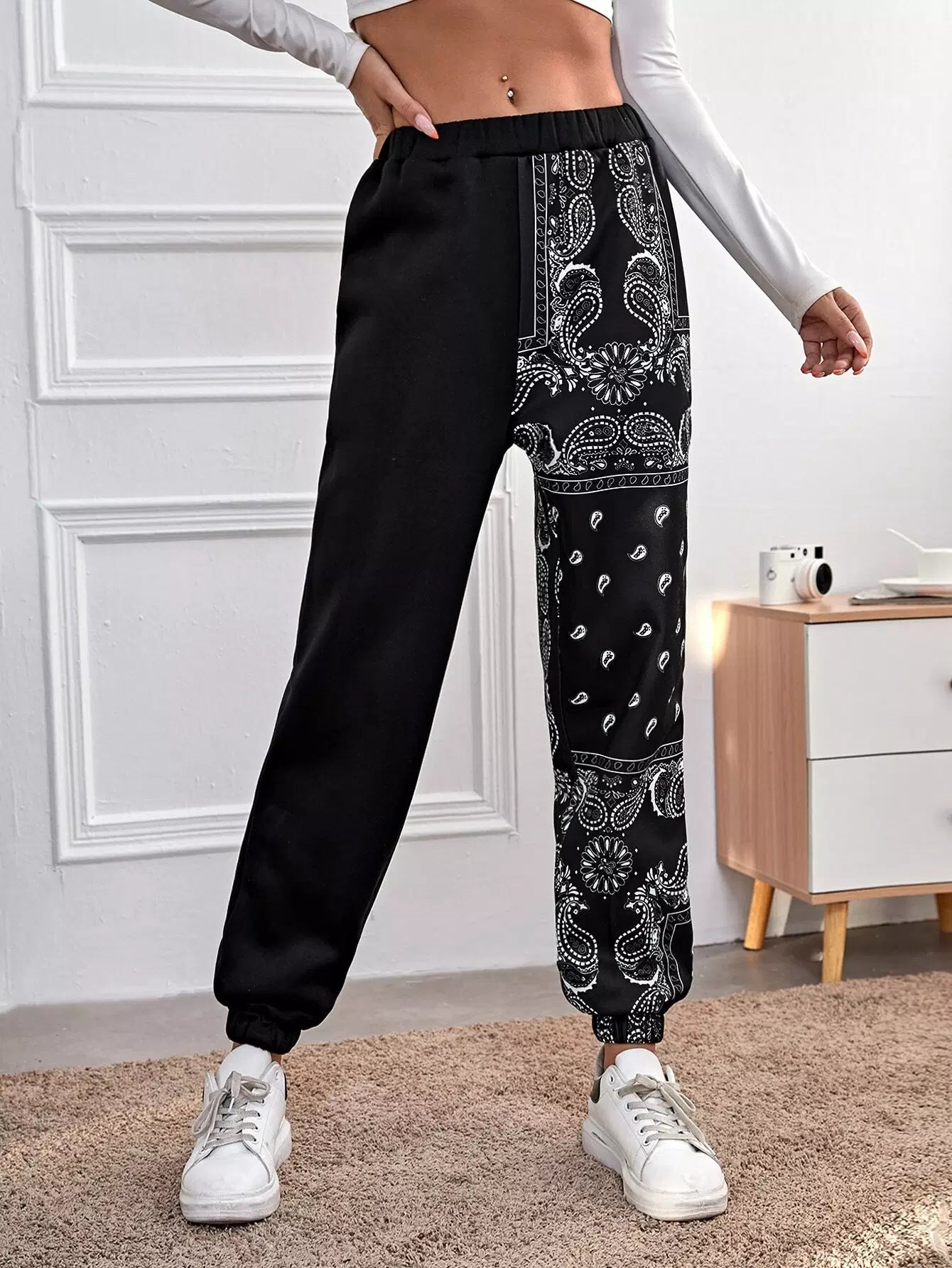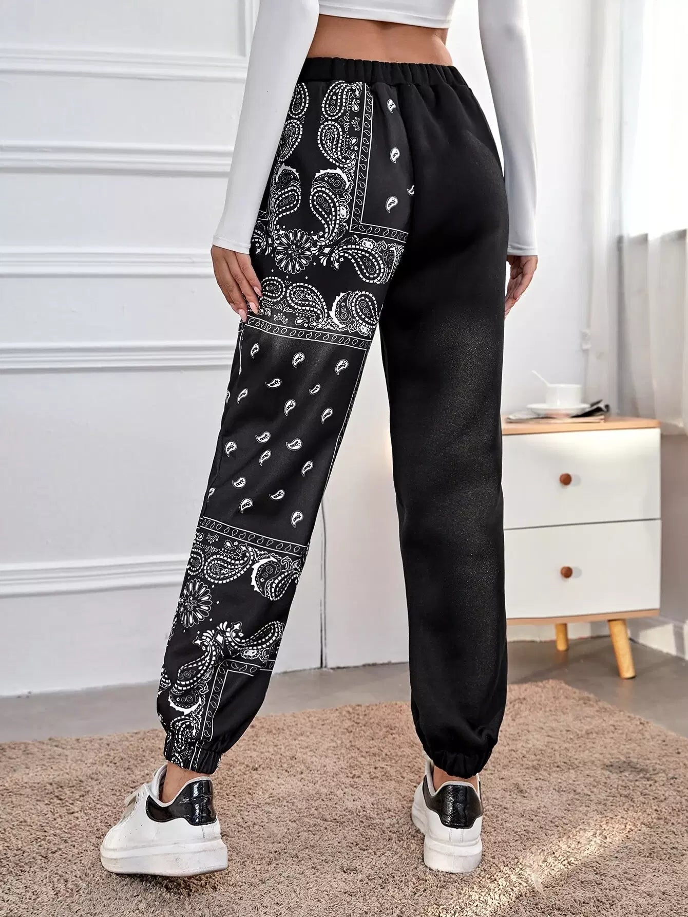 بنطال رياضي بطبعة بيزلي وخصر مطاطي