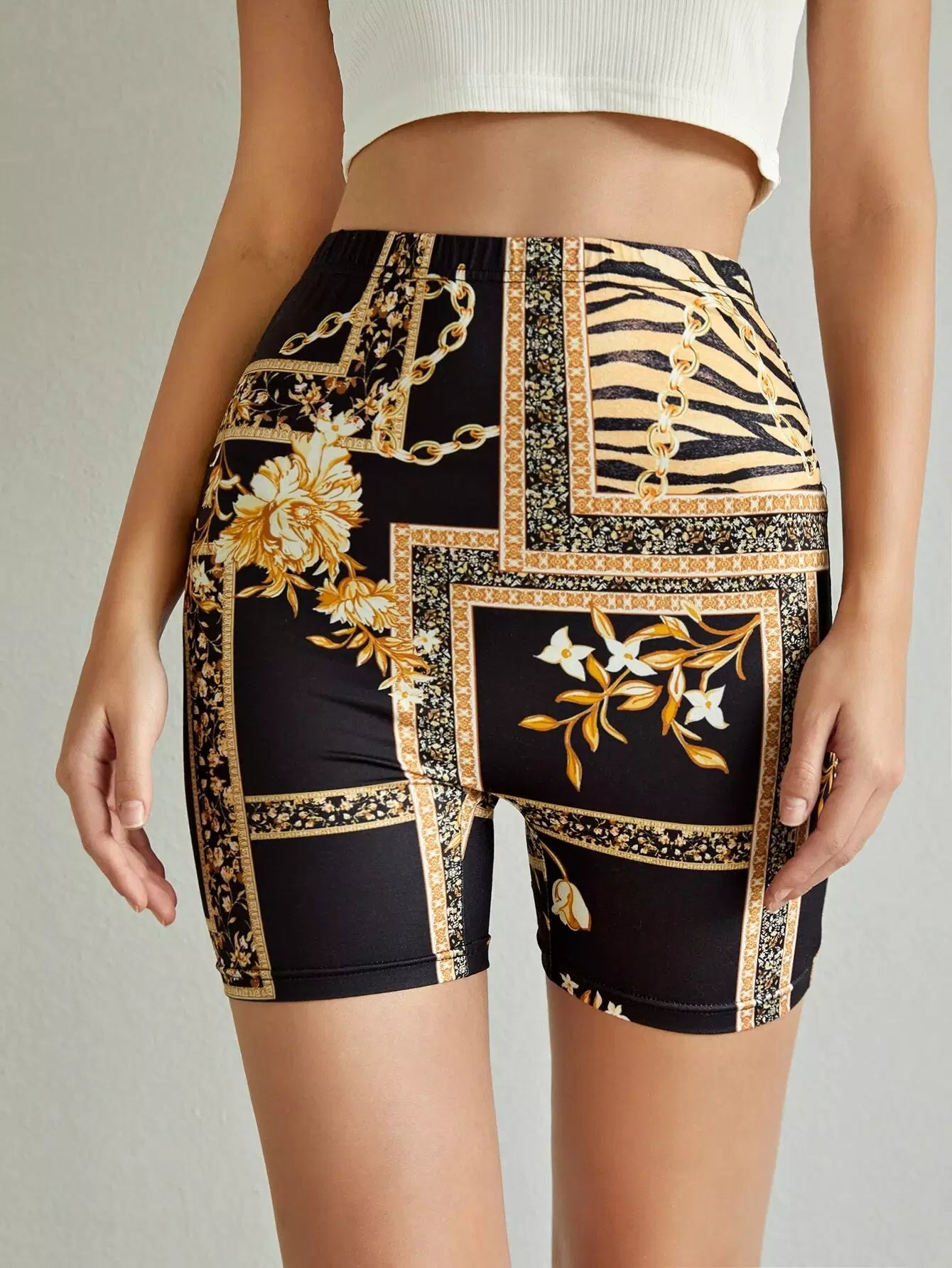 بنطلون بنقشة مرقعة ومطبوع عليها سلاسل لراكبي الدراجات النارية
