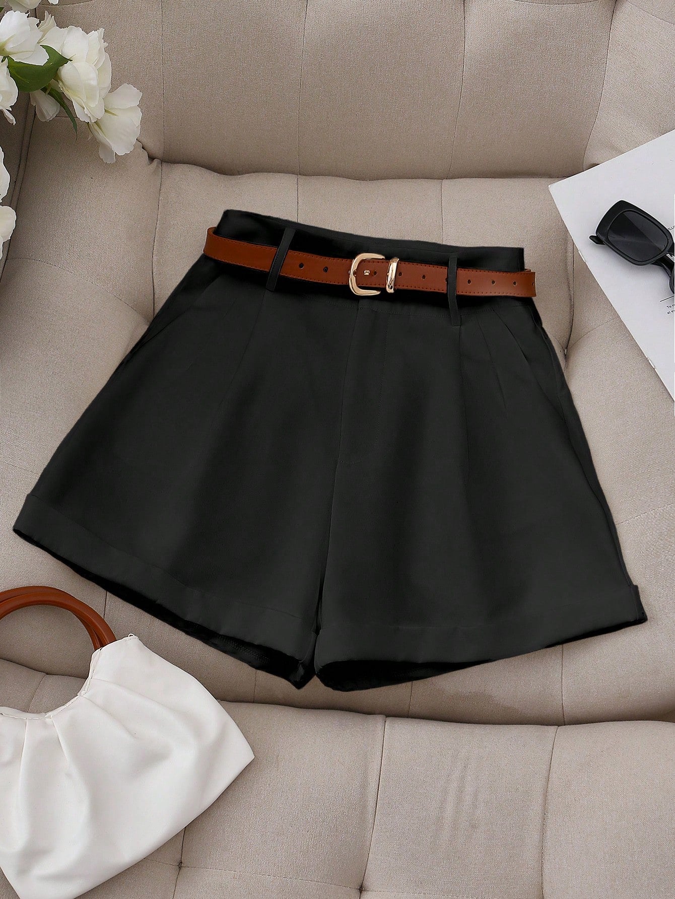 شورت نسائي قصير فضفاض واسع الساق بلون سادة مناسب للإطلالات الكاجوال