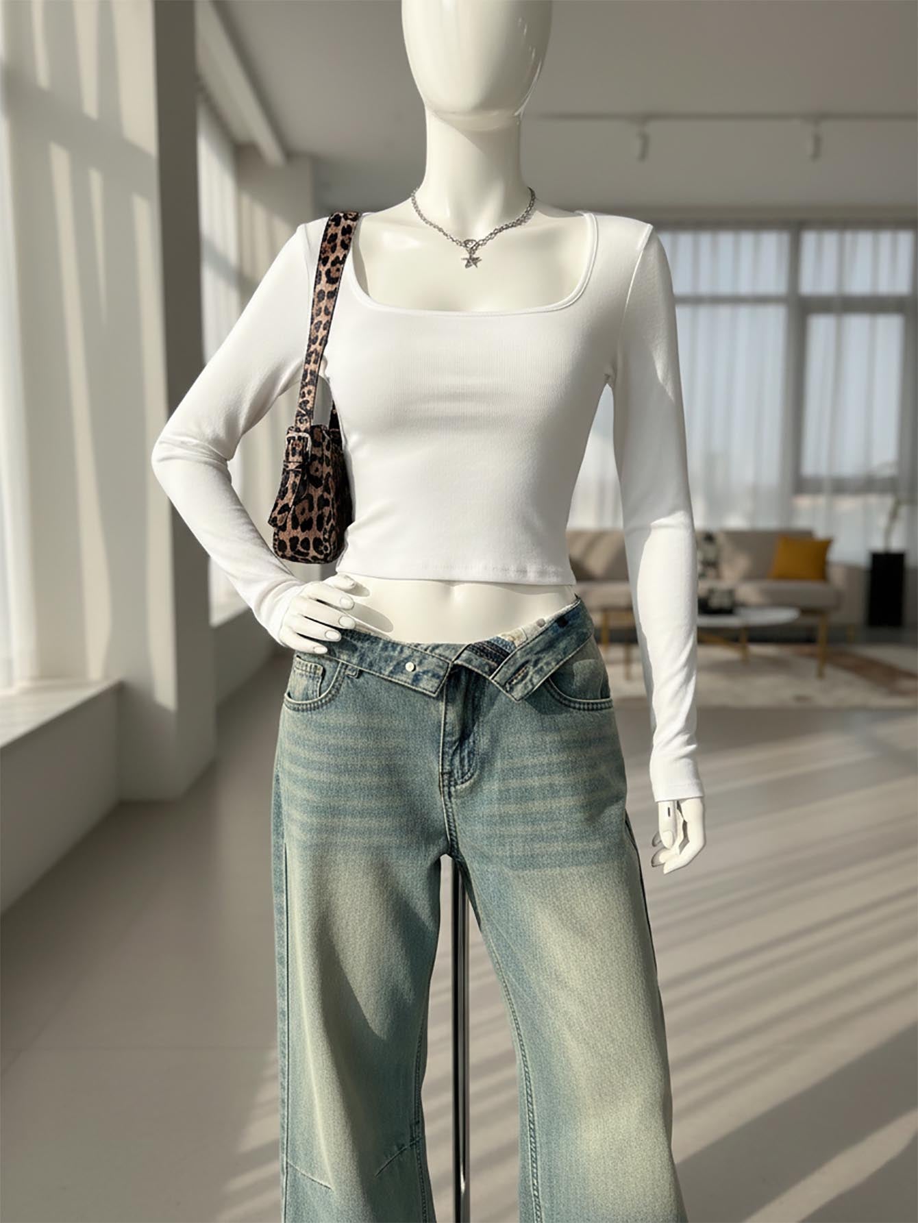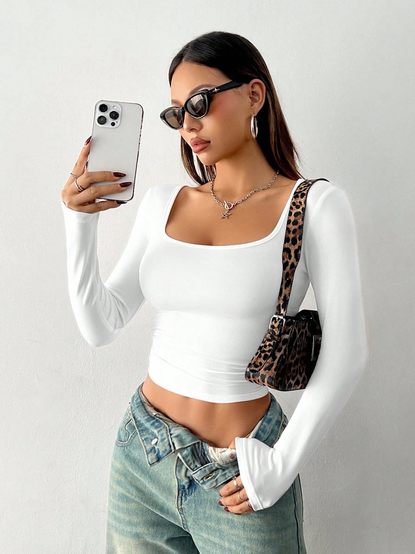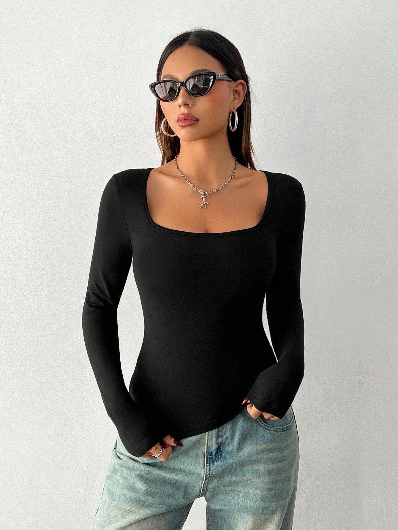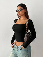 تيشيرت نسائي ضيق بأكمام طويلة، أسود وأبيض، عبوة من قطعتين، مناسب للمقاسات الصغيرة