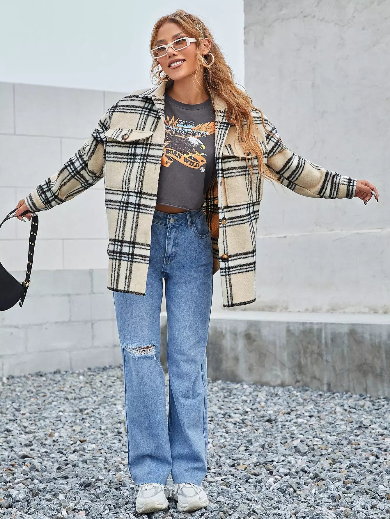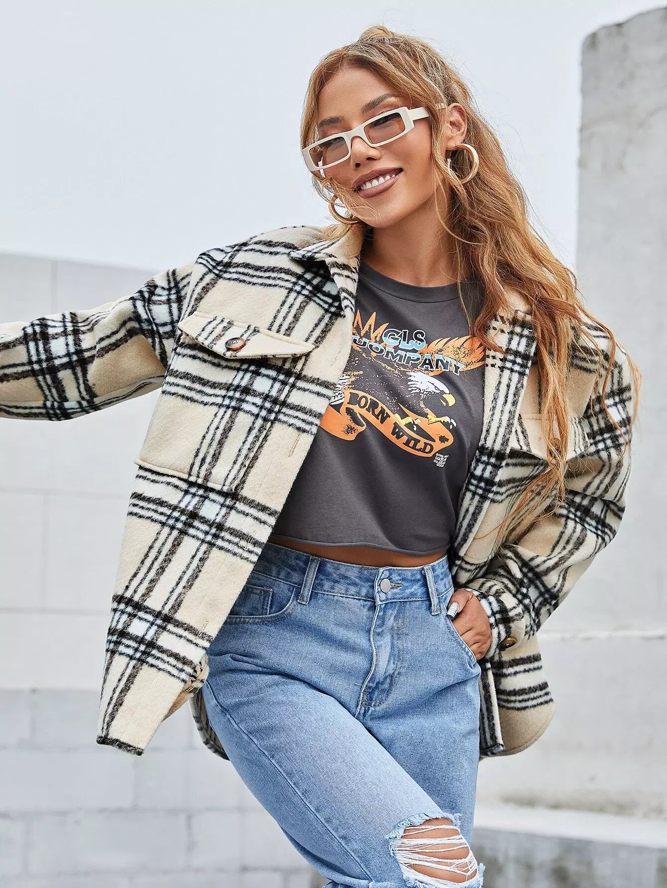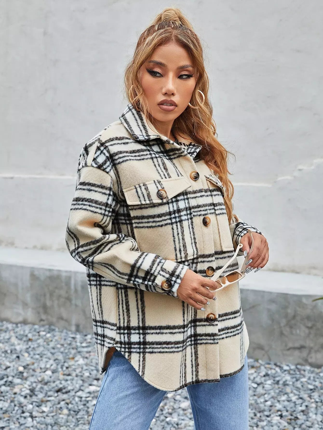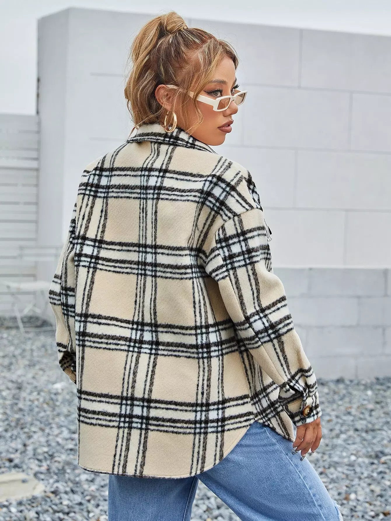 معطف منقوش منسدل الكتف بجيب منسدل منقوش