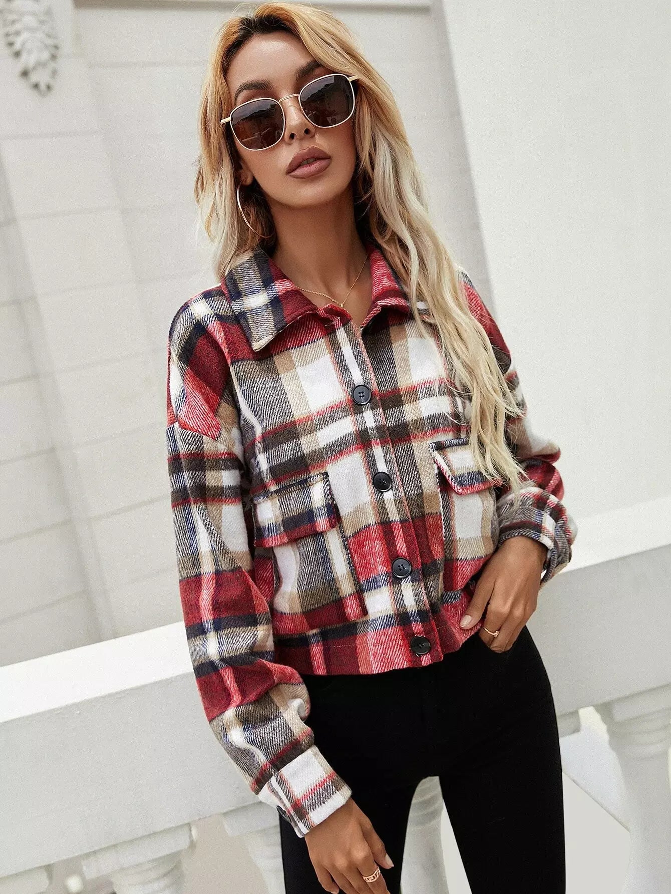 جاكيت منقوش منسدل الكتف بجيب منسدل منقوش