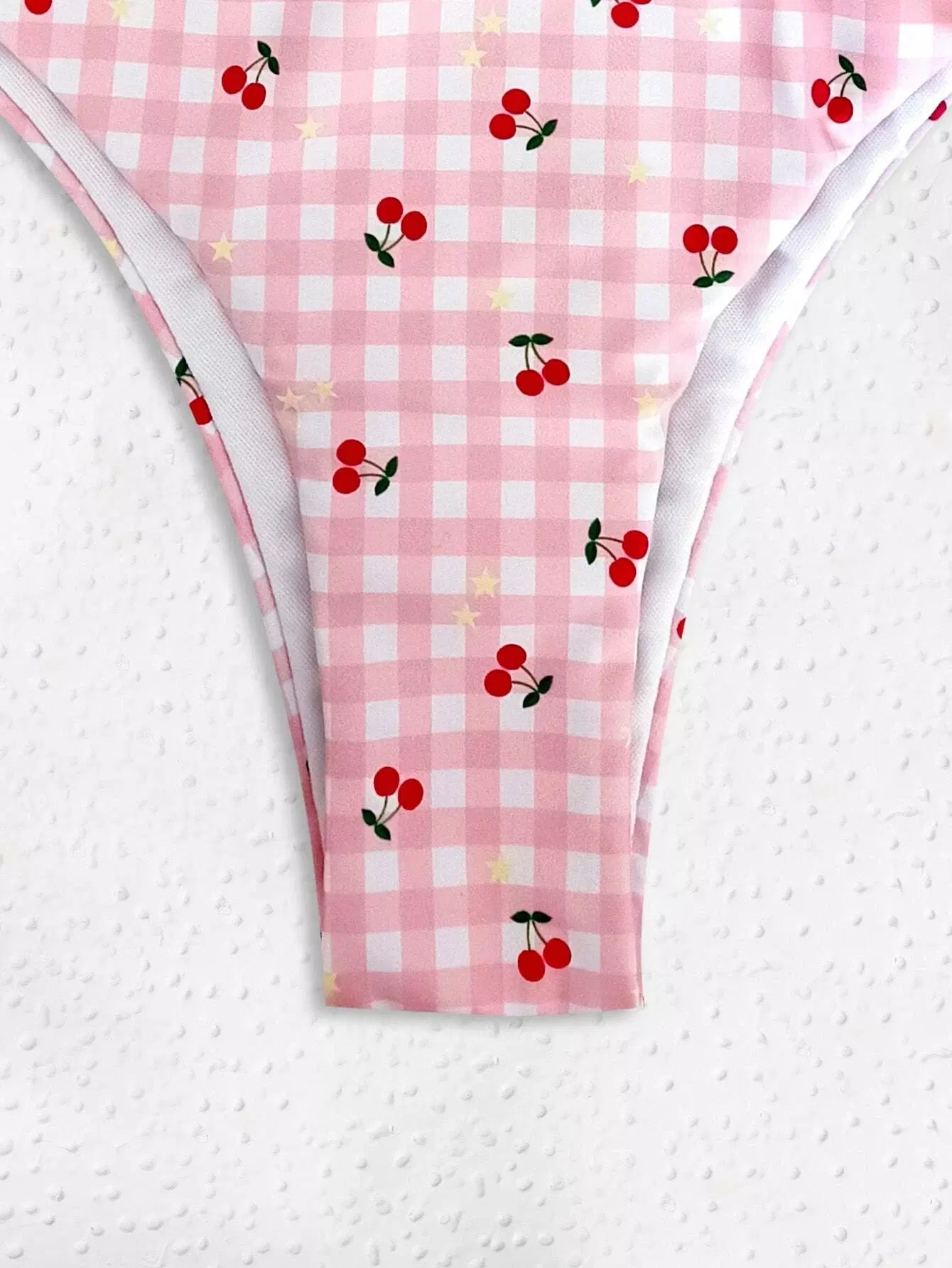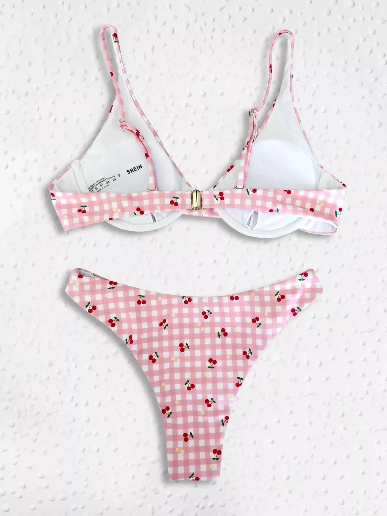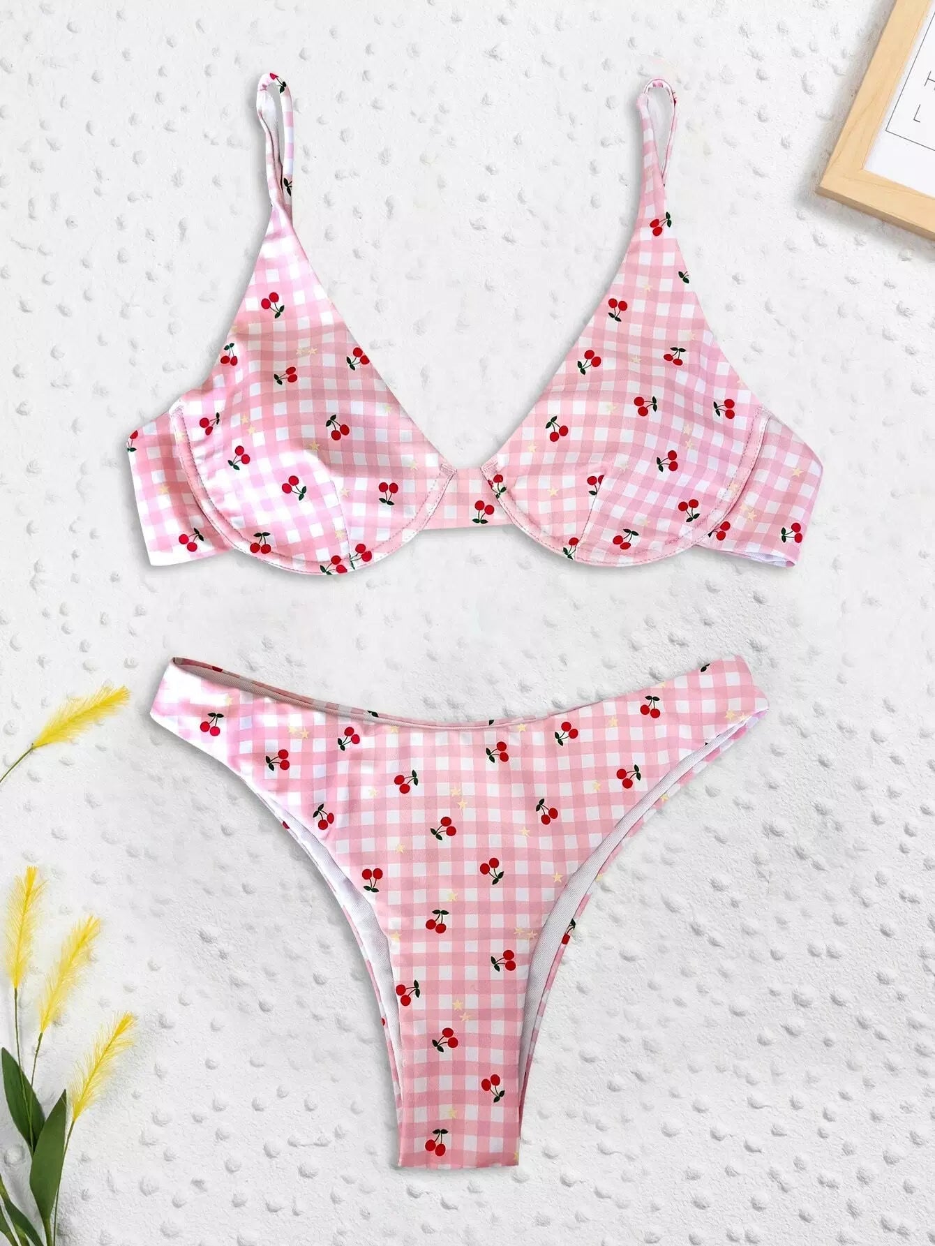 ملابس سباحة بيكيني منقوشة بطبعة كرز تحت السلك